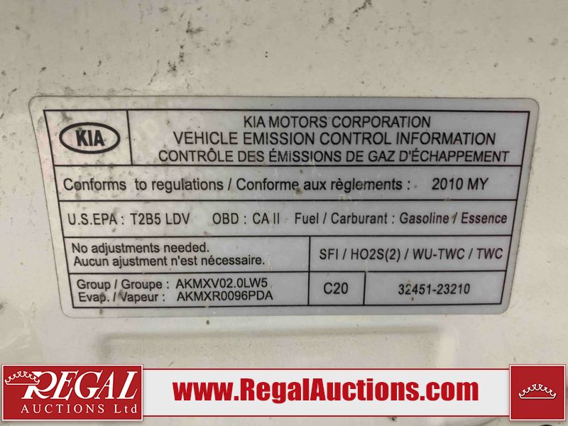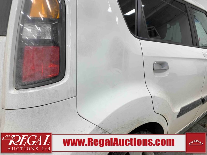 This 2010 KIA SOUL 2.0L 4U 4D HATCHBACK is powered by a 2.0L 4-cylinder gasoline engine and an automatic transmission. It is a two-wheel drive model. The SUV has seats for 5 people. The mileage is average considering the SUV's age. The vehicle has high-value options including a sunroof and heated seats. The body looks to be in fair condition overall. There is moderate rust on the left rear fender. There are slight scratches on the front bumper, left rear door, rear bumper, rear door, right rear fender, right rear door, and right front door. There are incidental chips on the hood, roof, left rear fender, rear bumper, rear door, and right rear door. There is incidental rust on the left front fender and left rear door. There is paint peeling on the left rear door. There is slight dent damage on the right rear fender. There are very minor chips in many areas around the body. There are very minor scratches in many areas around the body. The interior looks to be in fair condition overall. The driver's seat and passenger seat are stained. The doors are worn. The dashboard and rear seats are dirty. The windshield is cracked. The front tires are nearly bald and should be replaced. The rear tires have lots of tread. This SUV is being sold by a private individual. The vehicle will be sold with the following declarations: Claims Total $5000 - $9999 (See Footnote 1). Footnotes: 1) The vehicle's total recorded insurance claims history is between $5,000 - $9,999. This is the amount of money that was paid out by an insurance company for repairs to cover claims against the vehicle's insurance policy. This information is provided by CarFax. Regal Auctions Ltd. makes no guarantee or warranty, either express or implied, with respect to the data provided in this report. The information has been provided from the consignor and from sources generally believed to be reliable, however the accuracy of this information cannot be guaranteed by Regal Auctions.