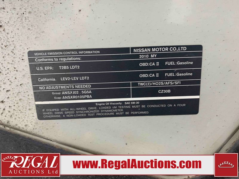 This 2010 NISSAN ROGUE SL 4D UTILITY is powered by a 2.5L 4-cylinder gasoline engine and an automatic transmission. It is equipped with all-wheel drive. The SUV has seats for 5 people. The SUV has low mileage for its age. The vehicle has high value options including a sunroof, leather upholstery, and power seats The body looks to be in fair condition overall. The rear bumper is broken. There are chips on the front bumper, rear bumper, and right rear door. There are incidental scratches on the front bumper, left front fender, left rear door, left rear fender, rear bumper, right rear door, right front door, and right front fender. There is minimal dent damage on the left rear fender. There are very minor chips in many areas around the body. There are very minor scratches in many areas around the body. The interior looks to be in fair condition overall. The driver's seat, passenger seat, and rear seats are worn. The windshield looks to be in good condition. All of the tires have lots of tread remaining. This SUV is being sold by an automotive broker. The vehicle will be sold with the following declarations: Claims Total $5000 - $9999 Footnotes: 1) The vehicle's total recorded insurance claims history is between $5,000 - $9,999. This is the amount of money that was paid out by an insurance company for repairs to cover claims against the vehicle's insurance policy. This information is provided by CarFax. Regal Auctions Ltd. makes no guarantee or warranty, either express or implied, with respect to the data provided in this report. The information has been provided from the consignor and from sources generally believed to be reliable, however the accuracy of this information cannot be guaranteed by Regal Auctions.