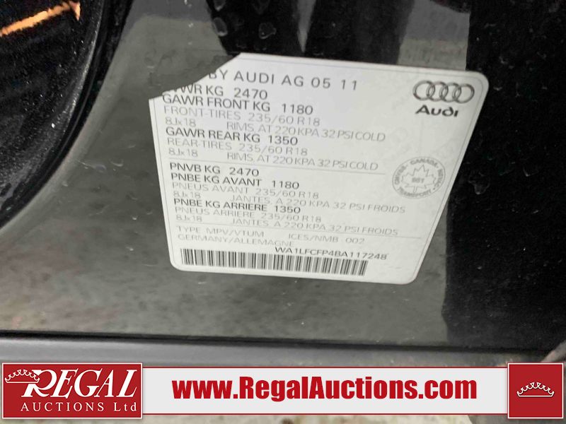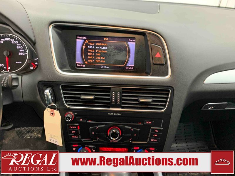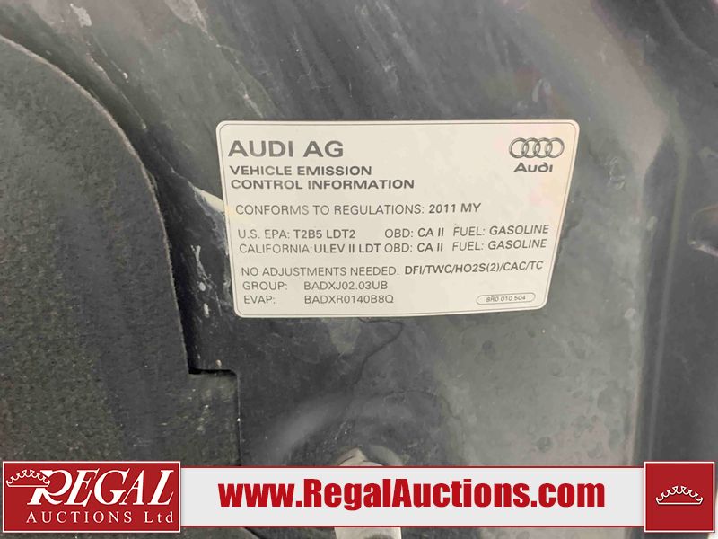 This 2011 AUDI Q5 2.0T QUATTRO 4D UTILITY AWD is powered by a 2.0L 4-cylinder gasoline engine and an automatic transmission. It is equipped with all-wheel drive. The SUV has seats for 5 people. The SUV has low mileage for its age. The vehicle has high-value options including a sunroof, leather upholstery, power seats, heated seats, and a power lift gate. The body looks to be in fair condition overall. The grille is cracked. There are slight chips on the front bumper, hood, and rear bumper. There are incidental scratches on the front bumper, hood, and rear bumper. There is dent damage on the right front door. There are very minor chips in many areas around the body. There are very minor scratches in many areas around the body. The interior looks to be in good condition overall. The dashboard, driver's seat, passenger seat, rear seats, and doors are dirty. The windshield is chipped. All of the tires have lots of tread remaining. This SUV is being sold by an automotive broker. The vehicle will be sold with the following declarations: Out of Province (See Footnote 1), Out of Province - BC (See Footnote 2), and Out of Province - AB OVERRIDE (See Footnote 3). Footnotes: 1) The vehicle's last jurisdiction of registration is not Alberta. The purchaser must have the vehicle undergo and pass an Out of Province inspection before it can be registered in Alberta. 2) The vehicle's last registered jurisdiction is British Columbia. The purchaser must have the vehicle undergo and pass an Out of Province inspection before it can be registered in Alberta. 3) Out of province inspection for registering the vehicle in Alberta has been completed. Regal Auctions Ltd. makes no guarantee or warranty, either express or implied, with respect to the data provided in this report. The information has been provided from the consignor and from sources generally believed to be reliable, however the accuracy of this information cannot be guaranteed by Regal Auctions.