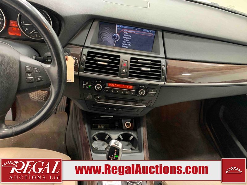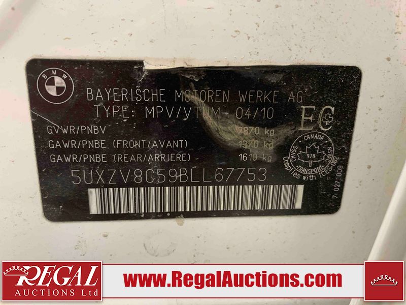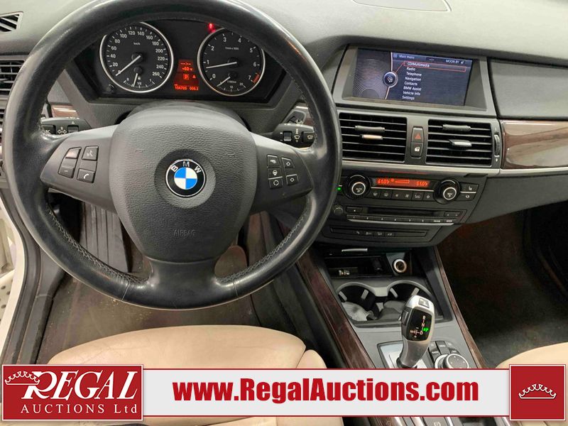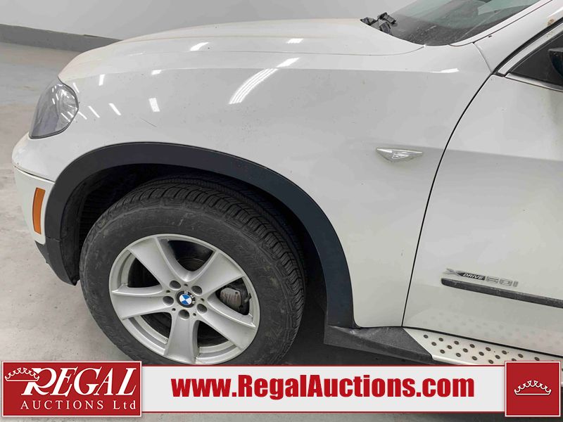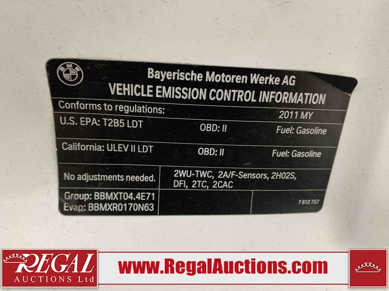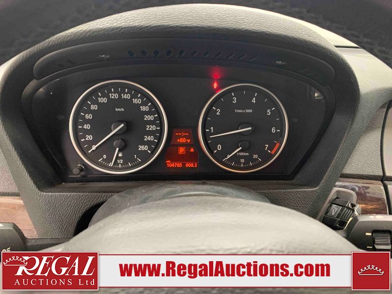 This 2011 BMW X5 XDRIVE50I 4D UTILITY is powered by a 4.4L V8 gasoline engine and an automatic transmission. It is equipped with all-wheel drive. The SUV has seats for 5 people. The mileage is average considering the SUV 's age. The odometer is in miles and its reading, 104,785 miles, translates into 167,656 kilometers. The vehicle has high-value options including a sunroof, leather upholstery, power seats, heated seats, navigation, a backup camera, and a power lift gate. The Stability Control light is on. The body looks to be in fair condition overall. The rear bumper is cracked. There are minimal chips on the front bumper, left front fender, and rear bumper. There are scratches on the front bumper, hood, left front fender, left front door, and rear bumper. There is minimal dent damage on the right front door. There are very minor chips in many areas around the body. There is very minor dent damage in many areas around the body. There are very minor scratches in many areas around the body. The interior looks to be in fair condition overall. The dashboard, driver's seat, passenger seat, rear seats, and doors are worn. The windshield looks to be in good condition. All of the tires have lots of tread remaining. This SUV is being sold by an automotive broker. The vehicle will be sold with the following declarations: Odometer in Miles (See Footnote 1). Footnotes: 1) The vehicle's odometer reading is in miles and not kilometers. (1 Mile = 1.6 Kilometers). Regal Auctions Ltd. makes no guarantee or warranty, either express or implied, with respect to the data provided in this report. The information has been provided from the consignor and from sources generally believed to be reliable, however the accuracy of this information cannot be guaranteed by Regal Auctions.