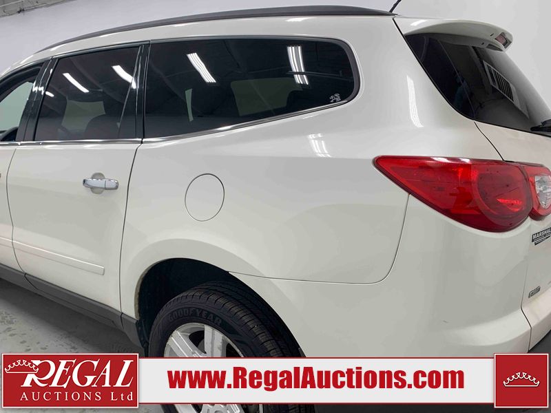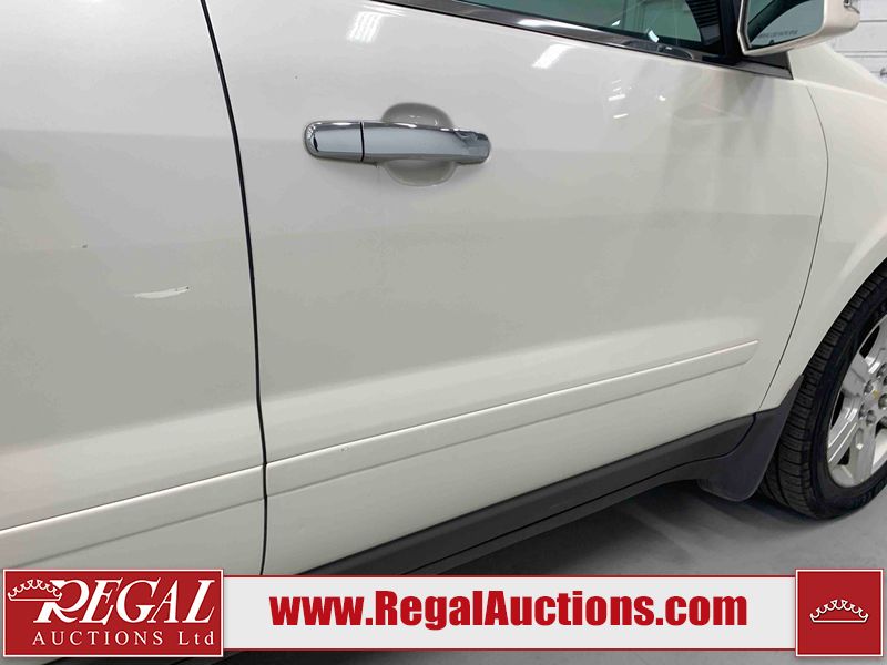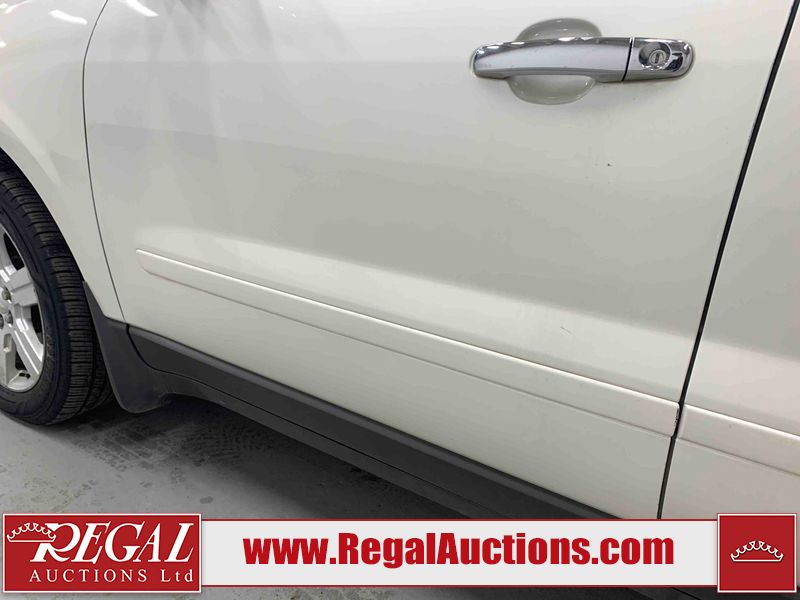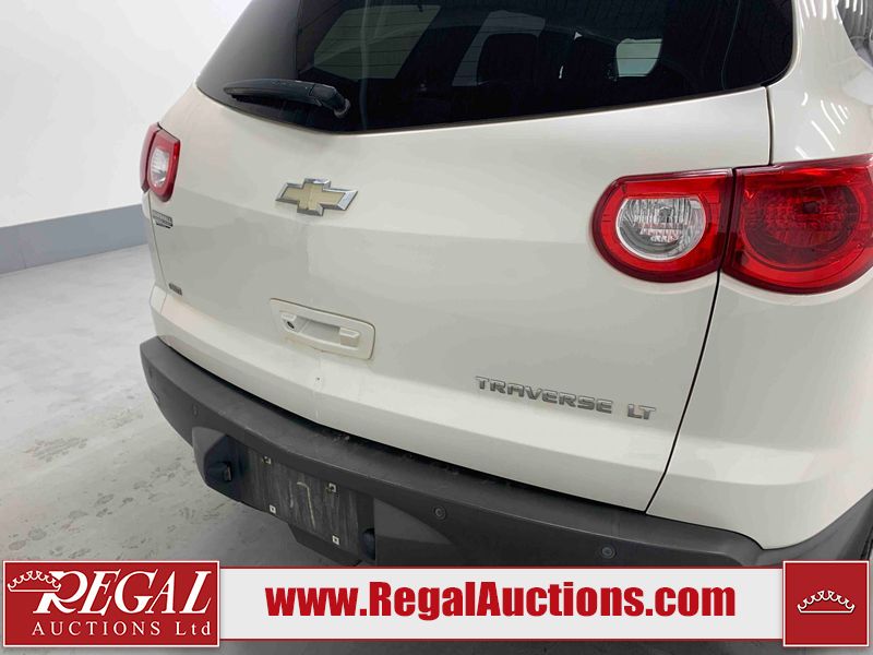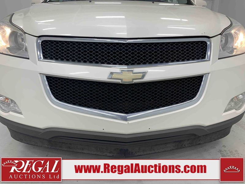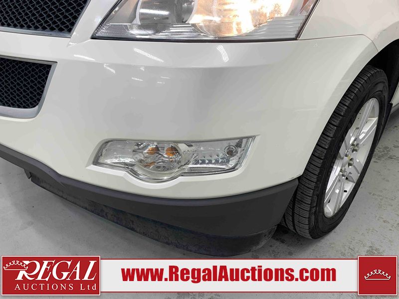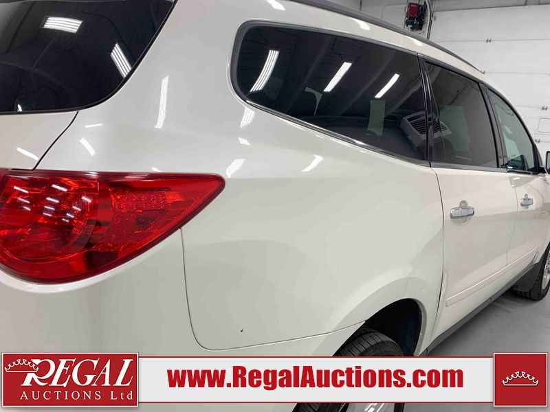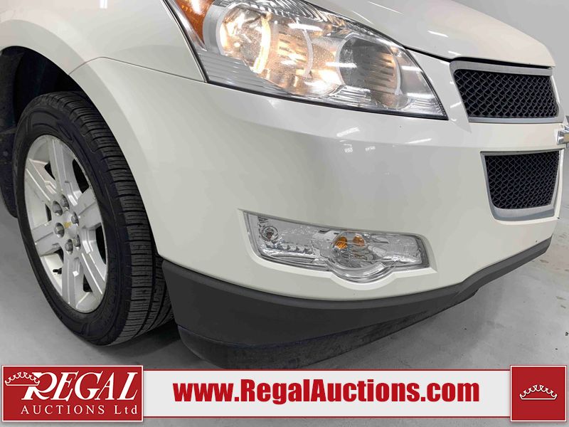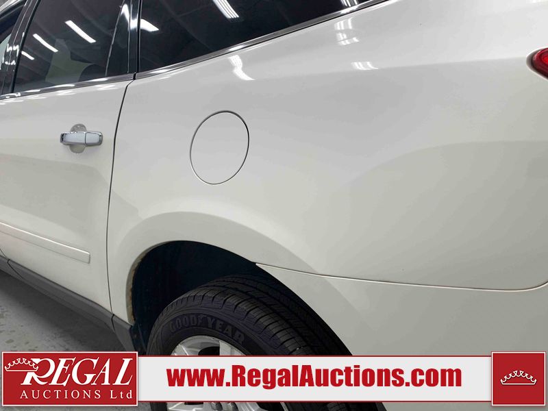 This 2011 CHEVROLET TRAVERSE 4D SPORT UTILITY AWD is powered by a 3.6L V6 gasoline engine and an automatic transmission. It is equipped with all-wheel drive. The SUV has seats for 7 people. The SUV has high mileage for its age. The vehicle has high-value options including power seats and heated seats. The Tire Pressure light is on. The body looks to be in rough condition overall. There are minimal chips on the front bumper. There are minimal scratches on the front bumper, hood, left front fender, left front door, left rear door, left rear fender, rear bumper, rear door, right rear fender, right rear door, right front door, and right front fender. There is paint peeling on the front bumper and hood. There is incidental hail on the roof, left rear fender, and right rear fender. There is minor dent damage on the rear door, right rear fender, and right front door. There is rust on the right rear fender. There are very minor chips in many areas around the body. There are very minor scratches on the roof. There is very minor dent damage in a few areas around the body. The interior looks to be in fair condition overall. The dashboard and doors are worn. The driver's seat, passenger seat, and rear seats are stained. The windshield is cracked. All of the tires have lots of tread remaining. This SUV is being sold by an automotive broker. The vehicle will be sold with the following declarations: Hail Damage (See Footnote 1). Footnotes: 1) This vehicle shows signs of damage from a hail storm. Hail damage is not always clearly visible in photographs. Regal Auctions Ltd. makes no guarantee or warranty, either express or implied, with respect to the data provided in this report. The information has been provided from the consignor and from sources generally believed to be reliable, however the accuracy of this information cannot be guaranteed by Regal Auctions.