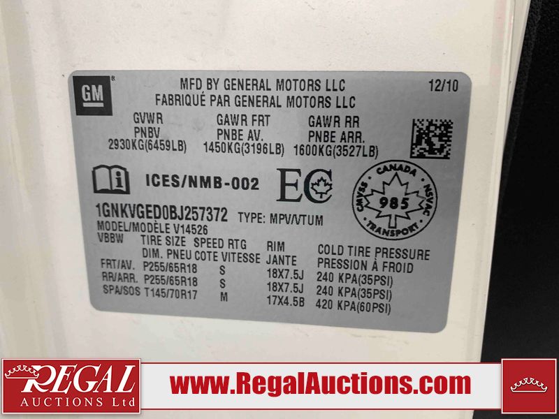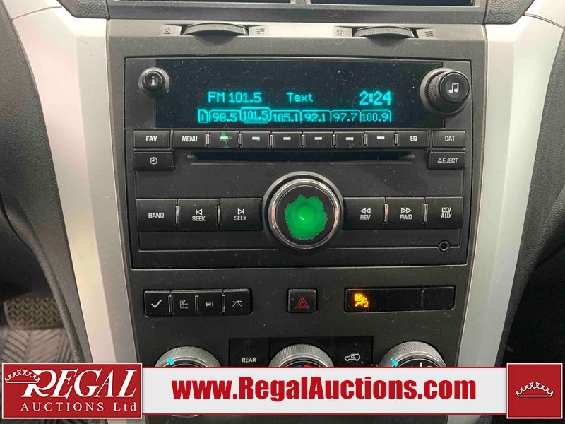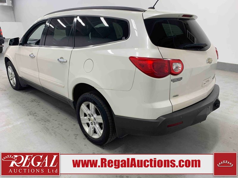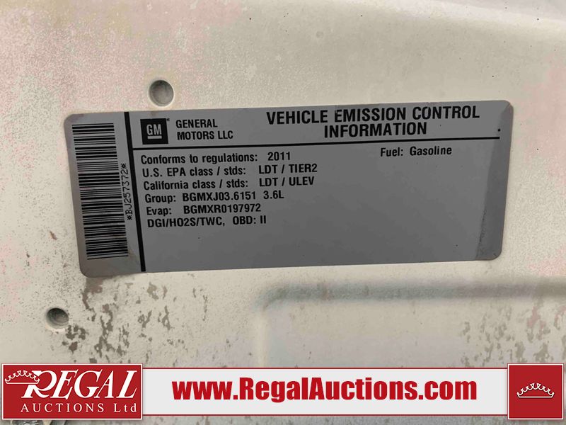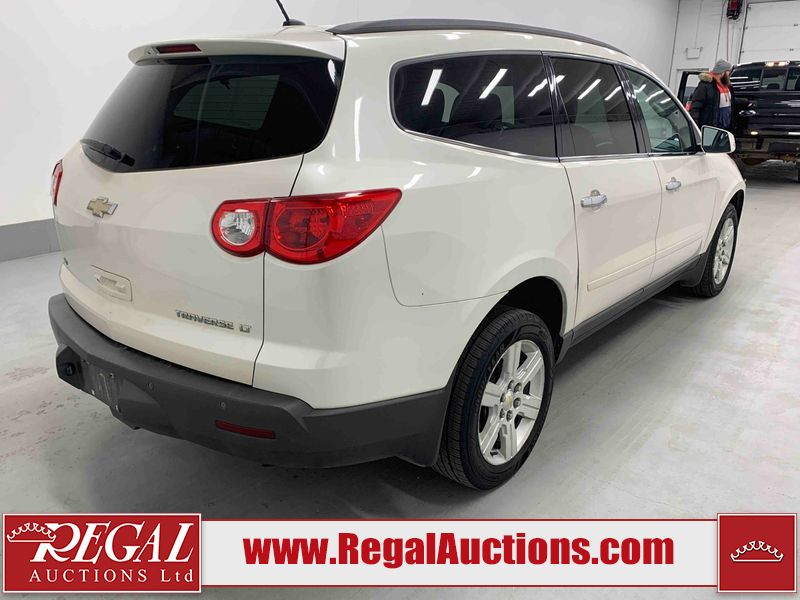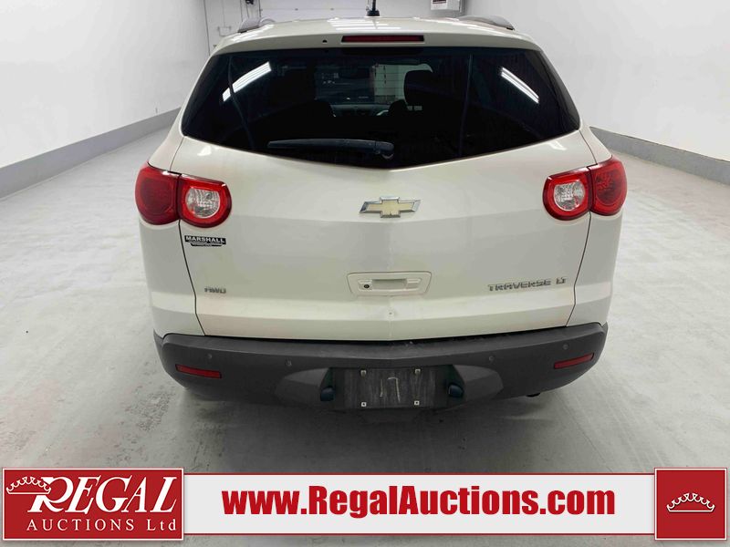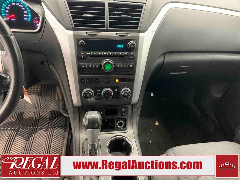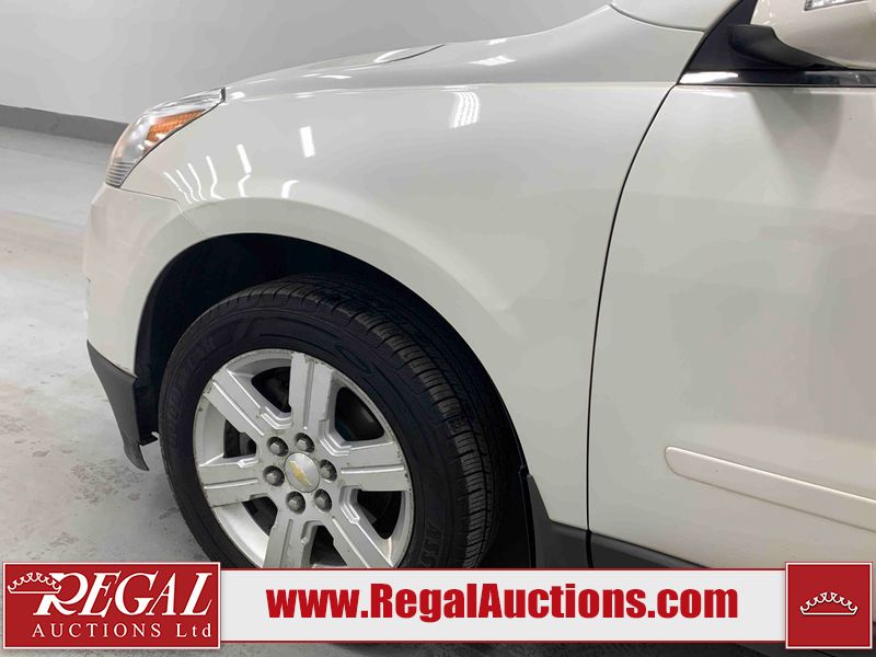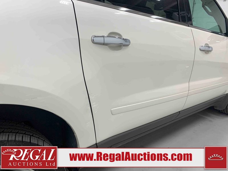 This 2011 CHEVROLET TRAVERSE 4D SPORT UTILITY AWD is powered by a 3.6L V6 gasoline engine and an automatic transmission. It is equipped with all-wheel drive. The SUV has seats for 7 people. The SUV has high mileage for its age. The vehicle has high-value options including power seats and heated seats. The Tire Pressure light is on. The body looks to be in rough condition overall. There are minimal chips on the front bumper. There are minimal scratches on the front bumper, hood, left front fender, left front door, left rear door, left rear fender, rear bumper, rear door, right rear fender, right rear door, right front door, and right front fender. There is paint peeling on the front bumper and hood. There is incidental hail on the roof, left rear fender, and right rear fender. There is minor dent damage on the rear door, right rear fender, and right front door. There is rust on the right rear fender. There are very minor chips in many areas around the body. There are very minor scratches on the roof. There is very minor dent damage in a few areas around the body. The interior looks to be in fair condition overall. The dashboard and doors are worn. The driver's seat, passenger seat, and rear seats are stained. The windshield is cracked. All of the tires have lots of tread remaining. This SUV is being sold by an automotive broker. The vehicle will be sold with the following declarations: Hail Damage (See Footnote 1). Footnotes: 1) This vehicle shows signs of damage from a hail storm. Hail damage is not always clearly visible in photographs. Regal Auctions Ltd. makes no guarantee or warranty, either express or implied, with respect to the data provided in this report. The information has been provided from the consignor and from sources generally believed to be reliable, however the accuracy of this information cannot be guaranteed by Regal Auctions.