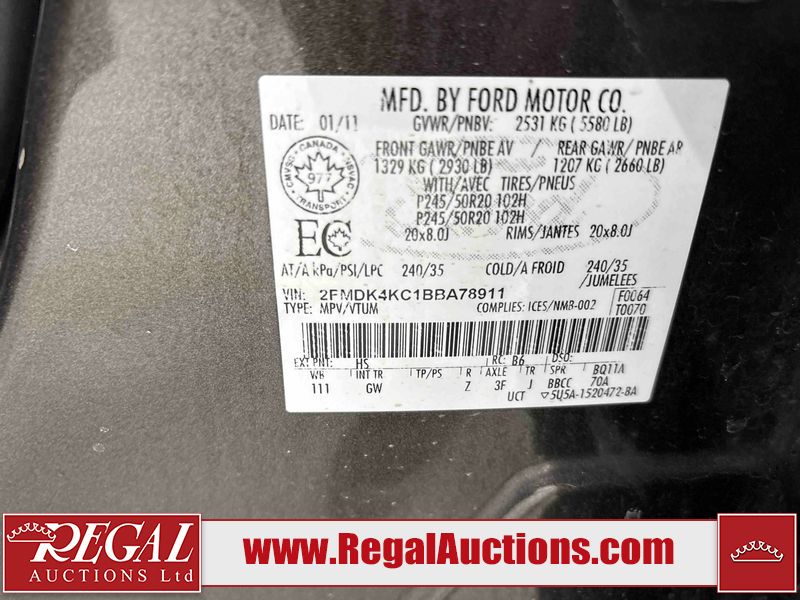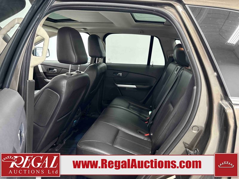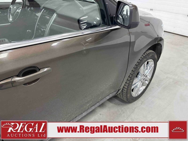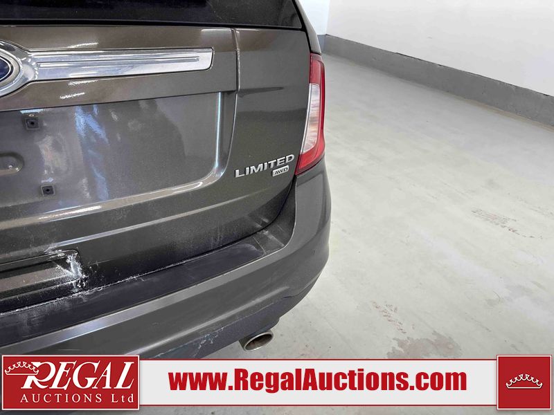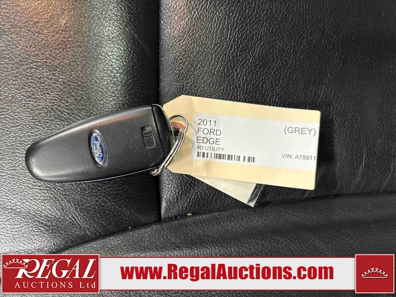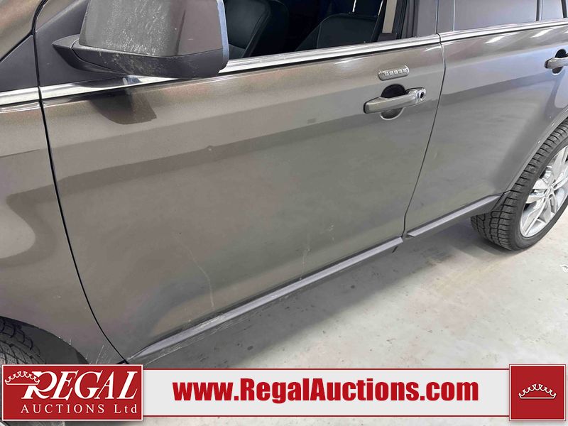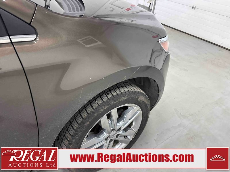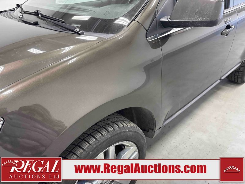 This 2011 FORD EDGE 4D UTILITY is powered by a 3.5L V6 gasoline engine and an automatic transmission. It is equipped with all-wheel drive. The SUV has seats for 5 people. The mileage is average considering the SUV's age. The vehicle has high-value options, including a sunroof, leather upholstery, power seats, navigation, and a backup camera. The body looks to be in fair condition overall. There is moderate rust on the left rear door. The left rear door has been repainted poorly. There are chips on the left rear door. There are scratches on the left rear fender. There are very minor chips in many areas around the body. There are very minor scratches in many areas around the body. There is very minor dent damage in some areas around the body. The interior looks to be in good condition overall. The windshield is chipped. All of the tires have lots of tread remaining. This SUV is being sold by an automotive broker. Regal Auctions Ltd. makes no guarantee or warranty, either express or implied, with respect to the data provided in this report. The information has been provided from the consignor and from sources generally believed to be reliable, however the accuracy of this information cannot be guaranteed by Regal Auctions.