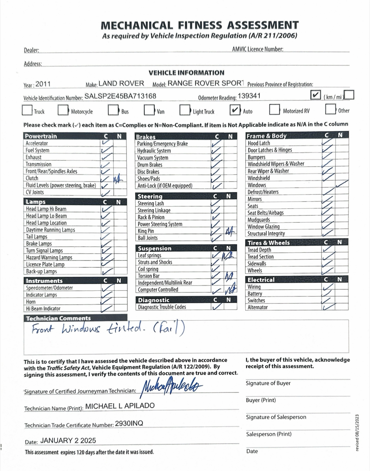 Please rate this vehicle condition report: