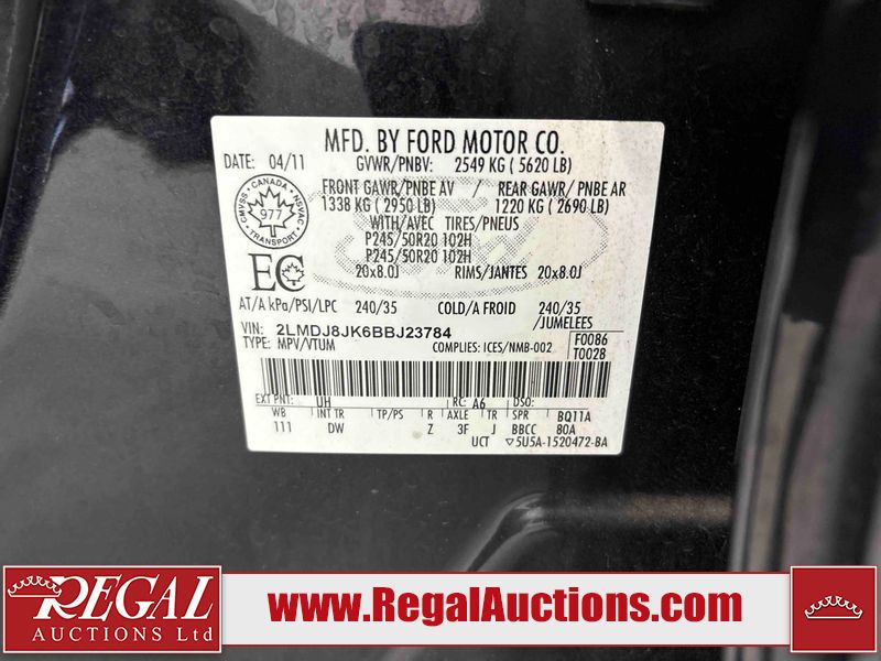 This 2011 LINCOLN MKX 4D UTILITY AWD is powered by a 3.7L V6 gasoline engine and an automatic transmission. It is equipped with all-wheel drive. The SUV has seats for 5 people. The SUV has high mileage for its age. The vehicle has high-value options including power seats, a DVD Player, and navigation. The Tire Pressure light is on. The body looks to be in rough condition overall. The right rear fender has been repainted poorly. The front bumper is broken. There is moderate hail on the hood. The left front fender, left front door, left rear door, and left rear fender have been repainted poorly. There is some rust on the left front door and right rear fender. There are scratches on the front bumper, left front fender, left front door, left rear door, rear bumper, right rear door, right front door, and right front fender. There is minimal rust on the roof, left front fender, and left rear fender. There are very minor chips in many areas around the body. There are very minor scratches in many areas around the body. There is very minor dent damage on the left rear door. The interior looks to be in good condition overall. The windshield is cracked. The passenger side front tire and the driver's side rear tire are both worn. The other tires have lots of tread remaining. This SUV is being sold by an automotive broker. The vehicle will be sold with the following declarations: Claims Total $3000 - $4999 (See Footnote 1) and Hail Damage (See Footnote 2). Footnotes: 1) The vehicle's total recorded insurance claims history is between $3,000 - $4,999. This is the amount of money that was paid out by an insurance company for repairs to cover claims against the vehicle's insurance policy. This information is provided by CarFax. 2) This vehicle shows signs of damage from a hail storm. Hail damage is not always clearly visible in photographs. Regal Auctions Ltd. makes no guarantee or warranty, either express or implied, with respect to the data provided in this report. The information has been provided from the consignor and from sources generally believed to be reliable, however the accuracy of this information cannot be guaranteed by Regal Auctions.