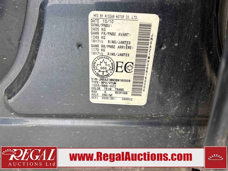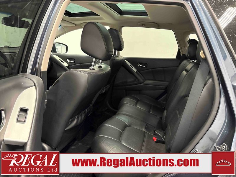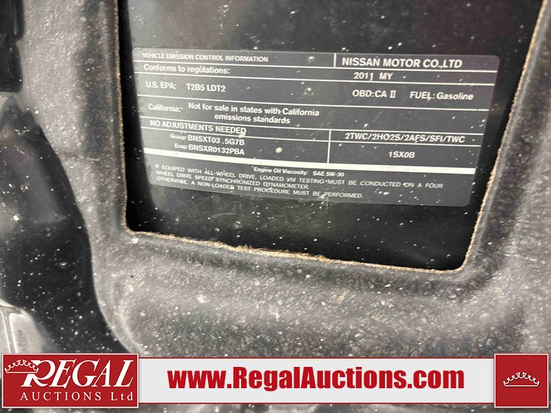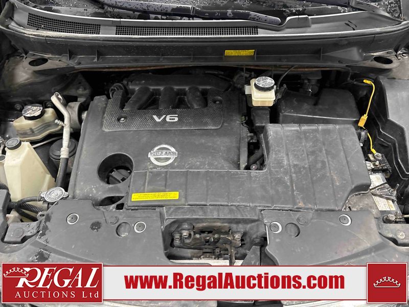 This 2011 NISSAN MURANO SL 4D UTILITY is powered by a 3.5L V6 gasoline engine and an automatic transmission. It is equipped with all-wheel drive. The SUV has seats for 5 people. The mileage is average considering the SUV's age. The vehicle has high-value options including a sunroof, leather upholstery, and power seats. The vehicle has some mechanical problems. The engine doesn't start and the vehicle is not drivable. It will have to be towed. (See Footnote 1) The body looks to be in good condition overall. There are scratches on the left front door, rear bumper, right rear door, and right front door. There are very minor chips in many areas around the body. There are very minor scratches in many areas around the body. There is very minor dent damage in a few areas around the body. The interior looks to be in good condition overall. The windshield is chipped. All of the tires have lots of tread remaining. This SUV is being sold by an automotive broker. The vehicle will be sold with the following declarations: Claims Total $3000 - $4999 (See Footnote 2), Out of Province - BC (See Footnote 3), and Out of Province - AB OVERRIDE (See Footnote 4). Footnotes: 1) We've identified some mechanical problems with the vehicle. However, the vehicle has not undergone a mechanical inspection and our findings are not to be considered a complete evaluation of the vehicle's mechanical condition. Review our Buyer Protection Policy to see how Regal Auctions protects you from undisclosed mechanical problems. 2) The vehicle's total recorded insurance claims history is between $3,000 - $4,999. This is the amount of money that was paid out by an insurance company for repairs to cover claims against the vehicle's insurance policy. This information is provided by CarFax. 3) The vehicle's last registered jurisdiction is British Columbia. The purchaser must have the vehicle undergo and pass an Out of Province inspection before it can be registered in Alberta. 4) Out of province inspection for registering the vehicle in Alberta has been completed. Regal Auctions Ltd. makes no guarantee or warranty, either express or implied, with respect to the data provided in this report. The information has been provided from the consignor and from sources generally believed to be reliable, however the accuracy of this information cannot be guaranteed by Regal Auctions.