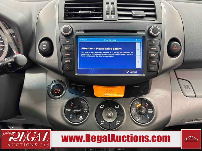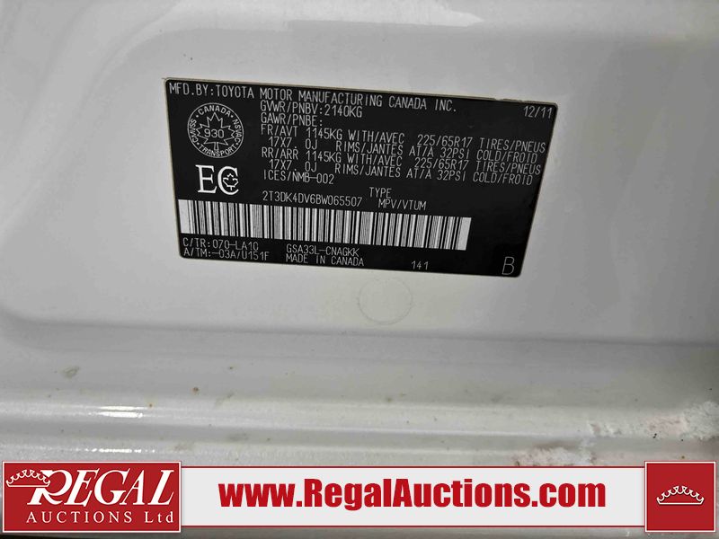 This 2011 TOYOTA RAV4 LIMITED 4D UTILITY 4WD is powered by a 6-cylinder gasoline engine and an automatic transmission. It is equipped with four-wheel drive. The SUV has seats for 5 people. The SUV has low mileage for its age. LIMITED is a very popular trim level. The vehicle has high-value options including a sunroof, leather upholstery, power seats, and a backup camera. The body looks to be in fair condition overall. The hood and left front fender have been repainted poorly. There is some paint peeling on the left front door. The roof has been repainted poorly. There are incidental scratches on the left rear door and left rear fender. There are chips in many areas around the body. There are scratches in many areas around the body. There is dent damage in a few areas around the body. The interior looks to be in good condition overall. The windshield looks to be in good condition. All of the tires have lots of tread remaining. This SUV is being sold by an automotive broker. Regal Auctions Ltd. makes no guarantee or warranty, either express or implied, with respect to the data provided in this report. The information has been provided from the consignor and from sources generally believed to be reliable, however the accuracy of this information cannot be guaranteed by Regal Auctions.