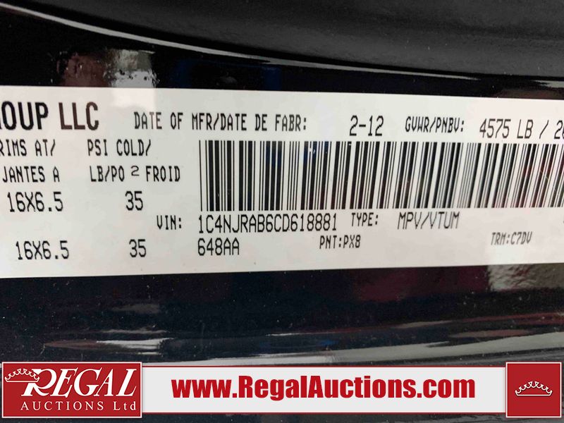 This 2012 JEEP PATRIOT North Edition 4D UTILITY 4WD is powered by a 2.4L 4 cylinder gasoline engine and an automatic transmission. It is equipped with four wheel drive. The SUV has seats for 5 people. The SUV has low mileage for its age. The body looks to be in fair condition overall. There is noteworthy rust on the roof and left rear fender. There are incidental chips on the front bumper, hood, left front fender, and right front fender. There are scratches on the hood, left front fender, left front door, left rear door, left rear fender, rear bumper, right rear fender, right rear door, right front door, and right front fender. There is minor rust on the hood. There is dent damage on the left rear door. There are very minor chips in many areas around the body. There are very minor scratches on the rear door. The interior looks to be in good condition overall. The carpet is dirty. The windshield is chipped. All of the tires have lots of tread remaining. This SUV is being sold by an automotive broker. The vehicle will be sold with the following declarations: Claims Total $5000 - $9999 (See Footnote 1) and Rebuilt Status (See Footnote 2). Footnotes: 1) The vehicle's total recorded insurance claims history is between $5,000 - $9,999. This is the amount of money that was paid out by an insurance company for repairs to cover claims against the vehicle's insurance policy. This information is provided by CarFax. 2) This vehicle has been rebuilt from salvage. Regal Auctions Ltd. makes no guarantee or warranty, either express or implied, with respect to the data provided in this report. The information has been provided from the consignor and from sources generally believed to be reliable, however the accuracy of this information cannot be guaranteed by Regal Auctions.