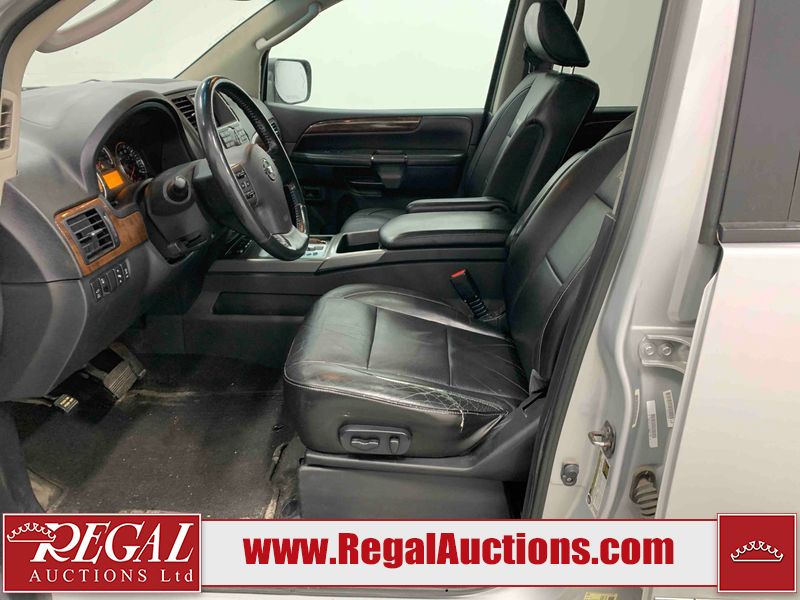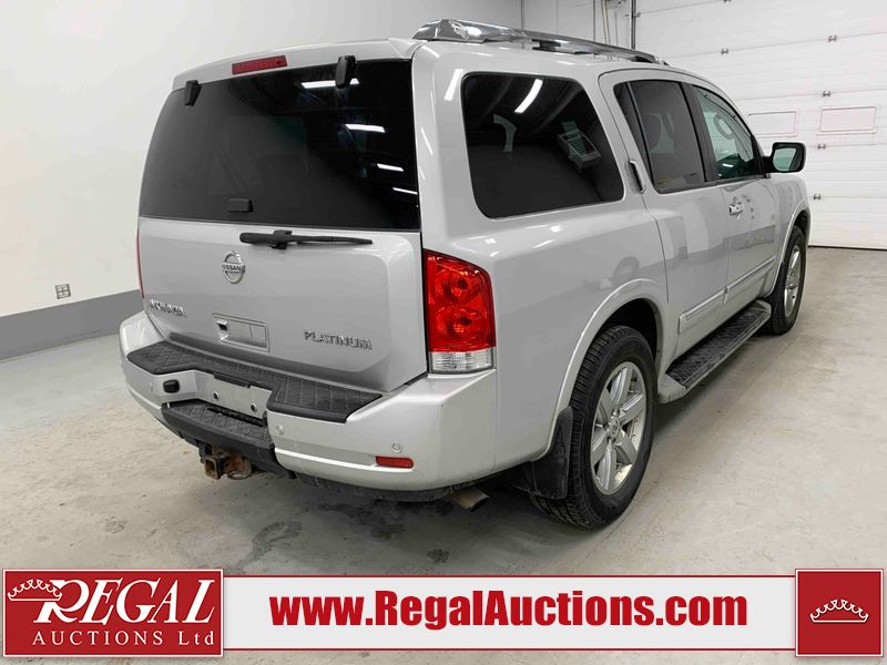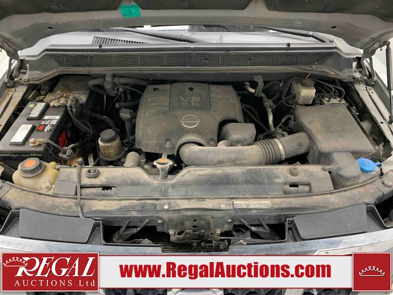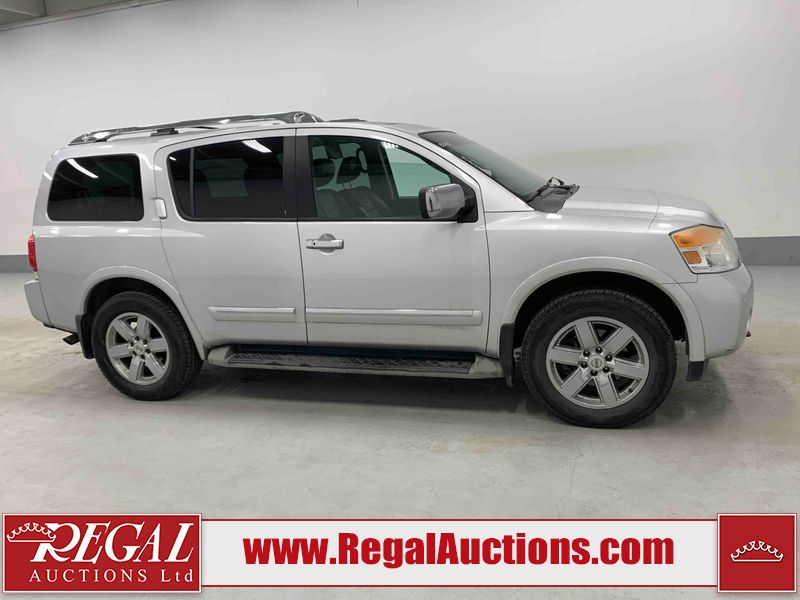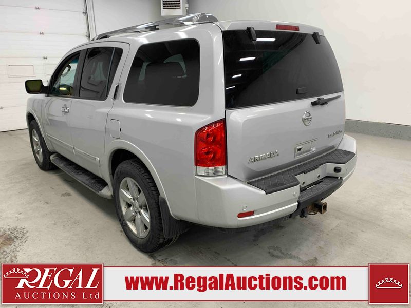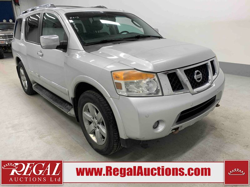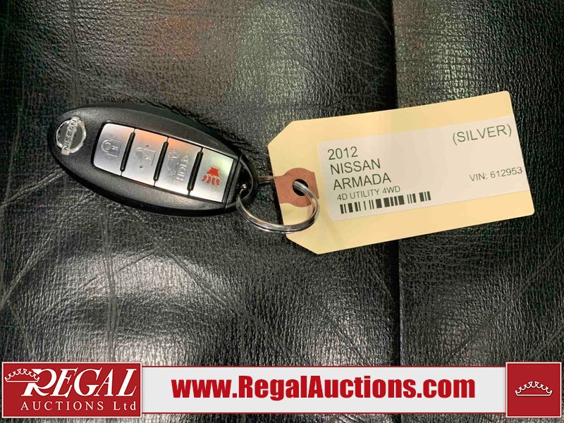 This 2012 NISSAN ARMADA 4D UTILITY 4WD is powered by a 5.6L V8 gasoline engine and an automatic transmission. It is equipped with four-wheel drive. The SUV has seats for 7 people. The SUV has high mileage for its age. The odometer is in miles and its reading, 170,631 miles, translates into 273,009 kilometers. The vehicle has high-value options including a sunroof, leather upholstery, power seats, heated seats, a DVD Player, navigation, a backup camera, and a power liftgate. The body looks to be in good condition overall. There are minor chips on the front bumper, hood, left front door, left rear door, right rear door, right front door, and right front fender. There are minor scratches on the left front fender, left rear fender, rear bumper, and right rear fender. There are very minor chips on the grille. There are very minor scratches in many areas around the body. The 3M on the hood is peeling. The interior looks to be in good condition overall. The driver's seat is worn. The windshield is cracked. The passenger front tire is worn. The rest of the tires all have lots of tread remaining. This SUV is being sold by an automotive broker. The vehicle will be sold with the following declarations: Odometer in Miles (See Footnote 1) and Claims Total $5000 - $9999 (See Footnote 2). Footnotes: 1) The vehicle's odometer reading is in miles and not kilometers. (1 Mile = 1.6 Kilometers). 2) The vehicle's total recorded insurance claims history is between $5,000 - $9,999. This is the amount of money that was paid out by an insurance company for repairs to cover claims against the vehicle's insurance policy. This information is provided by CarFax. Regal Auctions Ltd. makes no guarantee or warranty, either express or implied, with respect to the data provided in this report. The information has been provided from the consignor and from sources generally believed to be reliable, however the accuracy of this information cannot be guaranteed by Regal Auctions.