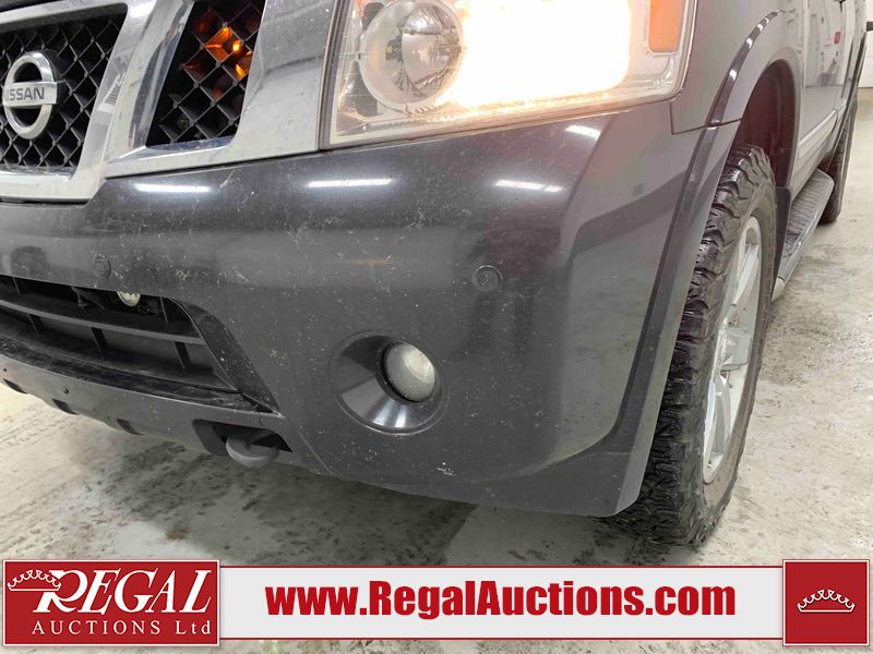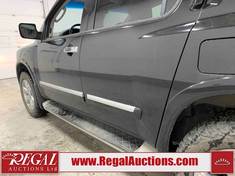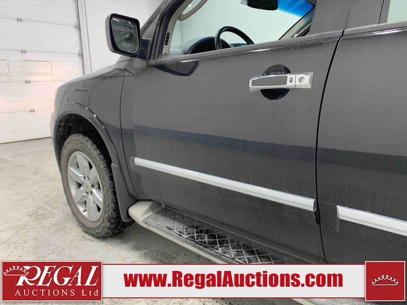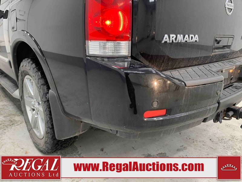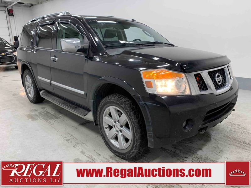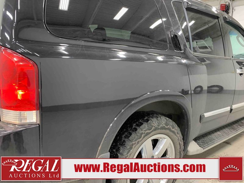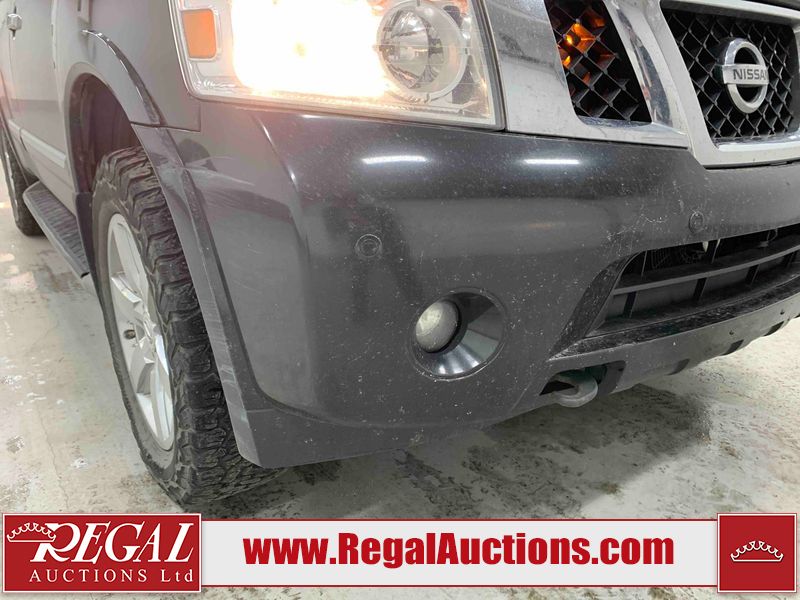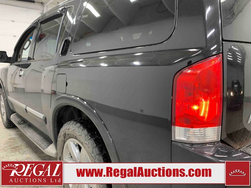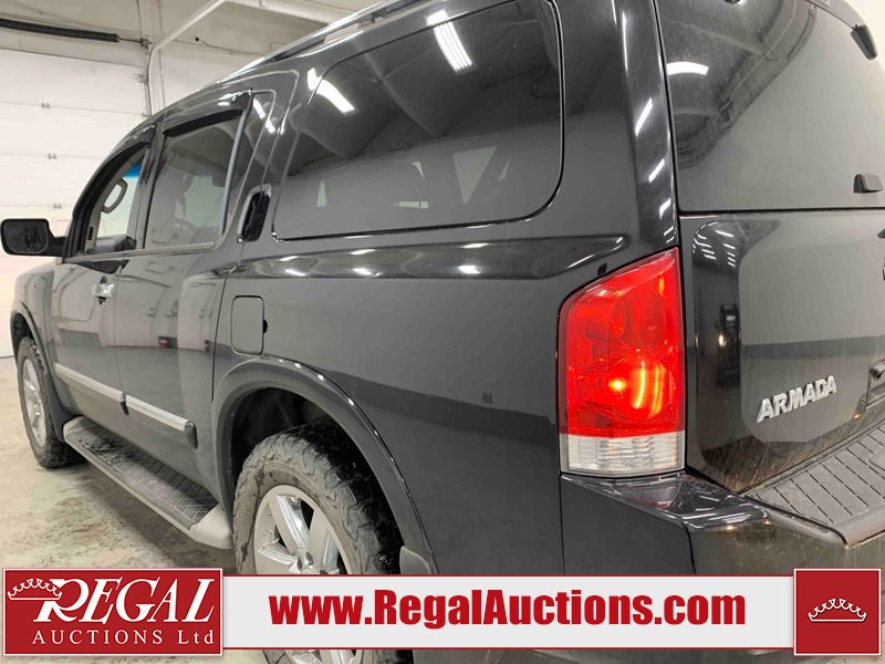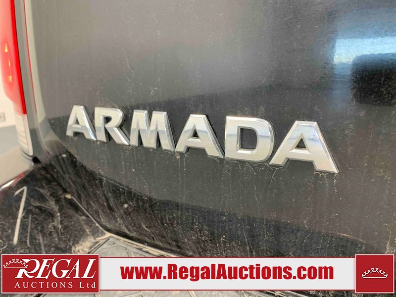 This 2012 NISSAN ARMADA 4D SPORT UTITLITY is powered by a 5.6L V8 gasoline engine and an automatic transmission. It is equipped with four-wheel drive. The SUV has seats for 7 people. The mileage is average considering the SUV's age. The vehicle has high-value options including a sunroof, leather upholstery, power seats, heated seats, a DVD Player, navigation, a backup camera, and a power liftgate. The body looks to be in fair condition overall. There are slight scratches on the front bumper, left front door, left rear door, left rear fender, rear bumper, rear door, right rear fender, and right rear door. There is incidental dent damage on the left front fender and right front fender. There are very minor chips in many areas around the body. There are very minor scratches in many areas around the body. There is very minor dent damage on the left rear fender. The interior looks to be in fair condition overall. The dashboard, driver's seat, passenger seat, rear seats, and doors are worn. The windshield is chipped. All of the tires have lots of tread remaining. This SUV is being sold by a franchise dealership. The vehicle will be sold with the following declarations: Dealership Trade-In (See Footnote 1). Footnotes: 1) This vehicle is being sold on behalf of a franchise dealership. Franchise Dealerships are automotive sales companies who are directly connected to an automotive manufacturer like Ford, Tesla, Honda, BMW, or similar. Regal Auctions Ltd. makes no guarantee or warranty, either express or implied, with respect to the data provided in this report. The information has been provided from the consignor and from sources generally believed to be reliable, however the accuracy of this information cannot be guaranteed by Regal Auctions.