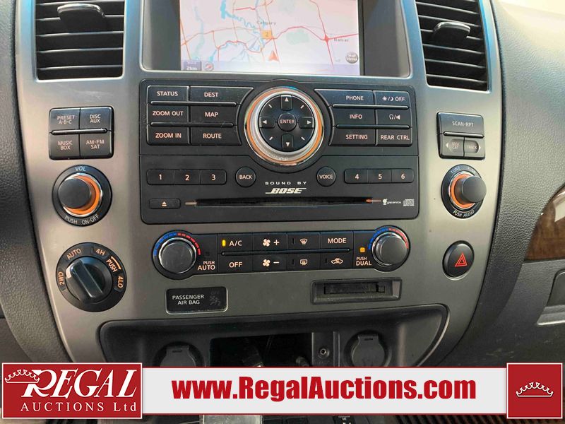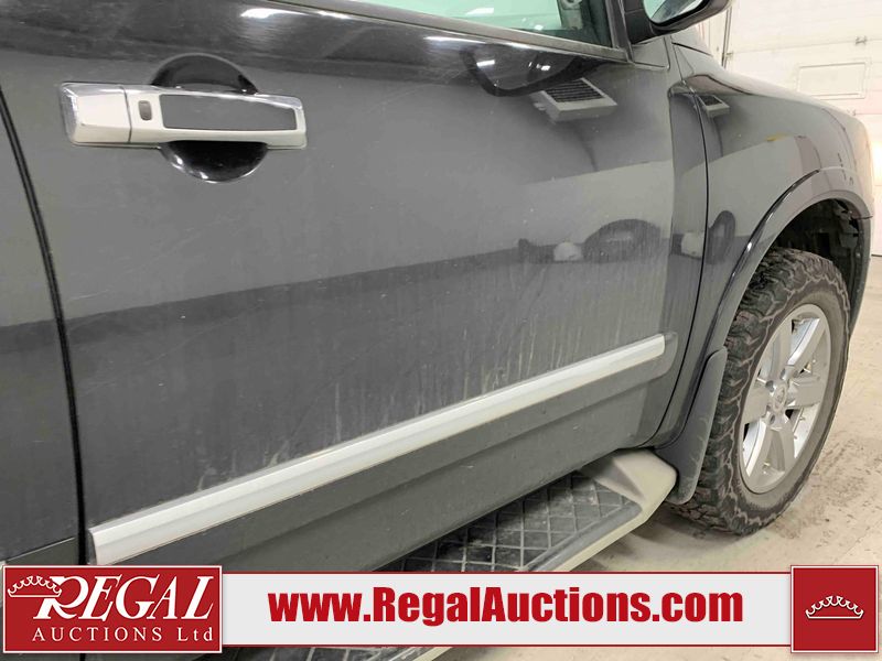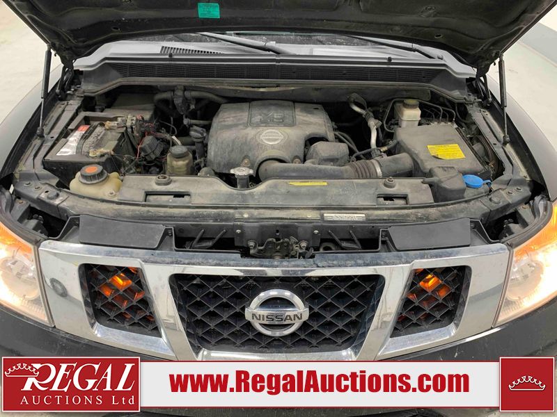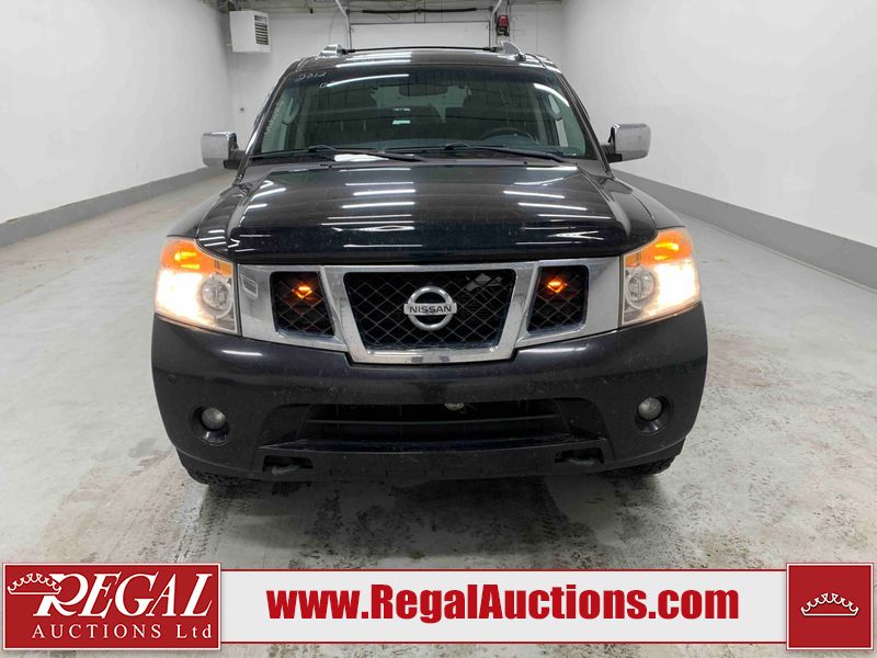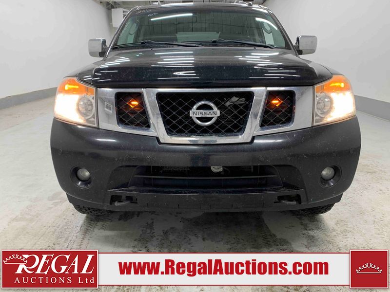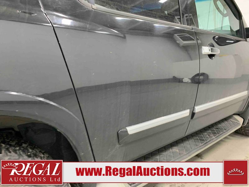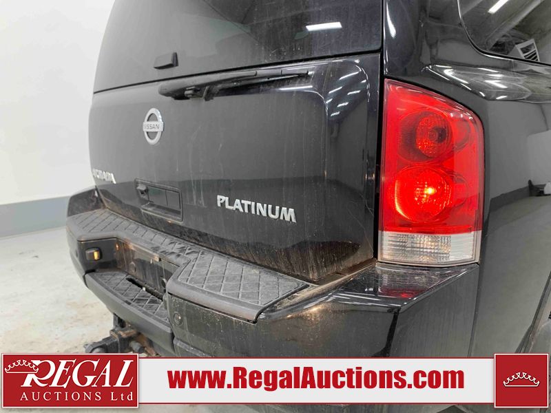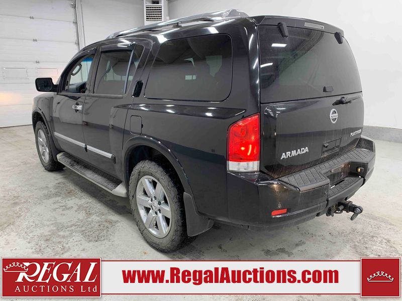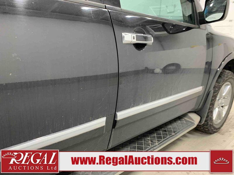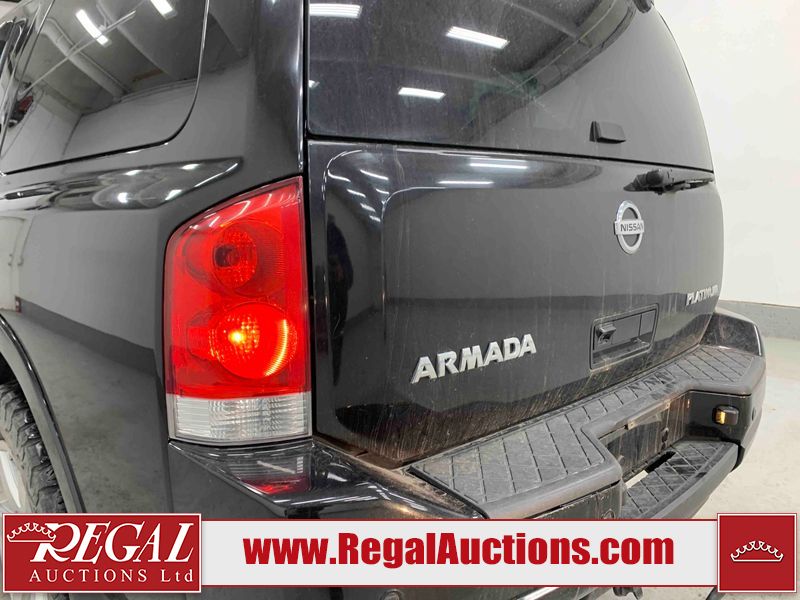 This 2012 NISSAN ARMADA 4D SPORT UTITLITY is powered by a 5.6L V8 gasoline engine and an automatic transmission. It is equipped with four-wheel drive. The SUV has seats for 7 people. The mileage is average considering the SUV's age. The vehicle has high-value options including a sunroof, leather upholstery, power seats, heated seats, a DVD Player, navigation, a backup camera, and a power liftgate. The body looks to be in fair condition overall. There are slight scratches on the front bumper, left front door, left rear door, left rear fender, rear bumper, rear door, right rear fender, and right rear door. There is incidental dent damage on the left front fender and right front fender. There are very minor chips in many areas around the body. There are very minor scratches in many areas around the body. There is very minor dent damage on the left rear fender. The interior looks to be in fair condition overall. The dashboard, driver's seat, passenger seat, rear seats, and doors are worn. The windshield is chipped. All of the tires have lots of tread remaining. This SUV is being sold by a franchise dealership. The vehicle will be sold with the following declarations: Dealership Trade-In (See Footnote 1). Footnotes: 1) This vehicle is being sold on behalf of a franchise dealership. Franchise Dealerships are automotive sales companies who are directly connected to an automotive manufacturer like Ford, Tesla, Honda, BMW, or similar. Regal Auctions Ltd. makes no guarantee or warranty, either express or implied, with respect to the data provided in this report. The information has been provided from the consignor and from sources generally believed to be reliable, however the accuracy of this information cannot be guaranteed by Regal Auctions.