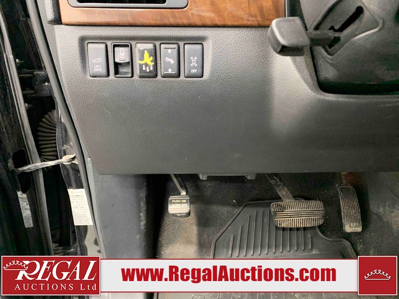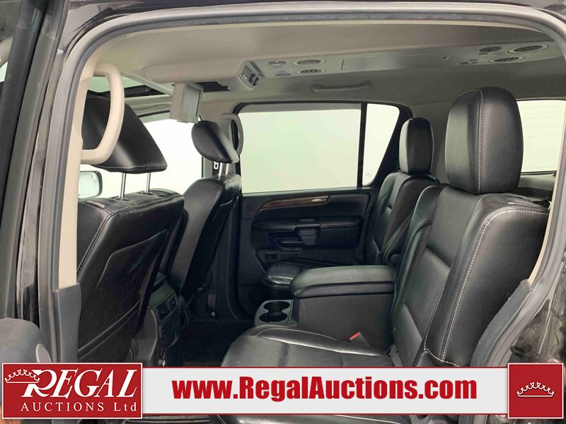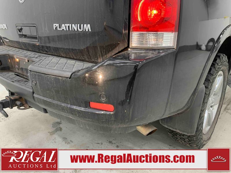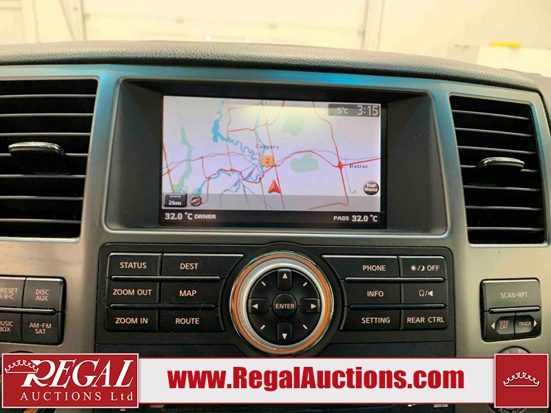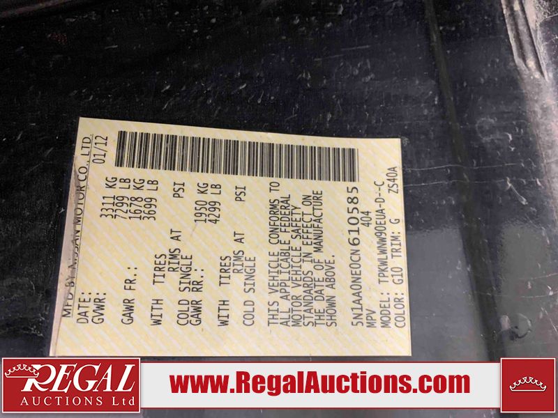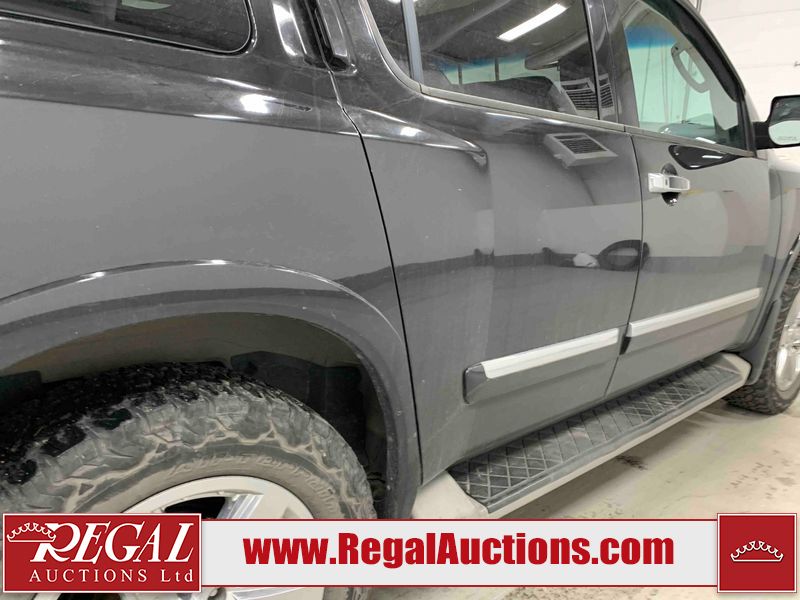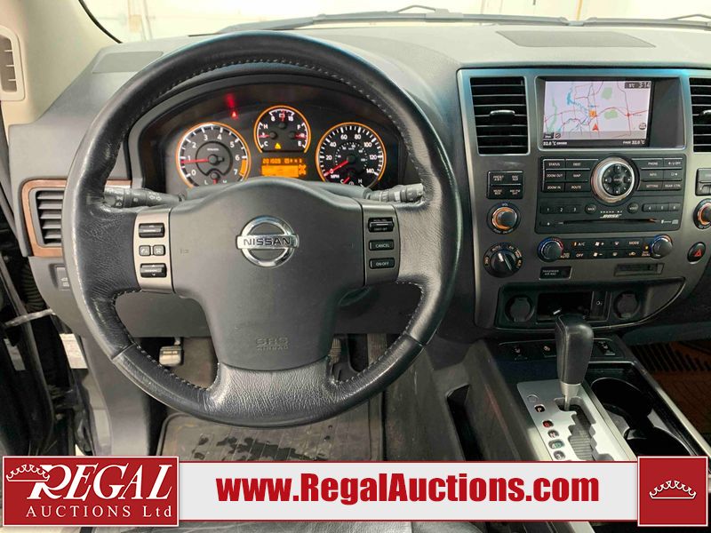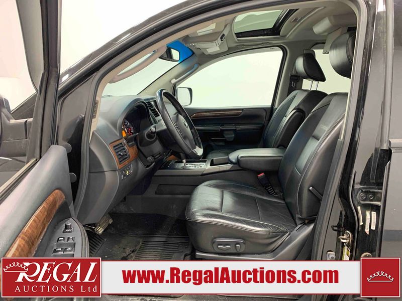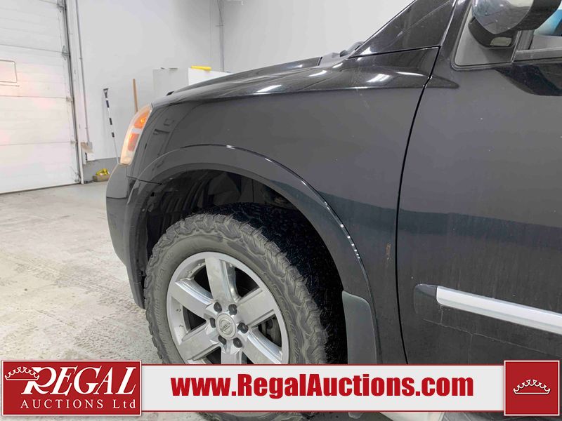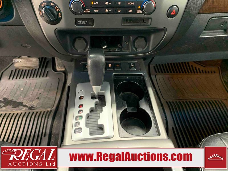 This 2012 NISSAN ARMADA 4D SPORT UTITLITY is powered by a 5.6L V8 gasoline engine and an automatic transmission. It is equipped with four-wheel drive. The SUV has seats for 7 people. The mileage is average considering the SUV's age. The vehicle has high-value options including a sunroof, leather upholstery, power seats, heated seats, a DVD Player, navigation, a backup camera, and a power liftgate. The body looks to be in fair condition overall. There are slight scratches on the front bumper, left front door, left rear door, left rear fender, rear bumper, rear door, right rear fender, and right rear door. There is incidental dent damage on the left front fender and right front fender. There are very minor chips in many areas around the body. There are very minor scratches in many areas around the body. There is very minor dent damage on the left rear fender. The interior looks to be in fair condition overall. The dashboard, driver's seat, passenger seat, rear seats, and doors are worn. The windshield is chipped. All of the tires have lots of tread remaining. This SUV is being sold by a franchise dealership. The vehicle will be sold with the following declarations: Dealership Trade-In (See Footnote 1). Footnotes: 1) This vehicle is being sold on behalf of a franchise dealership. Franchise Dealerships are automotive sales companies who are directly connected to an automotive manufacturer like Ford, Tesla, Honda, BMW, or similar. Regal Auctions Ltd. makes no guarantee or warranty, either express or implied, with respect to the data provided in this report. The information has been provided from the consignor and from sources generally believed to be reliable, however the accuracy of this information cannot be guaranteed by Regal Auctions.