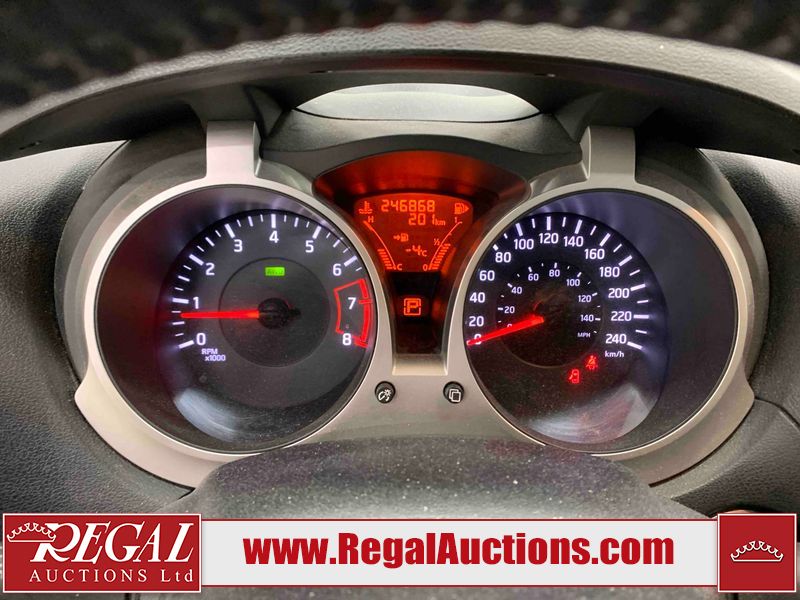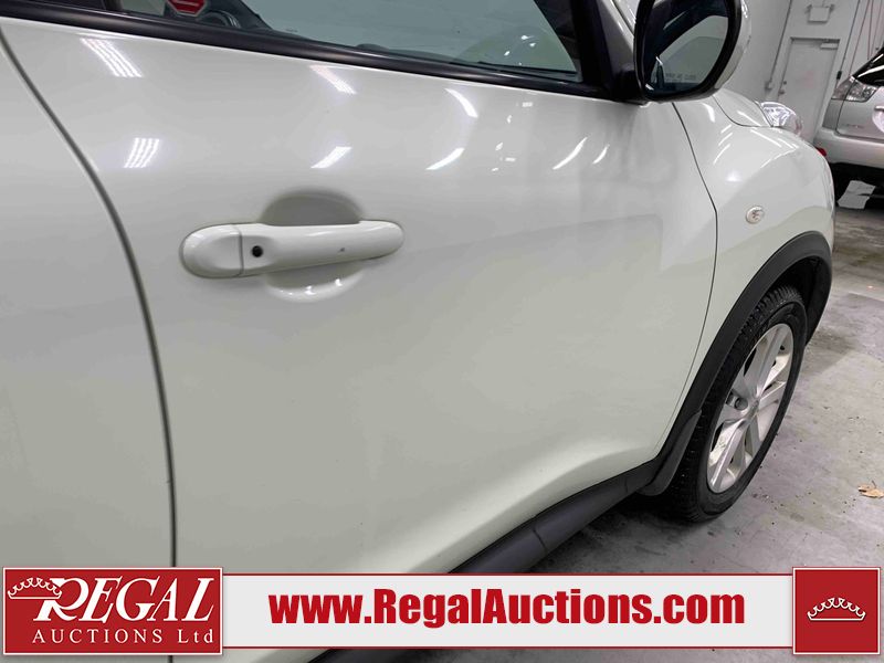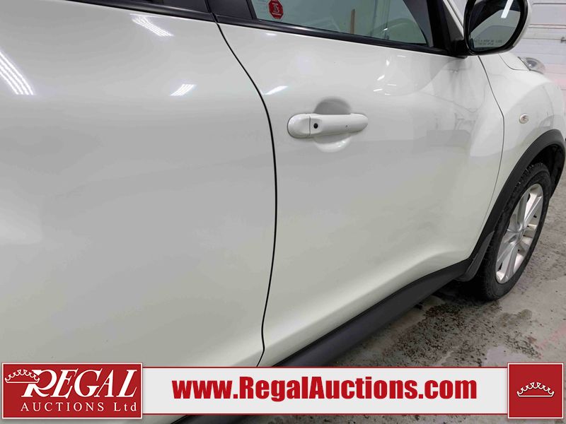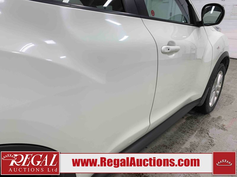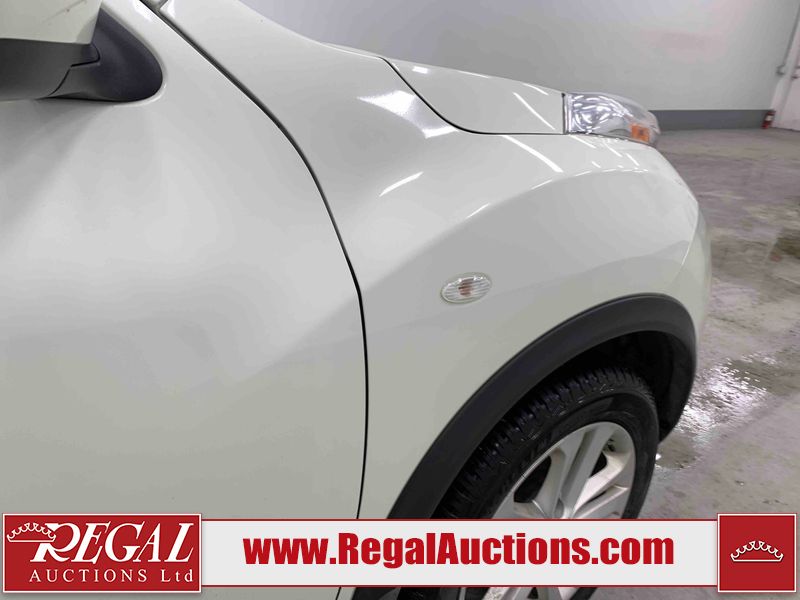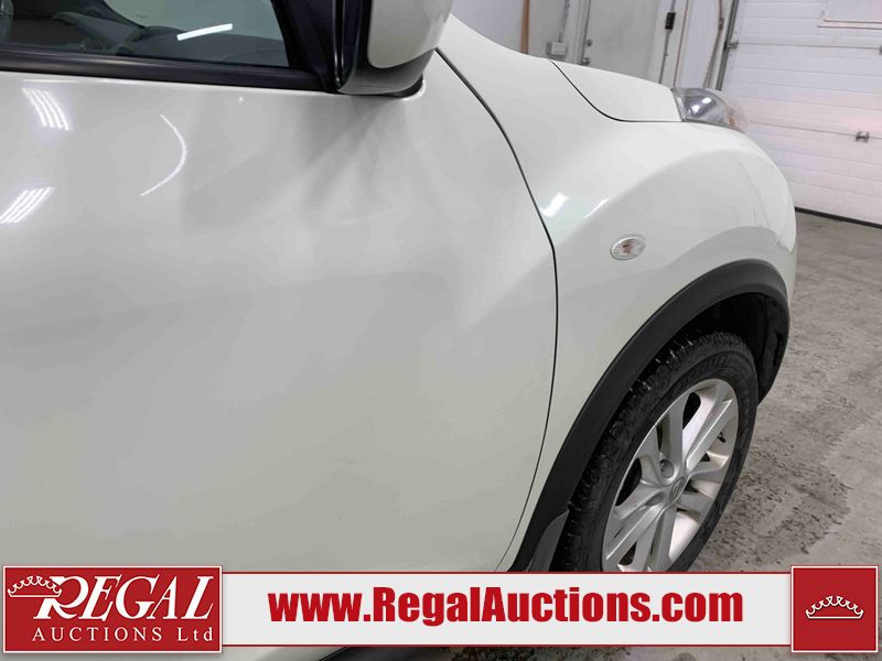This 2012 NISSAN JUKE SL 4D UTILITY AT is powered by a 1.6L 4 cylinder gasoline engine and an automatic transmission. It is equipped with four wheel drive. The SUV has seats for 5 people. The mileage is average considering the SUV's age. The vehicle has high value options including leather upholstery, power seats, heated seats, navigation, and a backup camera. The body looks to be in fair condition overall. There are chips on the front bumper, hood, roof, and left front door. There are minimal scratches on the front bumper, hood, and roof. There is incidental hail on the hood and right rear fender. There is rust on the roof. There are very minor chips in many areas around the body. There are very minor scratches in many areas around the body. The fog lights are broken. The interior looks to be in good condition overall. The driver's seat is torn. The windshield is cracked. All of the tires have lots of tread remaining. This SUV is being sold by an automotive broker. Regal Auctions Ltd. makes no guarantee or warranty, either express or implied, with respect to the data provided in this report. The information has been provided from the consignor and from sources generally believed to be reliable, however the accuracy of this information cannot be guaranteed by Regal Auctions.