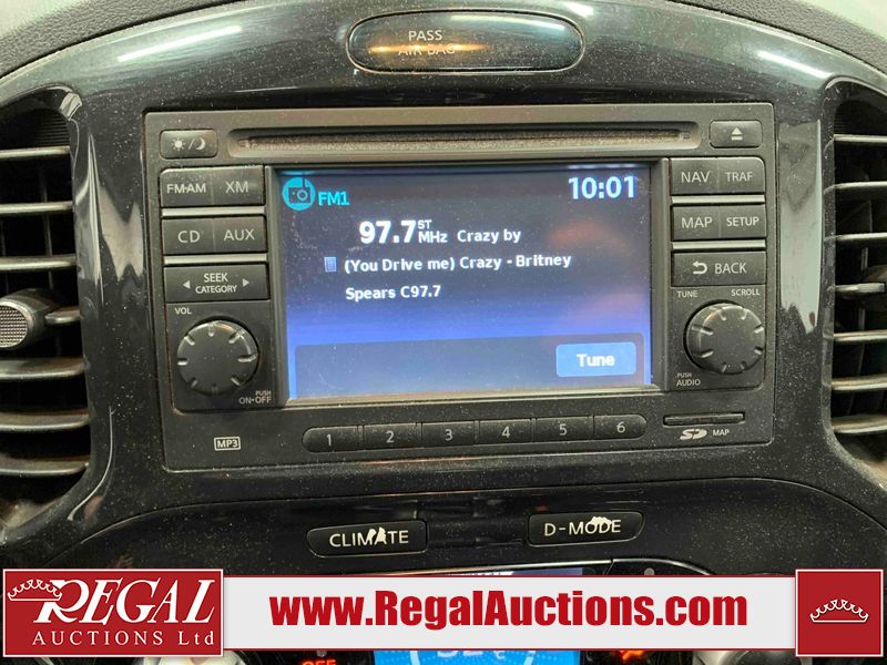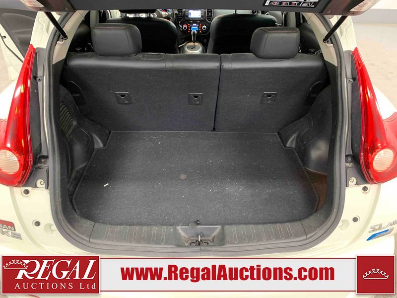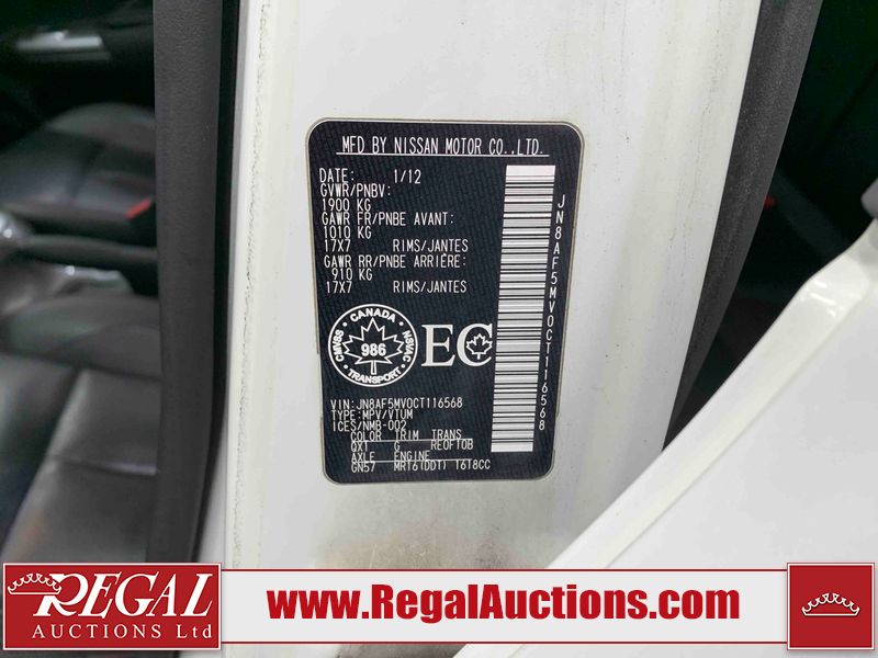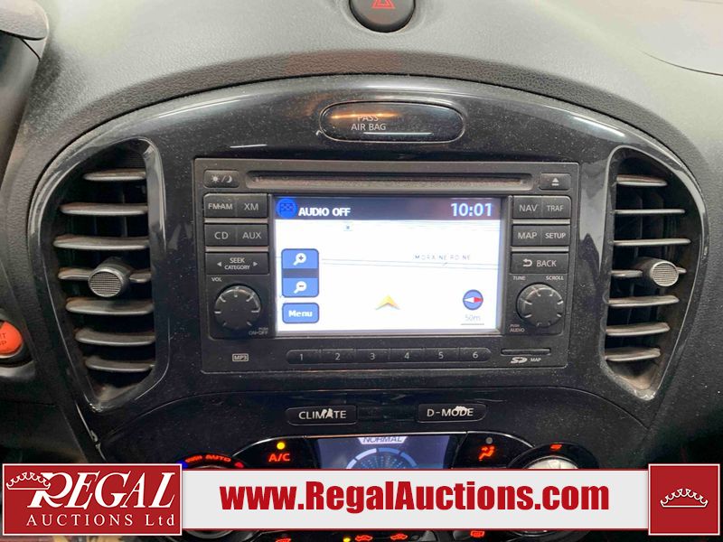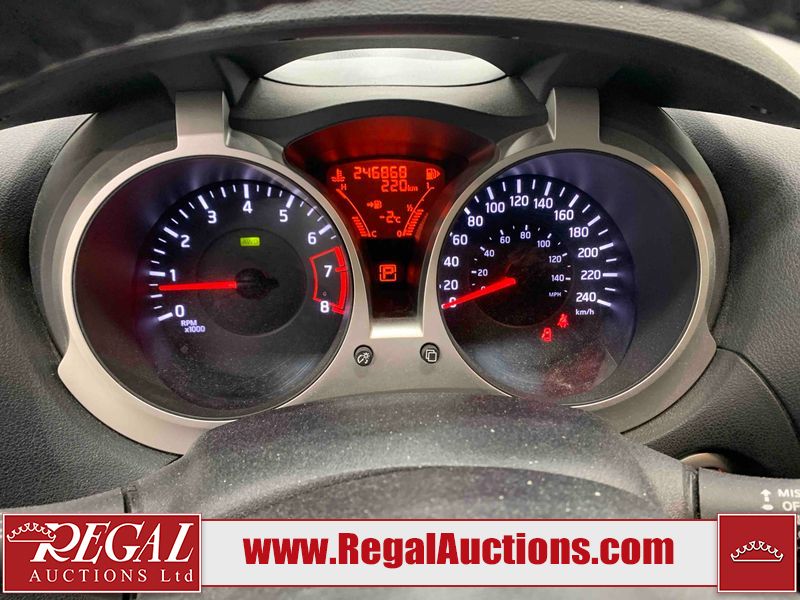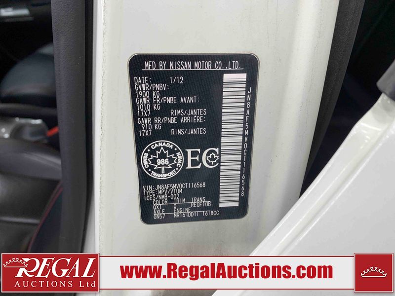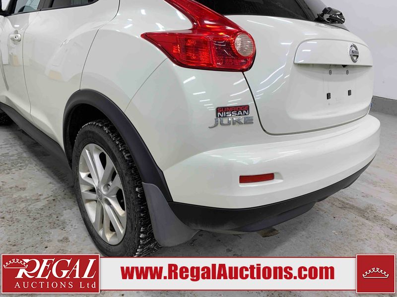 This 2012 NISSAN JUKE SL 4D UTILITY AT is powered by a 1.6L 4 cylinder gasoline engine and an automatic transmission. It is equipped with four wheel drive. The SUV has seats for 5 people. The mileage is average considering the SUV's age. The vehicle has high value options including leather upholstery, power seats, heated seats, navigation, and a backup camera. The body looks to be in fair condition overall. There are chips on the front bumper, hood, roof, and left front door. There are minimal scratches on the front bumper, hood, and roof. There is incidental hail on the hood and right rear fender. There is rust on the roof. There are very minor chips in many areas around the body. There are very minor scratches in many areas around the body. The fog lights are broken. The interior looks to be in good condition overall. The driver's seat is torn. The windshield is cracked. All of the tires have lots of tread remaining. This SUV is being sold by an automotive broker. Regal Auctions Ltd. makes no guarantee or warranty, either express or implied, with respect to the data provided in this report. The information has been provided from the consignor and from sources generally believed to be reliable, however the accuracy of this information cannot be guaranteed by Regal Auctions.