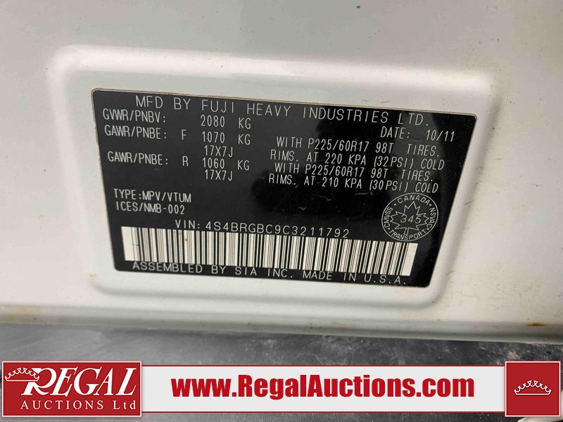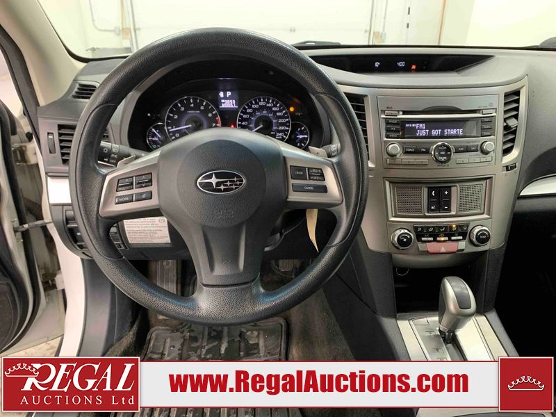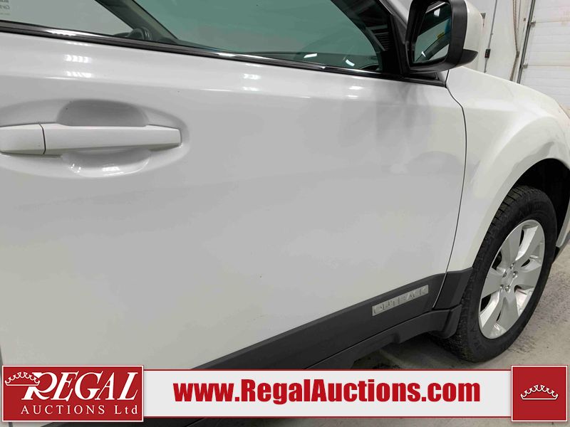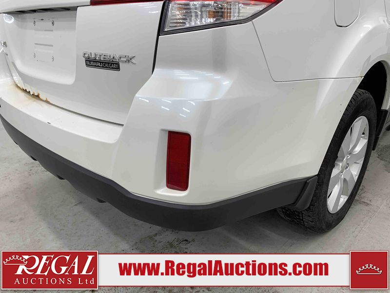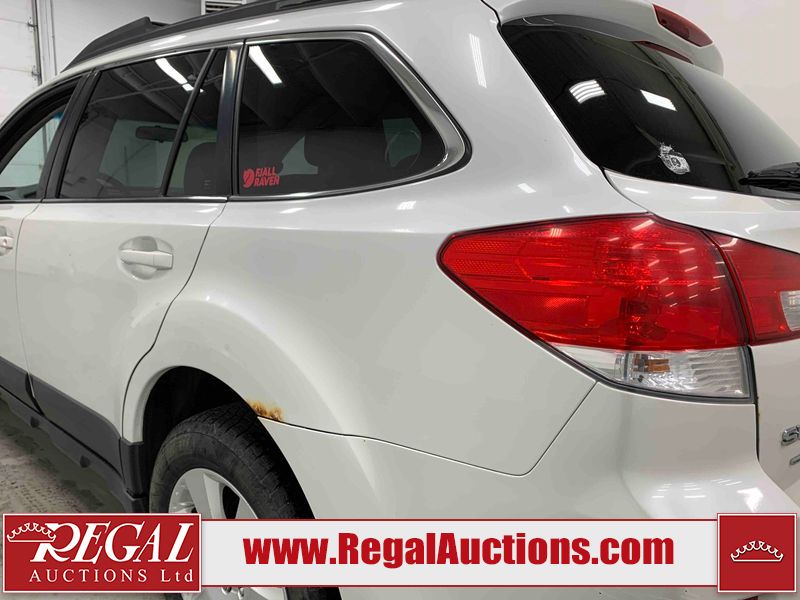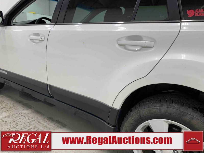 This 2012 SUBARU OUTBACK 4D WAGON is powered by a 2.5L 4-cylinder gasoline engine and an automatic transmission. It is equipped with all-wheel drive. The SUV has seats for 5 people. The SUV has high mileage for its age. The vehicle has high value options including power seats, heated seats, navigation, and a backup camera. The body looks to be in rough condition overall. The rear bumper is cracked. There is extensive hail on the right rear fender, right rear door, right front door, and right front fender. There is some rust on the roof. There is conspicuous hail on the roof. There are chips on the front bumper, hood, roof, left rear door, left rear fender, rear bumper, and rear door. There is incidental rust on the hood, left front fender, left rear door, left rear fender, rear door, and right rear fender. There are scratches on the left rear fender, rear bumper, rear door, and right rear fender. There is hail on the left rear fender. There is paint peeling on the rear door. There are very minor scratches in many areas around the body. There are very minor chips in many areas around the body. The interior looks to be in good condition overall. The dashboard is worn. The windshield is cracked. All of the tires have lots of tread remaining. This SUV is being sold by a franchise dealership. The vehicle will be sold with the following declarations: Dealership Trade-In (See Footnote 1) and Hail Damage (See Footnote 2). Footnotes: 1) This vehicle is being sold on behalf of a franchise dealership. Franchise Dealerships are automotive sales companies who are directly connected to an automotive manufacturer like Ford, Tesla, Honda, BMW, or similar. 2) This vehicle shows signs of damage from a hail storm. Hail damage is not always clearly visible in photographs. Regal Auctions Ltd. makes no guarantee or warranty, either express or implied, with respect to the data provided in this report. The information has been provided from the consignor and from sources generally believed to be reliable, however the accuracy of this information cannot be guaranteed by Regal Auctions.