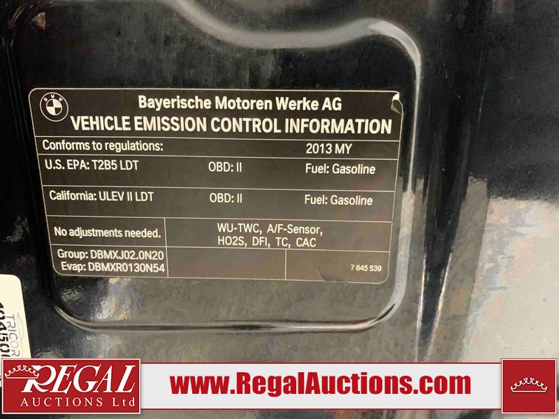 This 2013 BMW X3 4D UTILITY is powered by a V6 gasoline engine and an automatic transmission. It is equipped with all-wheel drive. The SUV has seats for 5 people. The SUV has low mileage for its age. The vehicle has high-value options including leather upholstery, power seats, heated seats, navigation, a backup camera, and a power liftgate. The Airbag light is on. The body looks to be in fair condition overall. There are incidental chips on the front bumper and rear bumper. There are minimal scratches on the front bumper, hood, roof, rear bumper, and rear door. There is dent damage on the hood and rear door. There are very minor chips in many areas around the body. There are very minor scratches in many areas around the body. The interior looks to be in good condition overall. The driver seat is worn. The windshield looks to be in good condition. All of the tires have lots of tread remaining. This SUV is being sold by a franchise dealership. The vehicle will be sold with the following declarations: Auctioneer Announcement "*AIRBAG LIGHT ON* " and Dealership Trade-In (See Footnote 1). Footnotes: 1) This vehicle is being sold on behalf of a franchise dealership. Franchise Dealerships are automotive sales companies who are directly connected to an automotive manufacturer like Ford, Tesla, Honda, BMW, or similar. Regal Auctions Ltd. makes no guarantee or warranty, either express or implied, with respect to the data provided in this report. The information has been provided from the consignor and from sources generally believed to be reliable, however the accuracy of this information cannot be guaranteed by Regal Auctions.