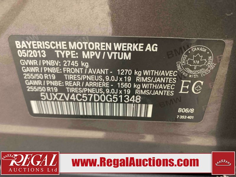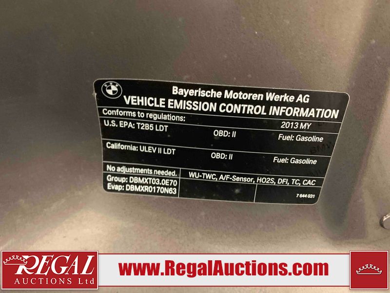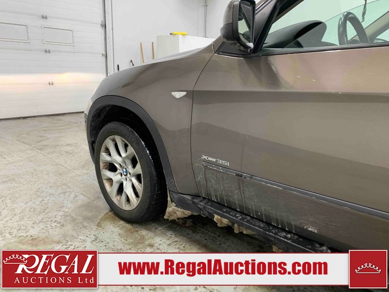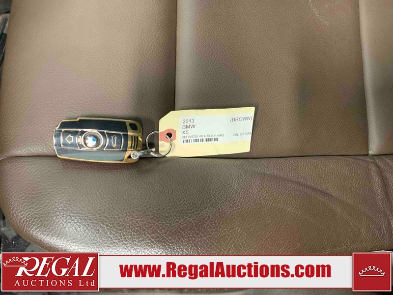 This 2013 BMW X5 XDRIVE35I 4D UTILITY AWD is powered by a 300HP 3.0L 6 cylinder gasoline engine and an automatic transmission. It is equipped with four wheel drive. The SUV has seats for 5 people. The SUV has low mileage for its age. The vehicle has high value options including a sunroof, leather upholstery, power seats, heated seats, navigation, a backup camera, and a power lift gate. The body looks to be in fair condition overall. There are severe scratches on the front bumper. There are chips on the front bumper, hood, roof, and rear bumper. There are incidental scratches on the hood, roof, left front fender, left front door, left rear door, left rear fender, rear bumper, and right rear door. There are very minor chips in many areas around the body. There are very minor scratches in some areas around the body. The interior looks to be in good condition overall. The windshield looks to be in good condition. All of the tires have lots of tread remaining. This SUV is being sold by an automotive broker. Regal Auctions Ltd. makes no guarantee or warranty, either express or implied, with respect to the data provided in this report. The information has been provided from the consignor and from sources generally believed to be reliable, however the accuracy of this information cannot be guaranteed by Regal Auctions.