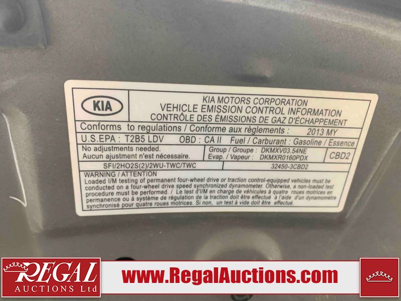 This 2013 KIA SORENTO EX V6 LUXURY 4D UTILITY AWD 3.5L is powered by a 6 cylinder gasoline engine and an automatic transmission. It is equipped with four wheel drive. The SUV has seats for 5 people. The SUV has low mileage for its age. The vehicle has high value options including leather upholstery, power seats, heated seats, and a backup camera. The Airbag and Service 4wd lights are on. The vehicle has some mechanical problems. The battery is dead. The vehicle requires a boost to start and may require a booster pack in order to stay running. The back up camera is inoperable. The body looks to be in rough condition overall. There is conspicuous rust on the roof and rear door. There are incidental chips on the front bumper, grille, and hood. There are scratches on the left front fender, left front door, left rear fender, rear bumper, right rear fender, right rear door, right front door, and right front fender. There is dent damage on the left front door, left rear door, left rear fender, right rear fender, and right front fender. There are very minor scratches in many areas around the body. There are very minor chips in many areas around the body. There is very minor dent damage in a few areas around the body. The right tail light is broken. The interior looks to be in fair condition overall. The driver's seat and rear seats are worn. The passenger seat is torn. The driver seat controls are unattached. The windshield is cracked. All of the tires have lots of tread remaining.