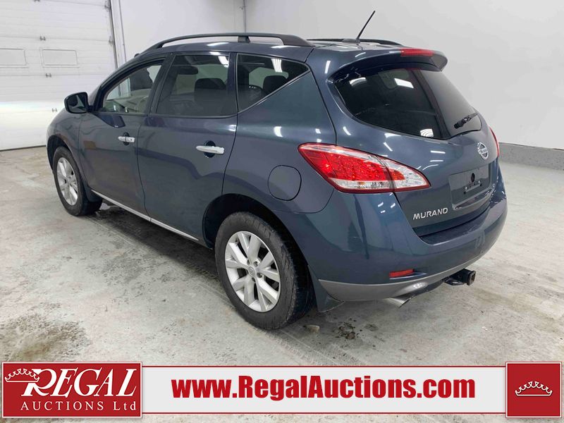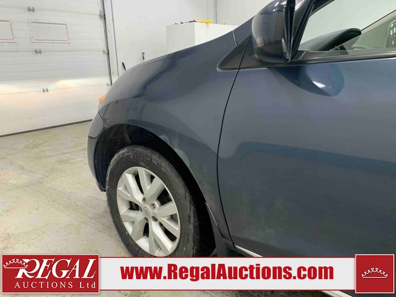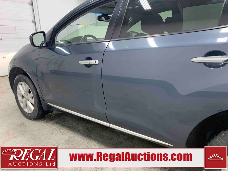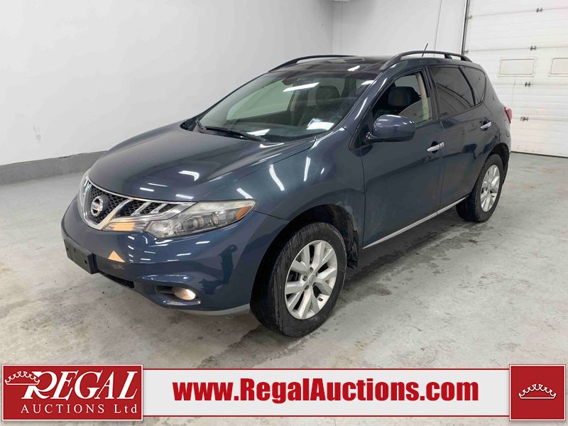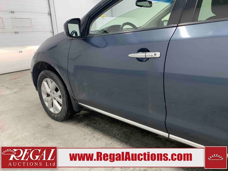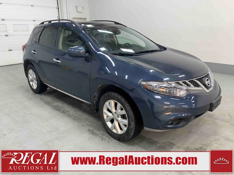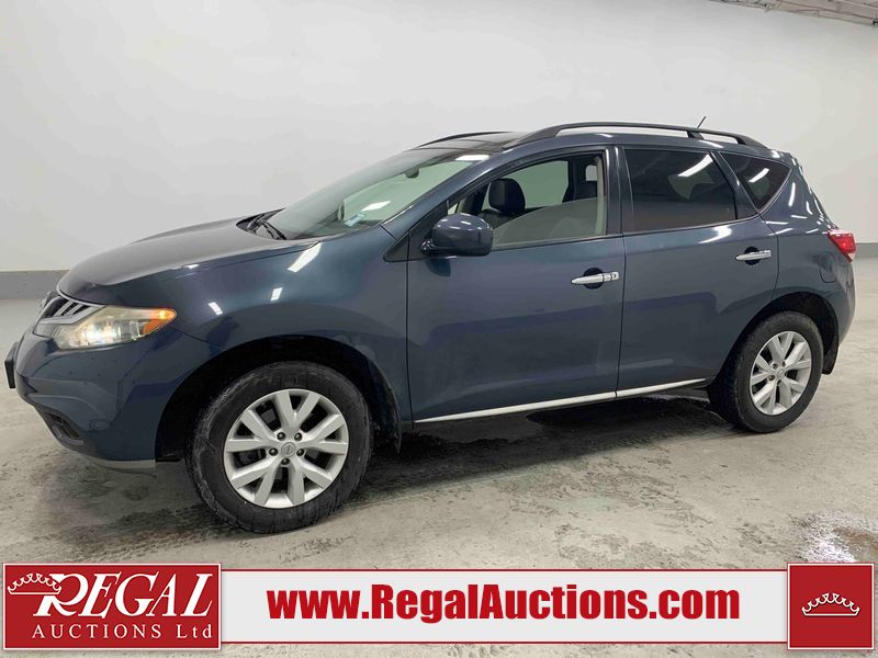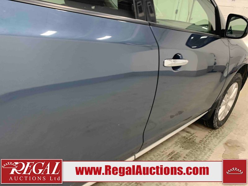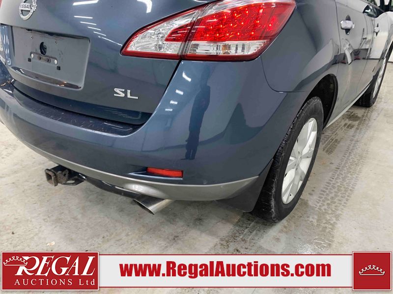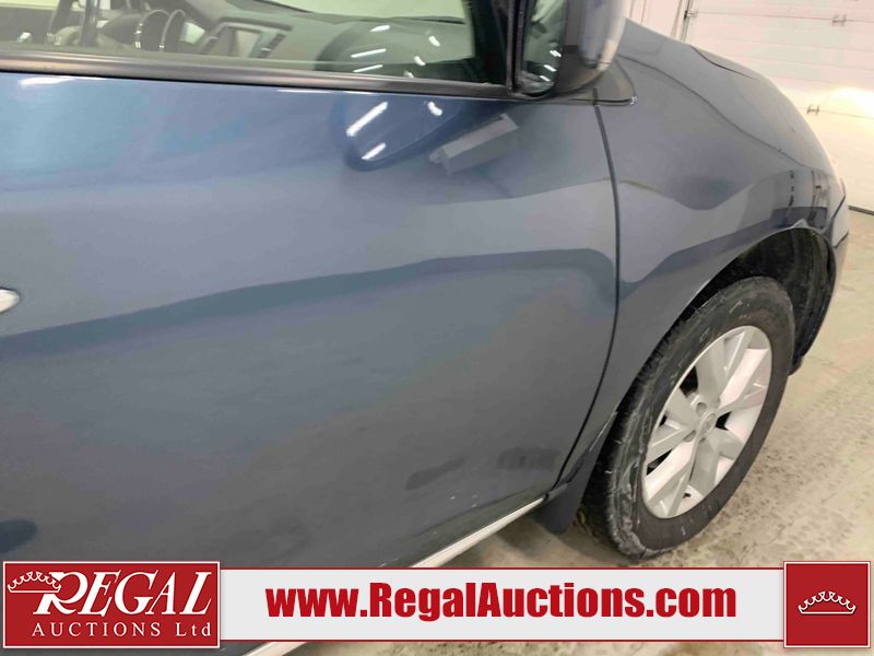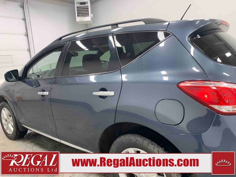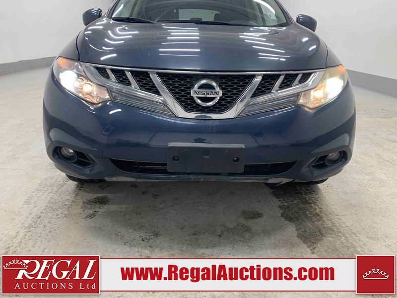 This 2013 NISSAN MURANO SL 4D UTILITY is powered by a 3.5L V6 gasoline engine and an automatic transmission. It is equipped with all-wheel drive. The SUV has seats for 5 people. The SUV has low mileage for its age. The vehicle has high-value options including leather upholstery, power seats, heated seats, a backup camera, and a power lift gate. The body looks to be in fair condition overall. There are scratches on the front bumper, hood, left front fender, left front door, left rear door, left rear fender, rear bumper, rear door, right rear fender, right rear door, right front door, and right front fender. There is slight dent damage on the roof, left rear fender, and right rear fender. There are incidental chips on the rear bumper. There are very minor chips in many areas around the body. There are very minor scratches on the roof. There is very minor dent damage on the left rear door. The front bumper is misaligned. The interior looks to be in good condition overall. The windshield looks to be in good condition. The front tires and the passenger side rear tire are all nearly bald and should be replaced. This SUV is being sold by an automotive broker. The vehicle will be sold with the following declarations: Claims Total $3000 - $4999 (See Footnote 1), Out of Province - BC (See Footnote 2), and Out of Province - AB OVERRIDE (See Footnote 3). Footnotes: 1) The vehicle's total recorded insurance claims history is between $3,000 - $4,999. This is the amount of money that was paid out by an insurance company for repairs to cover claims against the vehicle's insurance policy. This information is provided by CarFax. 2) The vehicle's last registered jurisdiction is British Columbia. The purchaser must have the vehicle undergo and pass an Out of Province inspection before it can be registered in Alberta. 3) Out of province inspection for registering the vehicle in Alberta has been completed. Regal Auctions Ltd. makes no guarantee or warranty, either express or implied, with respect to the data provided in this report. The information has been provided from the consignor and from sources generally believed to be reliable, however the accuracy of this information cannot be guaranteed by Regal Auctions.