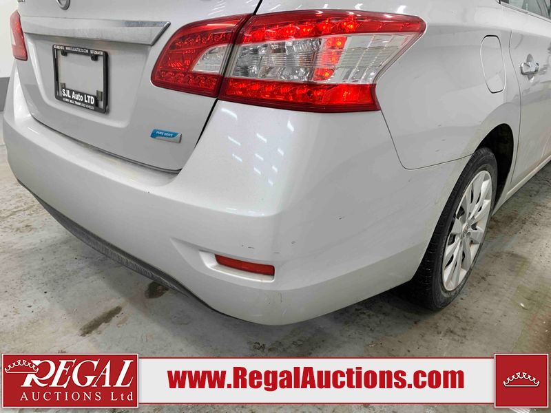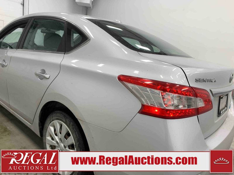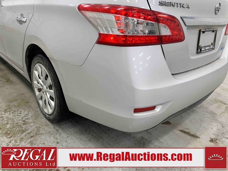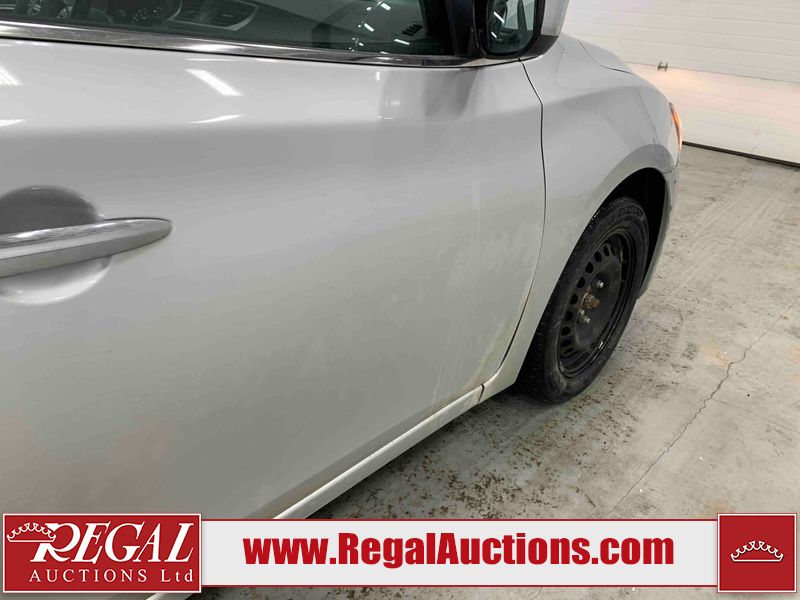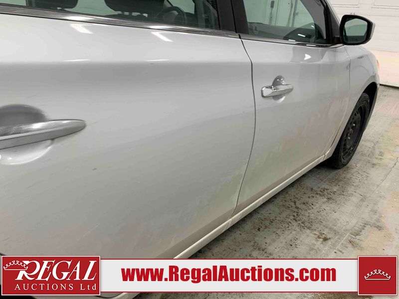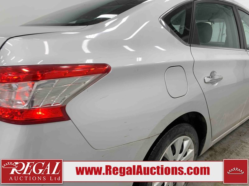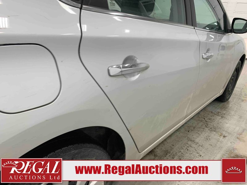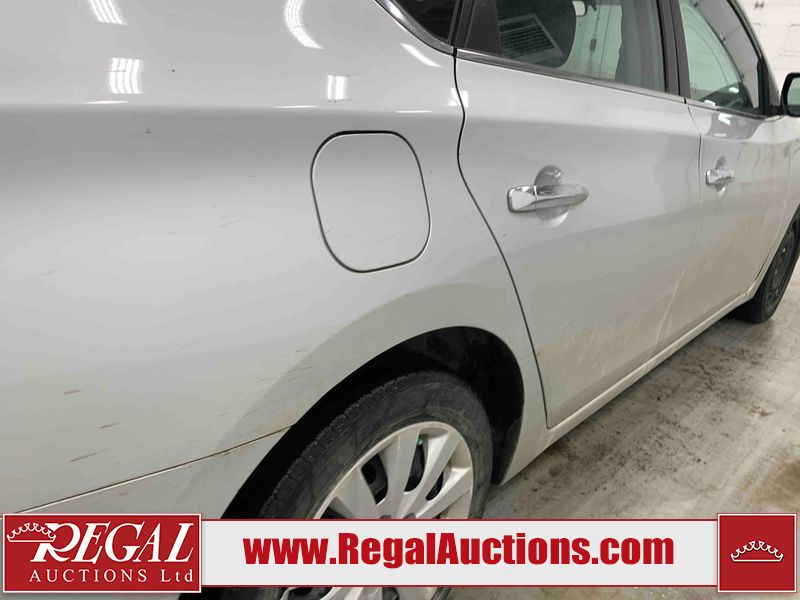 This 2013 NISSAN SENTRA 4D SEDAN is powered by a 1.8L 4 cylinder gasoline engine and an automatic transmission. The SUV has seats for 5 people. The SUV has low mileage for its age. The body looks to be in fair condition overall. There are incidental chips on the front bumper, hood, and rear bumper. There are slight scratches on the front bumper, hood, roof, left front fender, left front door, left rear door, left rear fender, rear bumper, rear door, right rear fender, right rear door, right front door, and right front fender. There is slight paint peeling on the front bumper. There is slight dent damage on the hood, left front fender, and right rear fender. There are very minor chips in many areas around the body. The interior looks to be in fair condition overall. There are moderate stained on the driver's seat and passenger seat. The carpet is dirty. The windshield is chipped. The driver's side rear tire is worn. All of the other tires have lots of tread remaining. This SUV is being sold by a private individual. Regal Auctions Ltd. makes no guarantee or warranty, either express or implied, with respect to the data provided in this report. The information has been provided from the consignor and from sources generally believed to be reliable, however the accuracy of this information cannot be guaranteed by Regal Auctions.
