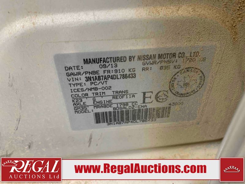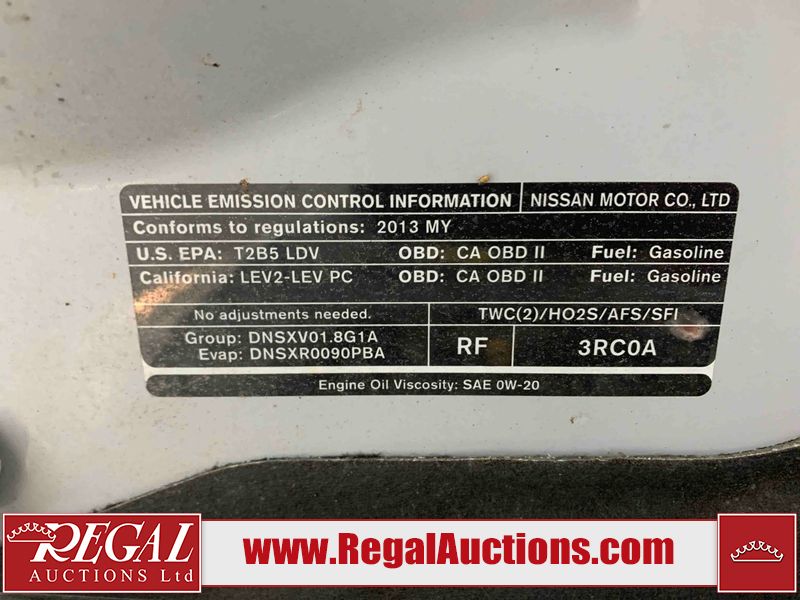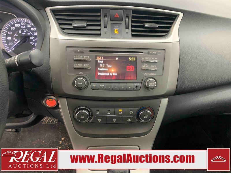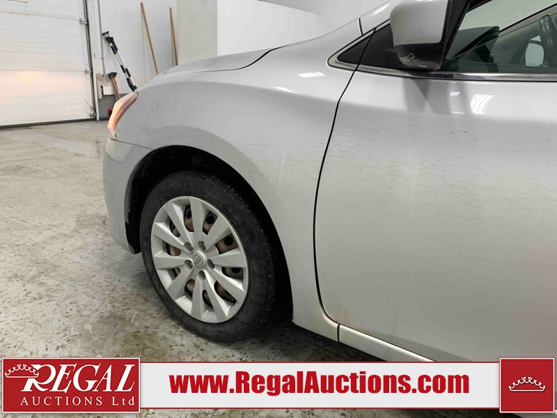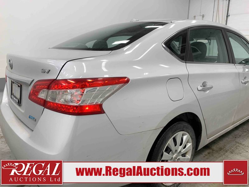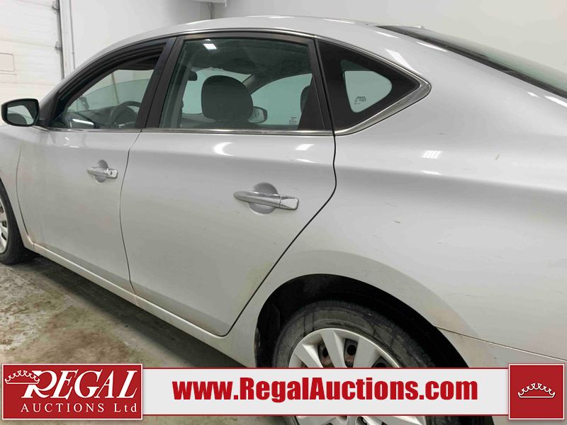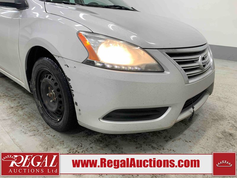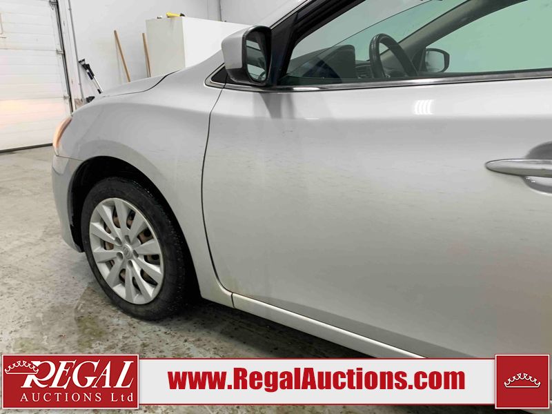 This 2013 NISSAN SENTRA 4D SEDAN is powered by a 1.8L 4 cylinder gasoline engine and an automatic transmission. The SUV has seats for 5 people. The SUV has low mileage for its age. The body looks to be in fair condition overall. There are incidental chips on the front bumper, hood, and rear bumper. There are slight scratches on the front bumper, hood, roof, left front fender, left front door, left rear door, left rear fender, rear bumper, rear door, right rear fender, right rear door, right front door, and right front fender. There is slight paint peeling on the front bumper. There is slight dent damage on the hood, left front fender, and right rear fender. There are very minor chips in many areas around the body. The interior looks to be in fair condition overall. There are moderate stained on the driver's seat and passenger seat. The carpet is dirty. The windshield is chipped. The driver's side rear tire is worn. All of the other tires have lots of tread remaining. This SUV is being sold by a private individual. Regal Auctions Ltd. makes no guarantee or warranty, either express or implied, with respect to the data provided in this report. The information has been provided from the consignor and from sources generally believed to be reliable, however the accuracy of this information cannot be guaranteed by Regal Auctions.