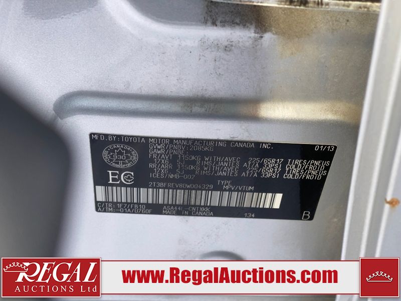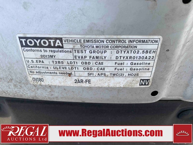 This 2013 TOYOTA RAV4 4D UTILITY is powered by a 2.5L 4-cylinder gasoline engine and an automatic transmission. It is equipped with all-wheel drive. The SUV has seats for 5 people. The mileage is average considering the SUV's age. The vehicle has high-value options including heated seats and a backup camera. The Check Engine, Oil Pressure, Oil Temprature, Battery, Power Steering, and Traction Control lights are on The vehicle has some mechanical problems. The engine doesn't start and the vehicle is not drivable. It will have to be towed. The condition of the engine, transmission, and drivetrain cannot be determined. Diagnostics will need to be performed to determine the exact problems. (See Footnote 1) The body looks to be in fair condition overall. There are incidental chips on the front bumper, grille, hood, roof, left front fender, left front door, left rear door, left rear fender, rear door, right rear fender, right rear door, right front door, and right front fender. There are minor scratches on the front bumper, rear door, right rear fender, right rear door, and right front door. There is paint peeling on the roof. There is dent damage on the right rear door. There are very minor scratches in many areas around the body. There is very minor dent damage on the left rear door. There are very minor chips on the rear bumper. This unit is dirty, not all damages can be determined. The interior looks to be in good condition overall. The windshield looks to be in good condition. Both rear tires and the passenger side front tire are worn. The driver's side front tire has lots of tread remaining. This SUV is being sold by a franchise dealership. The vehicle will be sold with the following declarations: Dealership Trade-In (See Footnote 2). Footnotes: 1) We've identified some mechanical problems with the vehicle. However, the vehicle has not undergone a mechanical inspection and our findings are not to be considered a complete evaluation of the vehicle's mechanical condition. Review our Buyer Protection Policy to see how Regal Auctions protects you from undisclosed mechanical problems. 2) This vehicle is being sold on behalf of a franchise dealership. Franchise Dealerships are automotive sales companies who are directly connected to an automotive manufacturer like Ford, Tesla, Honda, BMW, or similar. Regal Auctions Ltd. makes no guarantee or warranty, either express or implied, with respect to the data provided in this report. The information has been provided from the consignor and from sources generally believed to be reliable, however the accuracy of this information cannot be guaranteed by Regal Auctions.