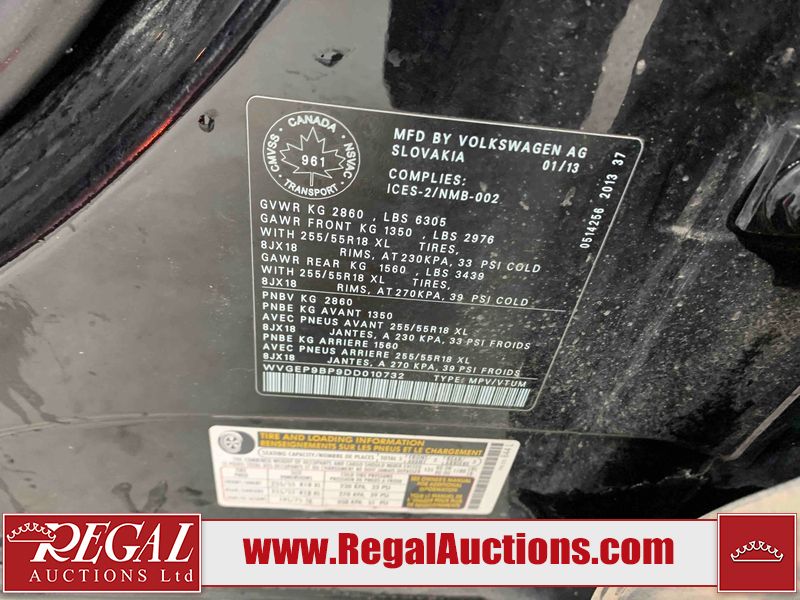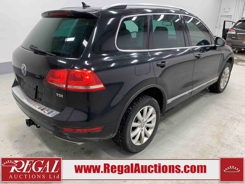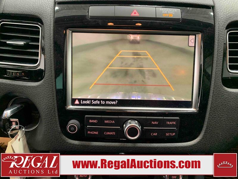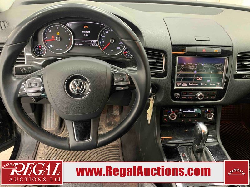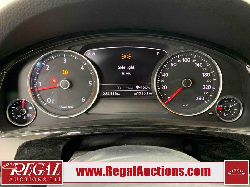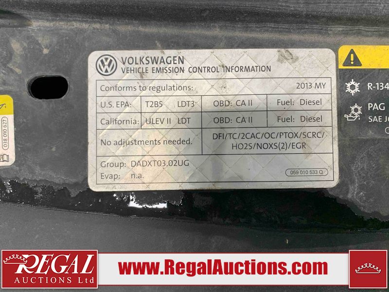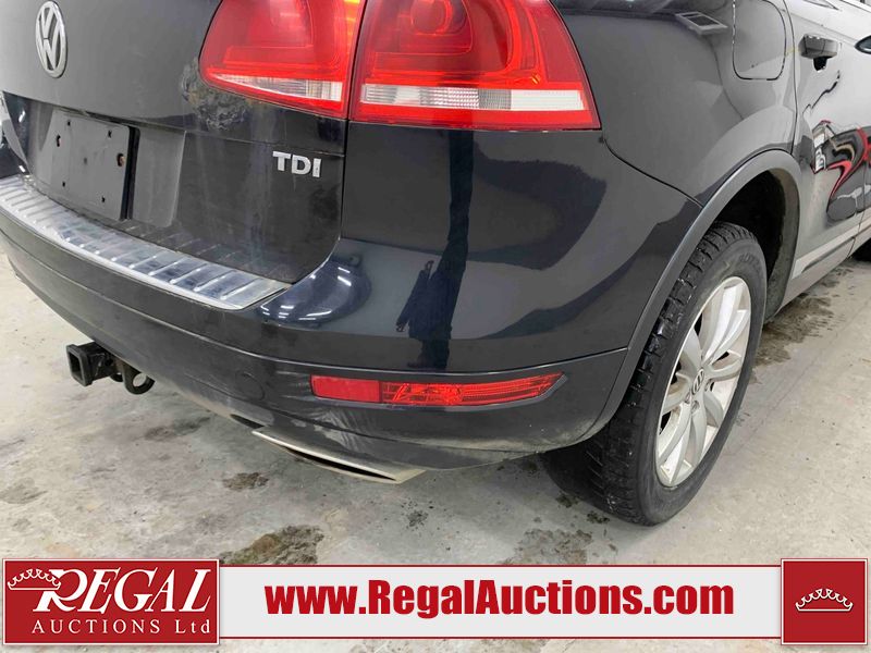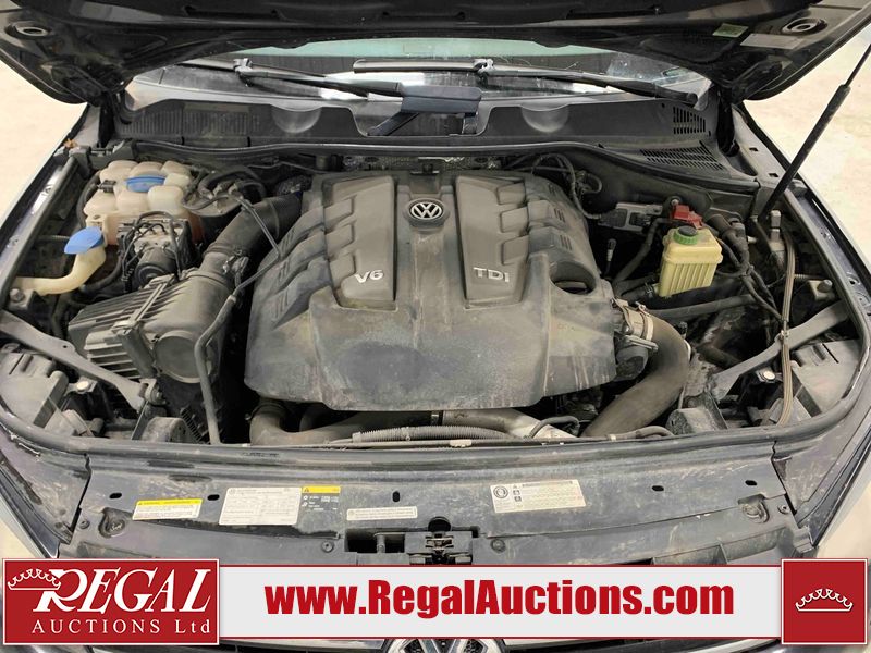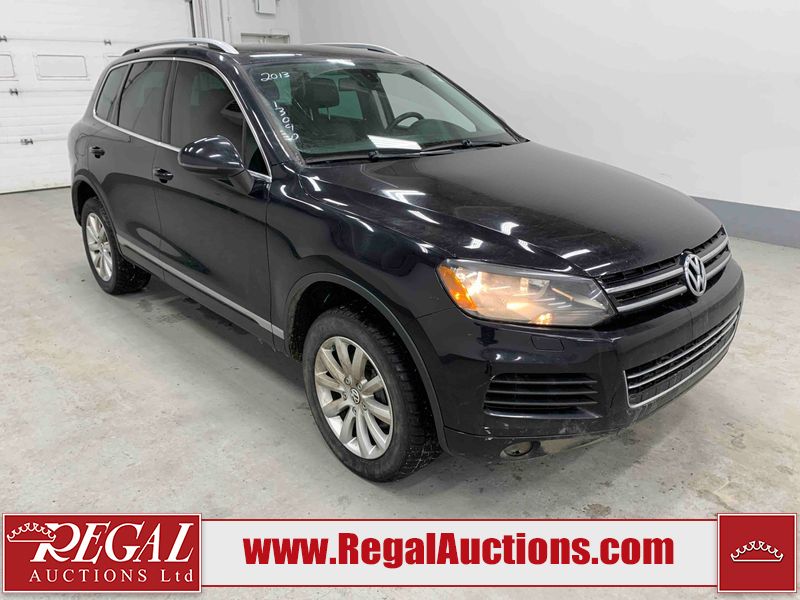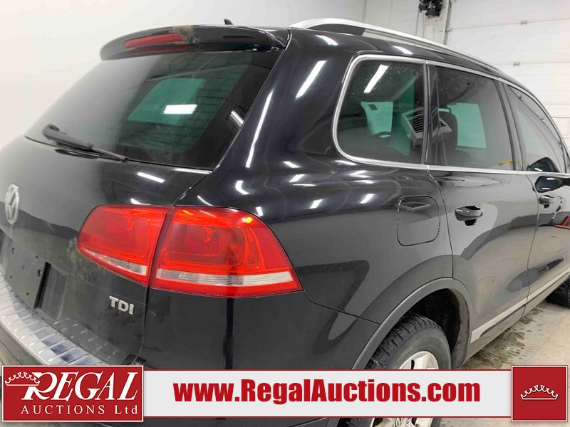 This 2013 VOLKSWAGEN TOUAREG HIGHLINE 2D SPORT UTILITY is powered by a 240HP 2.9L 6CYL 6 cylinder diesel engine and an automatic transmission. It is equipped with four wheel drive. The SUV has seats for 5 people. The SUV has high mileage for its age. The vehicle has high value options including leather upholstery, power seats, heated seats, navigation, and a backup camera. The Tire Pressure light is on. The body looks to be in fair condition overall. There is some rust on the rear door. There are chips on the front bumper, hood, roof, and rear door. There are scratches on the front bumper and left front fender. There is dent damage on the left front door, right rear door, and right front fender. There are very minor chips in many areas around the body. There are very minor scratches in many areas around the body. The fog lights are broken. The interior looks to be in good condition overall. The windshield looks to be in good condition. The rear tires and the driver's side front tire are all nearly bald and should be replaced. The passenger side front tire is worn. This SUV is being sold by an automotive broker. Regal Auctions Ltd. makes no guarantee or warranty, either express or implied, with respect to the data provided in this report. The information has been provided from the consignor and from sources generally believed to be reliable, however the accuracy of this information cannot be guaranteed by Regal Auctions.