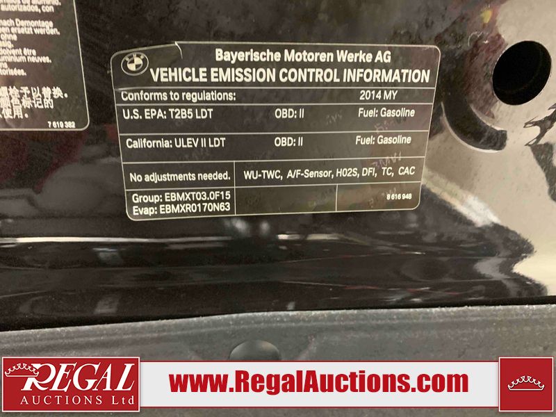This 2014 BMW X5 X Drive 35I 4D UTILITY AWD is powered by a 3.0 liter 6 cylinder gasoline engine and an automatic transmission. It is equipped with four wheel drive. The SUV has seats for 5 people. The SUV has low mileage for its age. The vehicle has high value options including a sunroof, leather upholstery, power seats, heated seats, navigation, and a backup camera. The body looks to be in good condition overall. There are minimal scratches on the left front fender. There are very minor chips in many areas around the body. There are very minor scratches in many areas around the body. The interior looks to be in good condition overall. The windshield looks to be in good condition. The driver's side front tire is worn. All of the other tires have lots of tread remaining. This SUV is being sold by an automotive broker. The vehicle will be sold with the following declarations: Out of Province (See Footnote 1), Out of Province - AB OVERRIDE (See Footnote 2), Out of Province - BC (See Footnote 3), and Claims Total $3000 - $4999 (See Footnote 4). Footnotes: 1) The vehicle's last jurisdiction of registration is not Alberta. The purchaser must have the vehicle undergo and pass an Out of Province inspection before it can be registered in Alberta. 2) Out of province inspection for registering the vehicle in Alberta has been completed. 3) The vehicle's last registered jurisdiction is British Columbia. The purchaser must have the vehicle undergo and pass an Out of Province inspection before it can be registered in Alberta. 4) The vehicle's total recorded insurance claims history is between $3,000 - $4,999. This is the amount of money that was paid out by an insurance company for repairs to cover claims against the vehicle's insurance policy. This information is provided by CarFax. Regal Auctions Ltd. makes no guarantee or warranty, either express or implied, with respect to the data provided in this report. The information has been provided from the consignor and from sources generally believed to be reliable, however the accuracy of this information cannot be guaranteed by Regal Auctions.