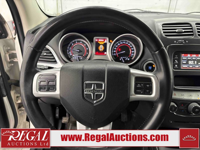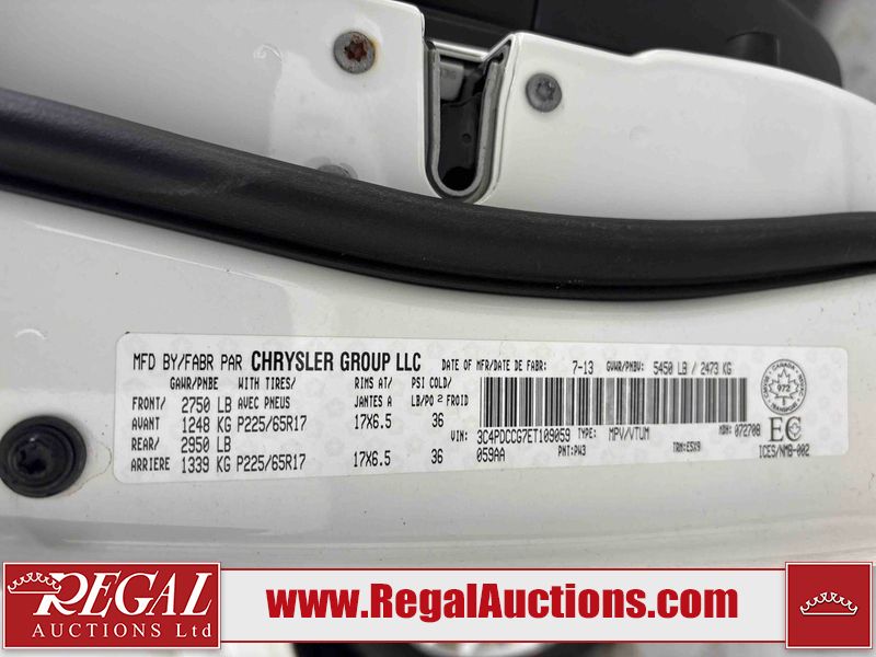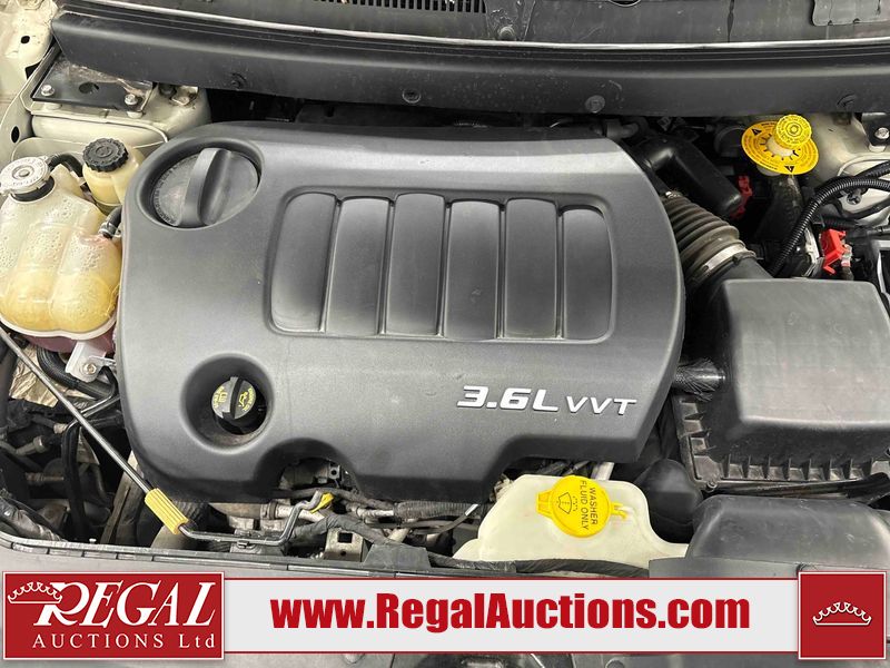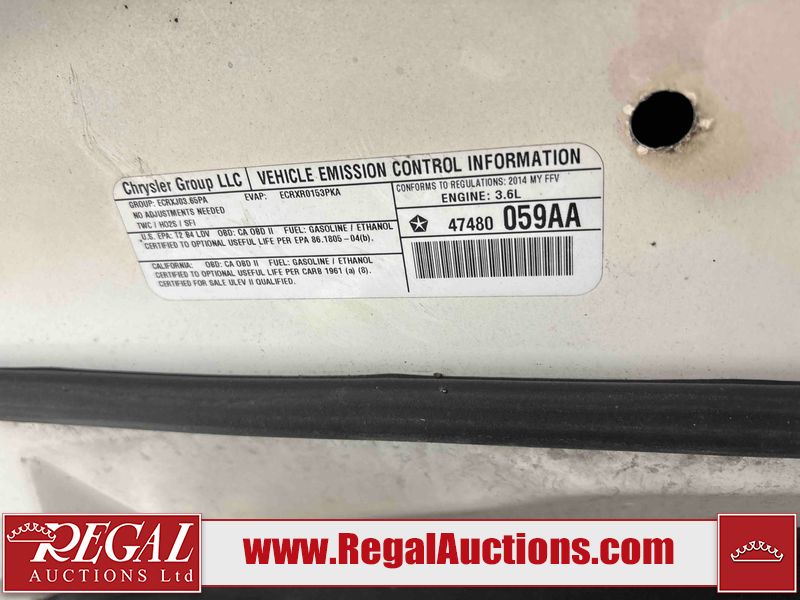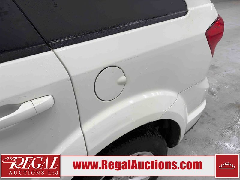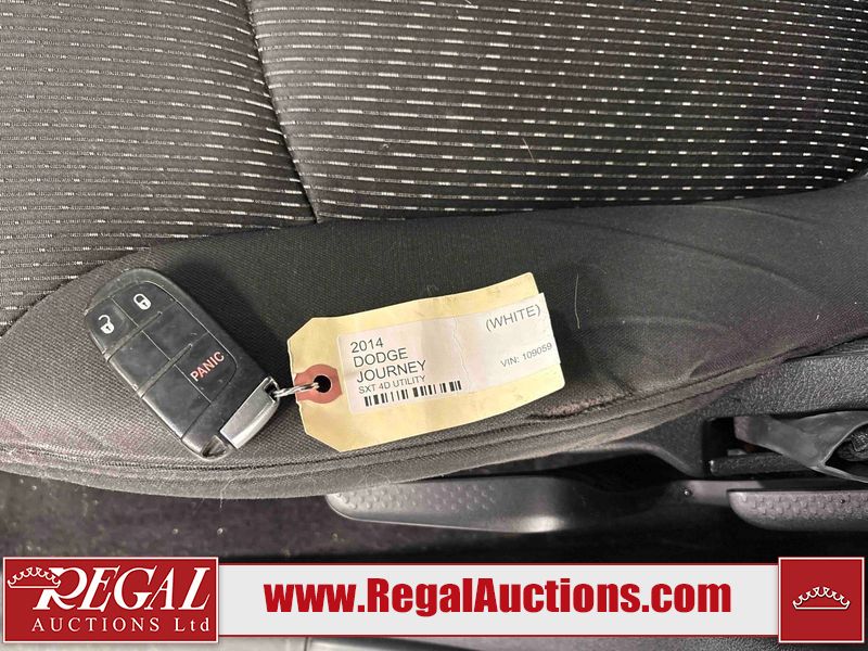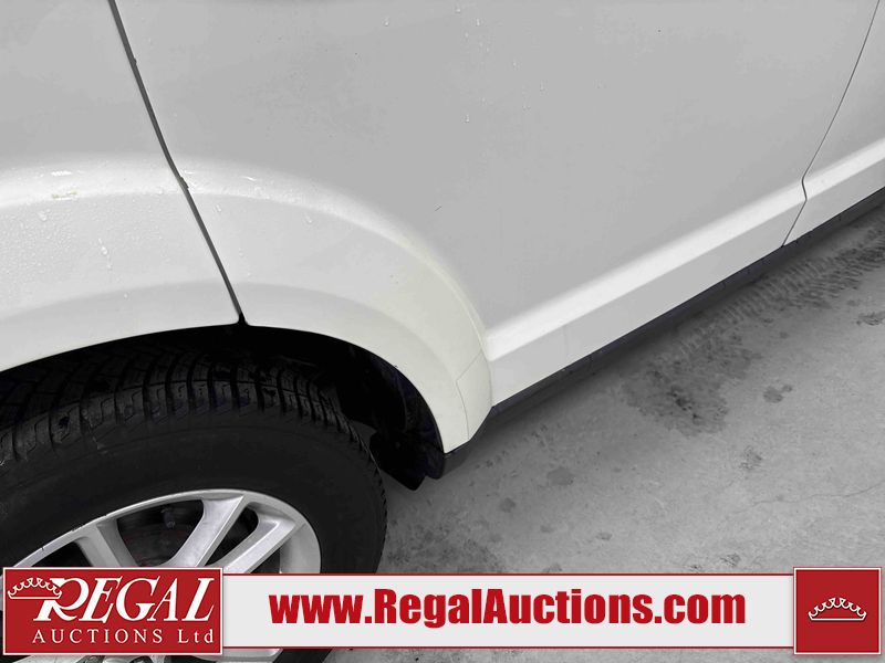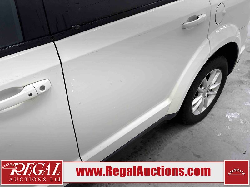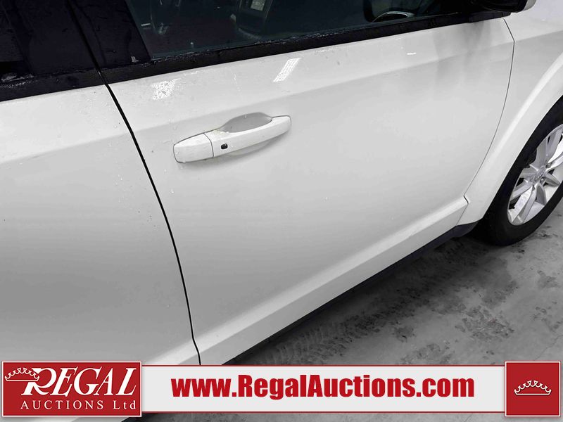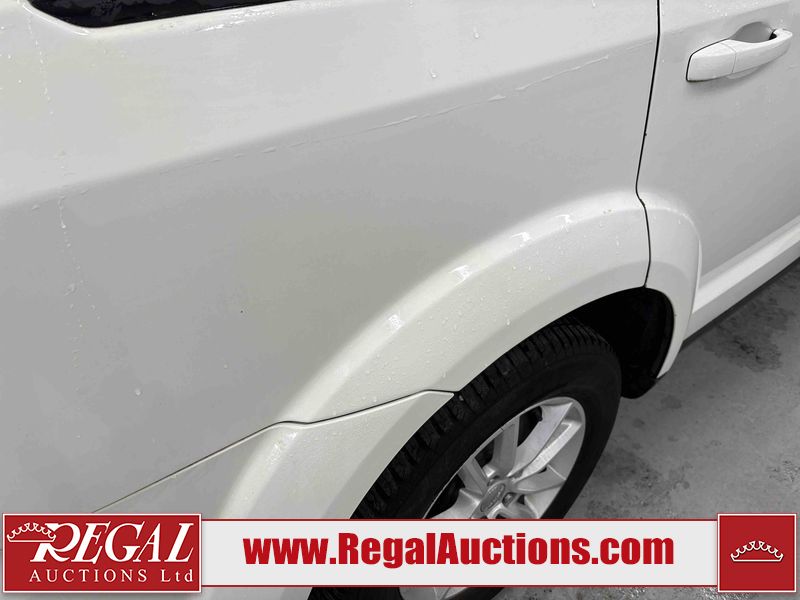 This 2014 DODGE JOURNEY SXT 4D UTILITY is powered by a 3.6L V6 gasoline engine and an automatic transmission. It is a two-wheel drive model. The SUV has seats for 7 people. The SUV has low mileage for its age. The Tire Pressure light is on. The body looks to be in good condition overall. There is rust on the left rear fender and right rear door. The left rear fender has been repainted poorly. There are scratches on the rear bumper. There are very minor chips in many areas around the body. There are very minor scratches in many areas around the body. The interior looks to be in good condition overall. The driver's seat is torn. The windshield looks to be in good condition. The passenger side front tire is nearly bald and should be replaced. The driver's side front tire is worn. The rear tires have lots of tread remaining. This SUV is being sold by an automotive broker. The vehicle will be sold with the following declarations: Claims Total $5000 - $9999 (See Footnote 1), Out of Province - BC (See Footnote 2), and Out of Province - AB OVERRIDE (See Footnote 3). Footnotes: 1) The vehicle's total recorded insurance claims history is between $5,000 - $9,999. This is the amount of money that was paid out by an insurance company for repairs to cover claims against the vehicle's insurance policy. This information is provided by CarFax. 2) The vehicle's last registered jurisdiction is British Columbia. The purchaser must have the vehicle undergo and pass an Out of Province inspection before it can be registered in Alberta. 3) Out of province inspection for registering the vehicle in Alberta has been completed. Regal Auctions Ltd. makes no guarantee or warranty, either express or implied, with respect to the data provided in this report. The information has been provided from the consignor and from sources generally believed to be reliable, however the accuracy of this information cannot be guaranteed by Regal Auctions.