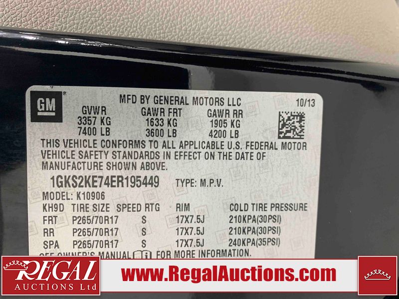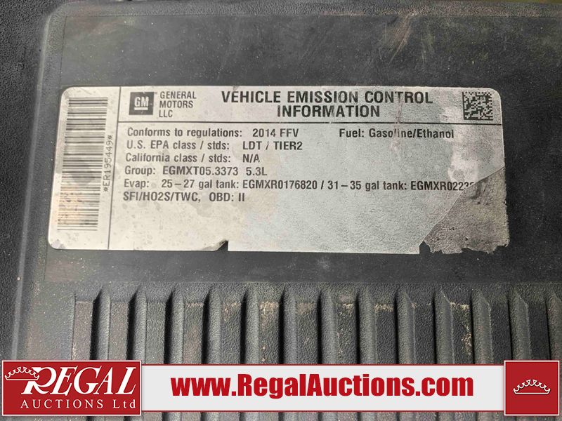This 2014 GMC YUKON XL 4D SPORT UTILITY is powered by a 5.3L V8 gasoline engine and an automatic transmission. It is equipped with four-wheel drive. The SUV has seats for 8 people. The SUV has high mileage for its age. The vehicle has high value options including a sunroof, leather upholstery, power seats, heated seats, a DVD Player, a backup camera, and a power lift gate. The Check Engine and Airbag lights are on. The body looks to be in rough condition overall. There is considerable hail on the hood and roof. There is some chrome peeling on the grille. There is a fair amount of rust on the roof. There are minor chips on the front bumper, hood, roof, left front fender, left front door, left rear door, left rear fender, rear bumper, and right rear fender. There are scratches on the front bumper, hood, roof, left front fender, left front door, left rear door, left rear fender, rear bumper, and right rear fender. There is minimal paint peeling on the front bumper, rear bumper, and right rear fender. There is minimal hail on the left front fender, left front door, left rear door, left rear fender, rear door, right rear fender, right rear door, right front door, and right front fender. There is slight dent damage on the right rear fender. There is incidental rust on the right rear fender and right front fender. There are very minor chips in some areas around the body. There are very minor scratches in some areas around the body. The interior looks to be in fair condition overall. The dashboard, driver's seat, passenger seat, rear seats, and doors are worn. The windshield is chipped. The driver side mirror is broken. Both rear tires and the driver's side front tire are all worn. The passenger side front tire has lots of tread remaining. This SUV is being sold by an automotive broker. The vehicle will be sold with the following declarations: Auctioneer Announcement "*DVD PLAYER INOPERABLE* *AIRBAG LIGHT IS ON*", Claims Total $1000 - $2999 (See Footnote 1), and Hail Damage (See Footnote 2). Footnotes: 1) The vehicle's total recorded insurance claims history is between $1,000 - $2,999. This is the amount of money that was paid out by an insurance company for repairs to cover claims against the vehicle's insurance policy. This information is provided by CarFax. 2) This vehicle shows signs of damage from a hail storm. Hail damage is not always clearly visible in photographs. Regal Auctions Ltd. makes no guarantee or warranty, either express or implied, with respect to the data provided in this report. The information has been provided from the consignor and from sources generally believed to be reliable, however the accuracy of this information cannot be guaranteed by Regal Auctions.