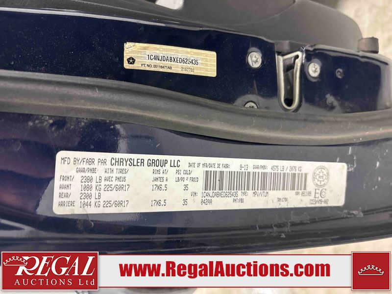 This 2014 JEEP COMPASS SPORT 4D UTILITY is powered by a 2.4L 4-cylinder gasoline engine and an automatic transmission. It is equipped with four-wheel drive. The SUV has seats for 5 people. The mileage is average considering the SUV's age. The vehicle does not have power windows or power locks. The Tire Pressure light is on. The body looks to be in good condition overall. There is rust on the roof and right rear fender. There is dent damage on the right rear fender. There are very minor chips in many areas around the body. There are very minor scratches in many areas around the body. There is very minor dent damage on the rear door. The interior looks to be in good condition overall. The windshield is cracked. All of the tires have lots of tread remaining. This SUV is being sold by an automotive broker. Regal Auctions Ltd. makes no guarantee or warranty, either express or implied, with respect to the data provided in this report. The information has been provided from the consignor and from sources generally believed to be reliable, however the accuracy of this information cannot be guaranteed by Regal Auctions.