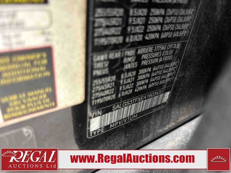 This 2014 LAND ROVER RANGE ROVER 4D UTILITY AWD is powered by a 5.0L V8 gasoline engine and an automatic transmission. It is equipped with all-wheel drive. The SUV has seats for 5 people. The SUV has low mileage for its age. The vehicle has high-value options, including leather upholstery, power seats, navigation, and a backup camera. The vehicle has some mechanical problems. The engine is making an abnormal noise. (See Footnote 1) The body looks to be in good condition overall. The rear door is cracked. There is hail on the hood and roof. There is incidental rust on the right front fender. There are very minor chips in many areas around the body. There are very minor scratches in many areas around the body. The interior looks to be in good condition overall. The windshield is damaged. All of the tires have lots of tread remaining. This SUV is being sold by a franchise dealership. The vehicle will be sold with the following declarations: Claims Total $5000 - $9999 (See Footnote 2), Dealership Trade-In (See Footnote 3), and Mechanical Problems (See Footnote 1). Footnotes: 1) We've identified some mechanical problems with the vehicle. However, the vehicle has not undergone a mechanical inspection and our findings are not to be considered a complete evaluation of the vehicle's mechanical condition. Review our Buyer Protection Policy to see how Regal Auctions protects you from undisclosed mechanical problems. 2) The vehicle's total recorded insurance claims history is between $5,000 - $9,999. This is the amount of money that was paid out by an insurance company for repairs to cover claims against the vehicle's insurance policy. This information is provided by CarFax. 3) This vehicle is being sold on behalf of a franchise dealership. Franchise Dealerships are automotive sales companies who are directly connected to an automotive manufacturer like Ford, Tesla, Honda, BMW, or similar. Regal Auctions Ltd. makes no guarantee or warranty, either express or implied, with respect to the data provided in this report. The information has been provided from the consignor and from sources generally believed to be reliable, however the accuracy of this information cannot be guaranteed by Regal Auctions.