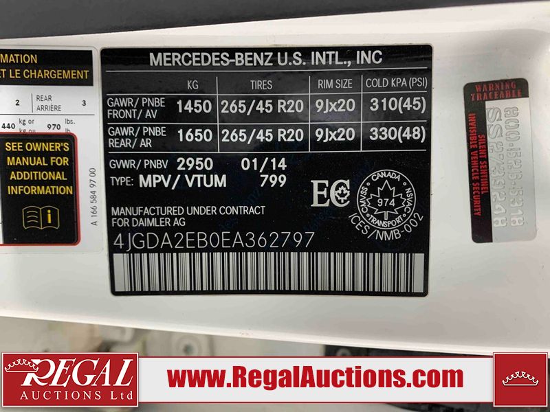 This 2014 MERCEDES-BENZ ML350 4-MATIC BLUTEC 4D UTILITY 4WD is powered by a 3.0L 6 cylinder diesel engine and an automatic transmission. It is equipped with four wheel drive. The SUV has seats for 5 people. The SUV has low mileage for its age. The vehicle has high value options including a sunroof, leather upholstery, power seats, heated seats, navigation, a backup camera, and a power lift gate. The body looks to be in good condition overall. There are scratches on the rear bumper. There are very minor chips in many areas around the body. There are very minor scratches in many areas around the body. The interior looks to be in good condition overall. The windshield is cracked. All of the tires have lots of tread remaining. This SUV is being sold by an automotive broker. The vehicle will be sold with the following declarations: Claims Total Above $20,000 (See Footnote 1) and Rebuilt Status (See Footnote 2). Footnotes: 1) The vehicle's total recorded insurance claims history is above $20,000. This is the amount of money that was paid out by an insurance company for repairs to cover claims against the vehicle's insurance policy. This information is provided by CarFax. 2) This vehicle has been rebuilt from salvage. Regal Auctions Ltd. makes no guarantee or warranty, either express or implied, with respect to the data provided in this report. The information has been provided from the consignor and from sources generally believed to be reliable, however the accuracy of this information cannot be guaranteed by Regal Auctions.