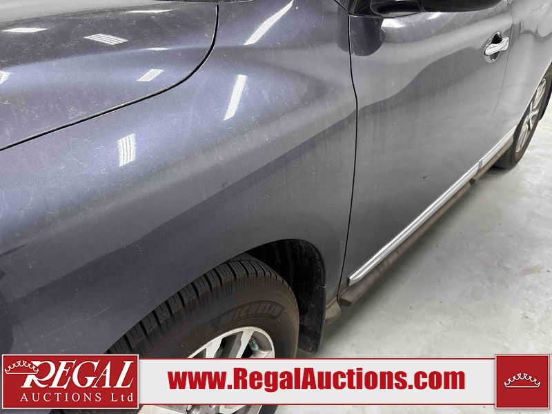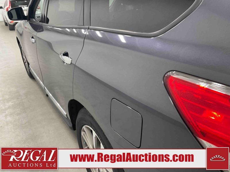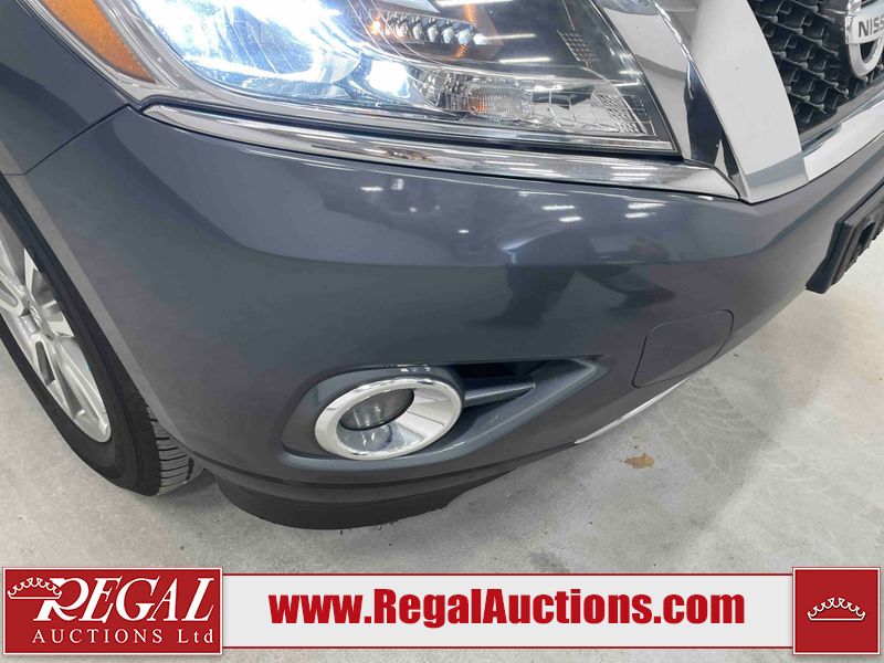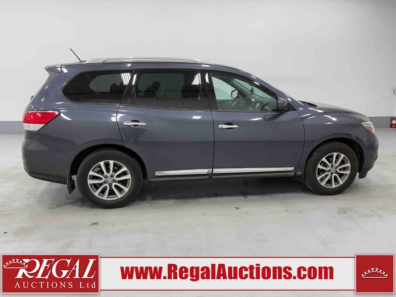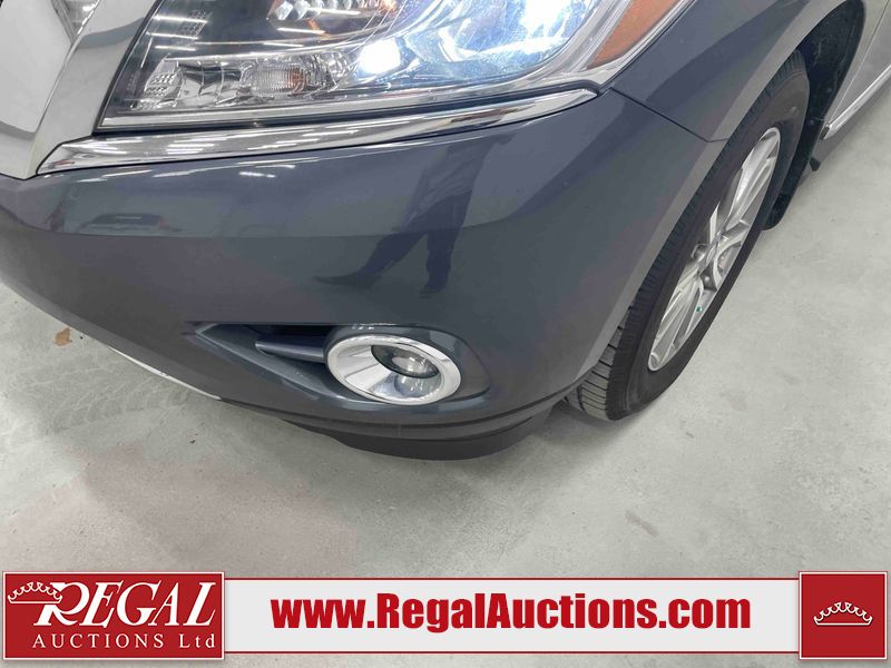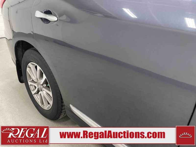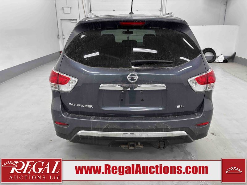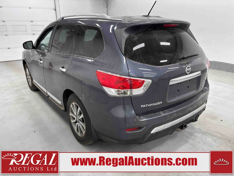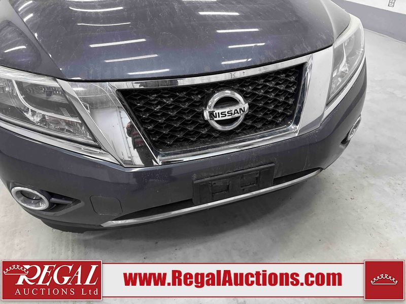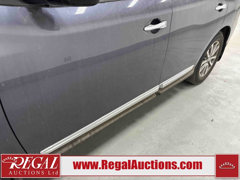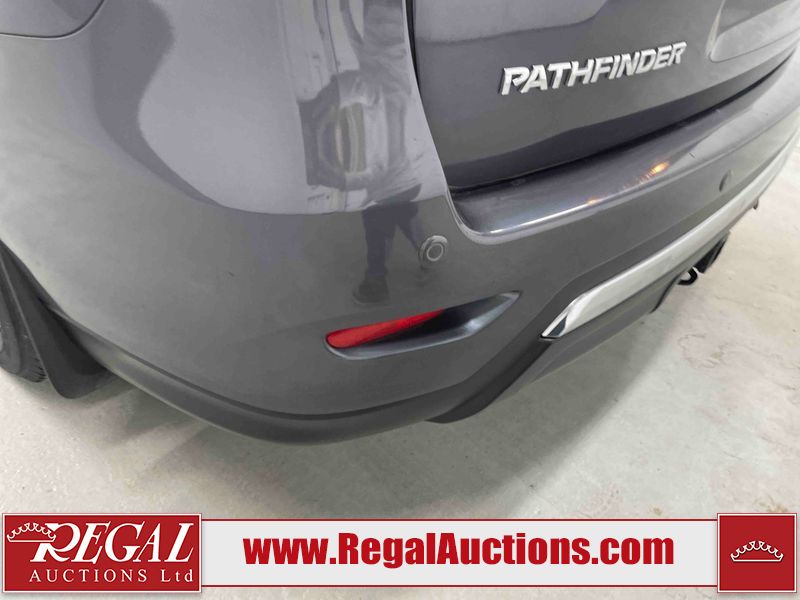 This 2014 NISSAN PATHFINDER SL 4D UTILITY AWD is powered by a 3.5L V6 gasoline engine and an automatic transmission. The SUV has seats for 7 people. The SUV has low mileage for its age. The vehicle has high-value options including leather upholstery, power seats, heated seats, a backup camera, and a power lift gate. The body looks to be in fair condition overall. There is dent damage on the hood, left front fender, right rear fender, and right rear door. There are minor scratches on the left front door, left rear door, and right front fender. There are very minor chips in many areas around the body. There are very minor scratches in many areas around the body. There is very minor dent damage on the right front fender. The interior looks to be in fair condition overall. The driver's seat is torn. The passenger seat and rear seats are worn. The windshield is chipped. The rear tires are worn. The front tires have lots of tread remaining. This SUV is being sold by an automotive broker. The vehicle will be sold with the following declarations: Out of Province - BC (See Footnote 1). Footnotes: 1) The vehicle's last registered jurisdiction is British Columbia. The purchaser must have the vehicle undergo and pass an Out of Province inspection before it can be registered in Alberta. Regal Auctions Ltd. makes no guarantee or warranty, either express or implied, with respect to the data provided in this report. The information has been provided from the consignor and from sources generally believed to be reliable, however the accuracy of this information cannot be guaranteed by Regal Auctions.