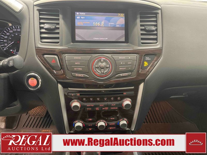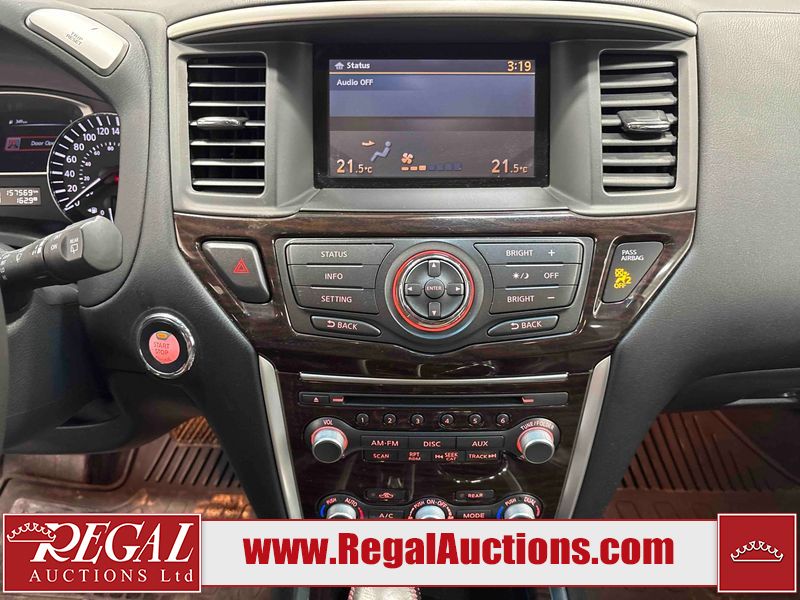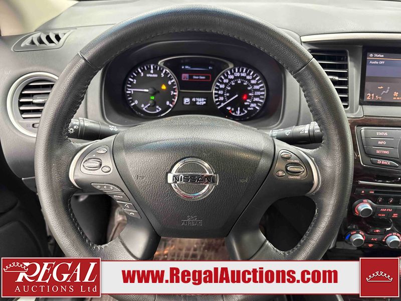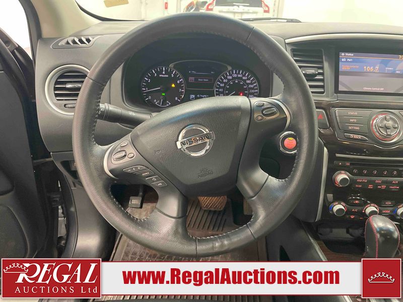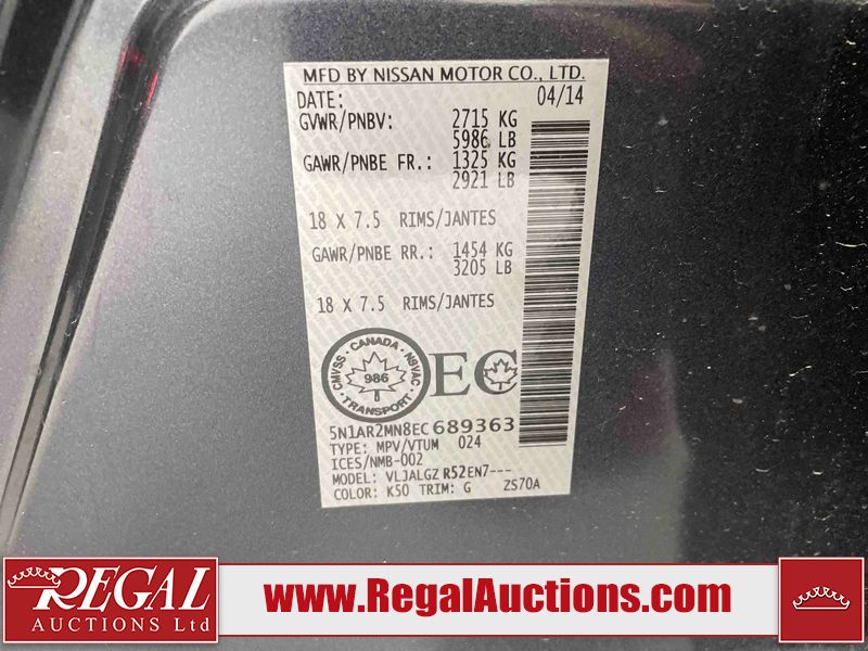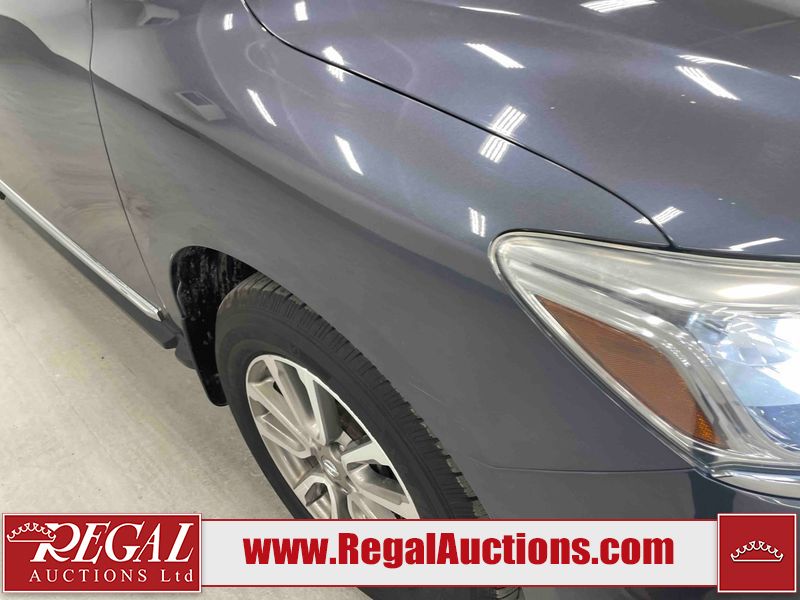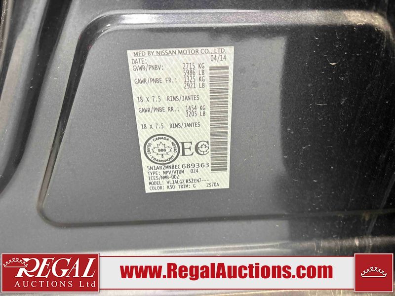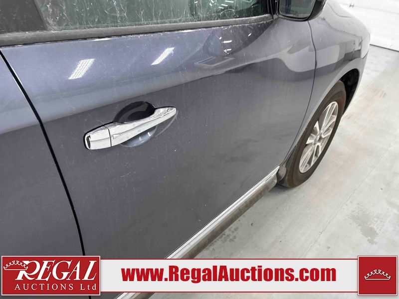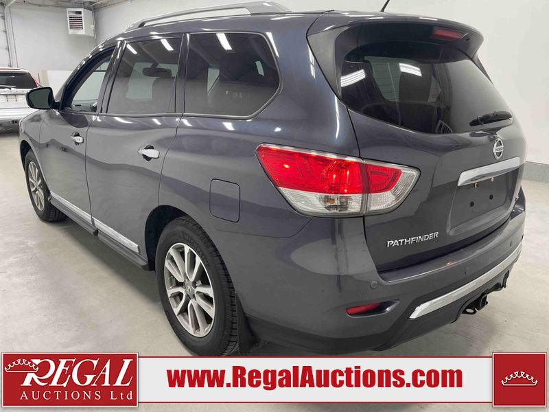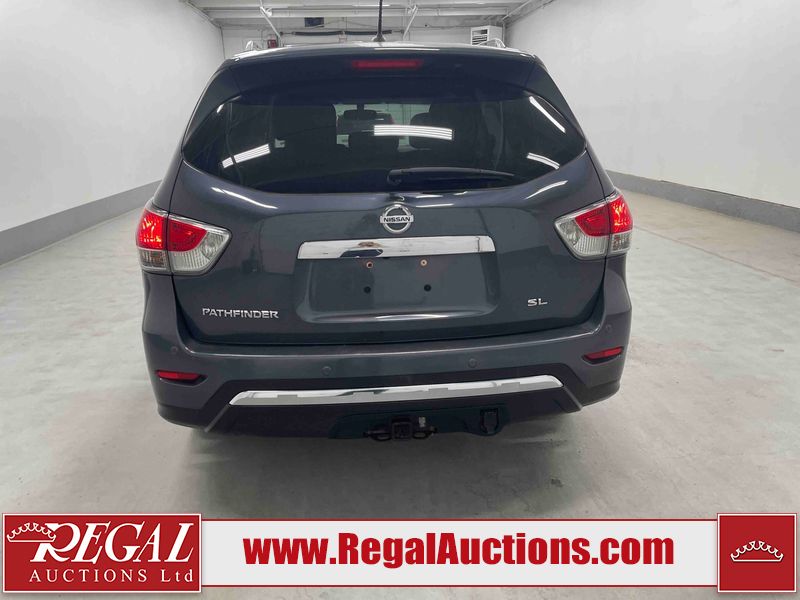 This 2014 NISSAN PATHFINDER SL 4D UTILITY AWD is powered by a 3.5L V6 gasoline engine and an automatic transmission. The SUV has seats for 7 people. The SUV has low mileage for its age. The vehicle has high-value options including leather upholstery, power seats, heated seats, a backup camera, and a power lift gate. The body looks to be in fair condition overall. There is dent damage on the hood, left front fender, right rear fender, and right rear door. There are minor scratches on the left front door, left rear door, and right front fender. There are very minor chips in many areas around the body. There are very minor scratches in many areas around the body. There is very minor dent damage on the right front fender. The interior looks to be in fair condition overall. The driver's seat is torn. The passenger seat and rear seats are worn. The windshield is chipped. The rear tires are worn. The front tires have lots of tread remaining. This SUV is being sold by an automotive broker. The vehicle will be sold with the following declarations: Out of Province - BC (See Footnote 1). Footnotes: 1) The vehicle's last registered jurisdiction is British Columbia. The purchaser must have the vehicle undergo and pass an Out of Province inspection before it can be registered in Alberta. Regal Auctions Ltd. makes no guarantee or warranty, either express or implied, with respect to the data provided in this report. The information has been provided from the consignor and from sources generally believed to be reliable, however the accuracy of this information cannot be guaranteed by Regal Auctions.