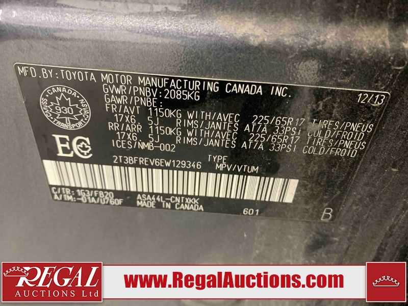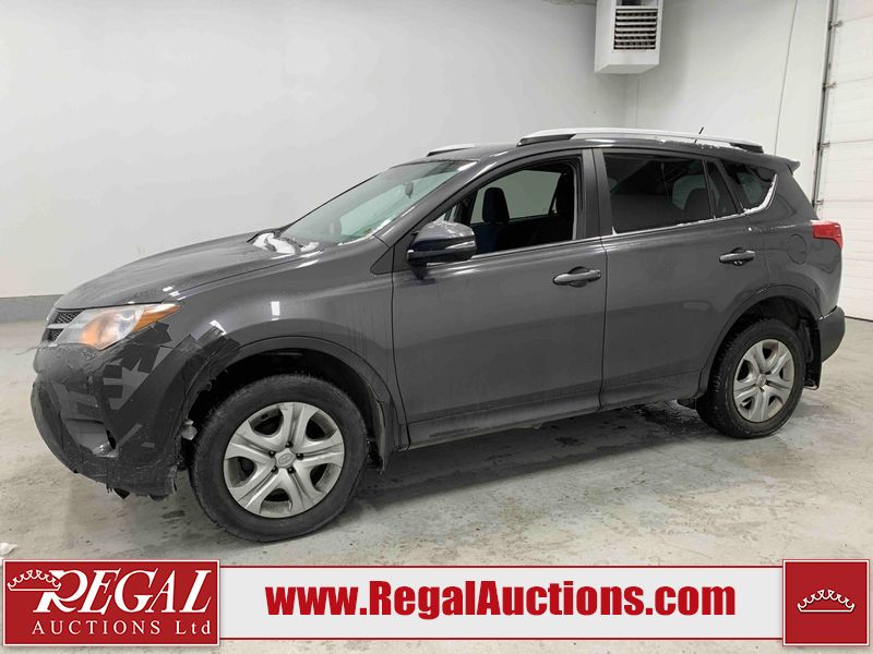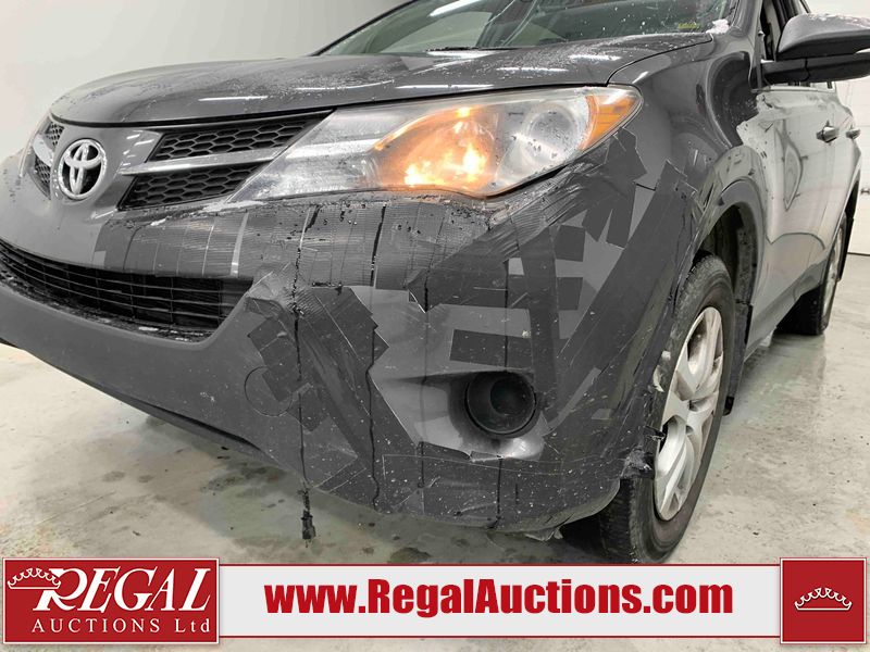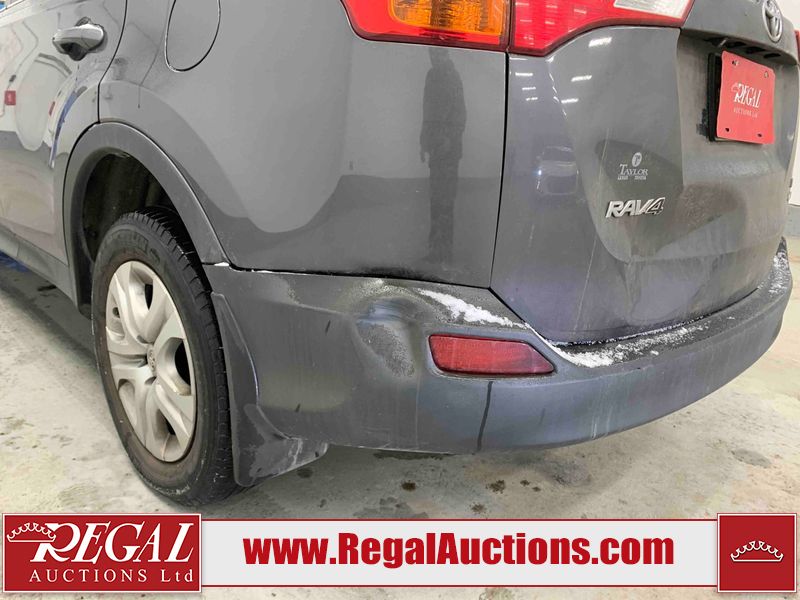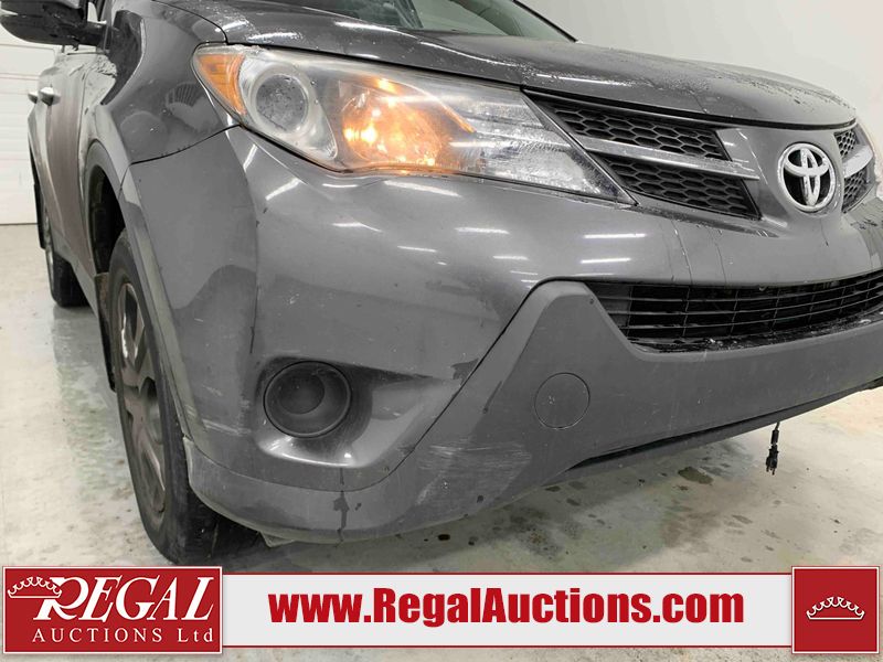 This 2014 TOYOTA RAV4 LE 4D UTILITY AWD is powered by a 2.5L 4-cylinder gasoline engine and an automatic transmission. It is equipped with all-wheel drive. The SUV has seats for 5 people. The mileage is average considering the SUV's age. The vehicle has high-value options including heated seats, navigation, and a backup camera. The body looks to be in fair condition overall. The front bumper is cracked. There are minimal chips on the front bumper, grille, roof, and left front fender. There are minimal scratches on the front bumper, hood, roof, and left front fender. There is slight dent damage on the rear door. There are very minor chips in many areas around the body. There are very minor scratches in many areas around the body. The interior looks to be in fair condition overall. The driver's seat, passenger seat, and rear seats are stained. The dashboard and doors are dirty. The carpet is dirty. The windshield is damaged. All of the tires are nearly bald and should be replaced. This SUV is being sold by an automotive broker. The vehicle will be sold with the following declarations: Auctioneer Announcement "*OIL LEAK* ", Claims Total $10,000 - $14,999 (See Footnote 1), and Out of Province - SK (See Footnote 2). Footnotes: 1) The vehicle's total recorded insurance claims history is between $10,000 - $14,999. This is the amount of money that was paid out by an insurance company for repairs to cover claims against the vehicle's insurance policy. This information is provided by CarFax. 2) The vehicle's last registered jurisdiction is Saskatchewan. The purchaser must have the vehicle undergo and pass an Out of Province inspection before it can be registered in Alberta. Regal Auctions Ltd. makes no guarantee or warranty, either express or implied, with respect to the data provided in this report. The information has been provided from the consignor and from sources generally believed to be reliable, however the accuracy of this information cannot be guaranteed by Regal Auctions.