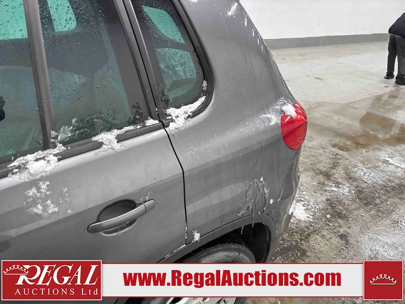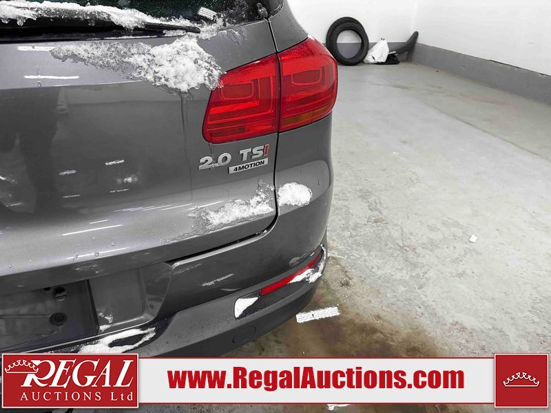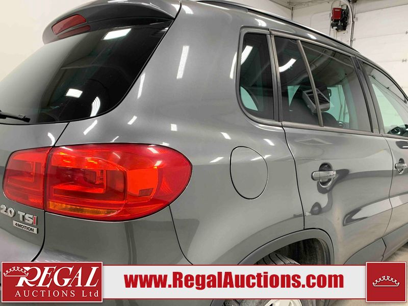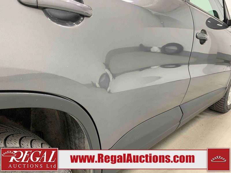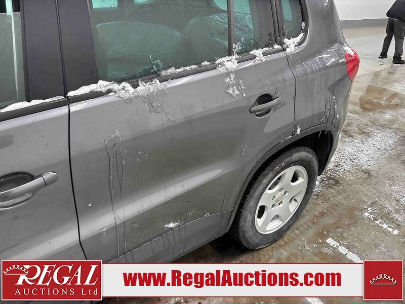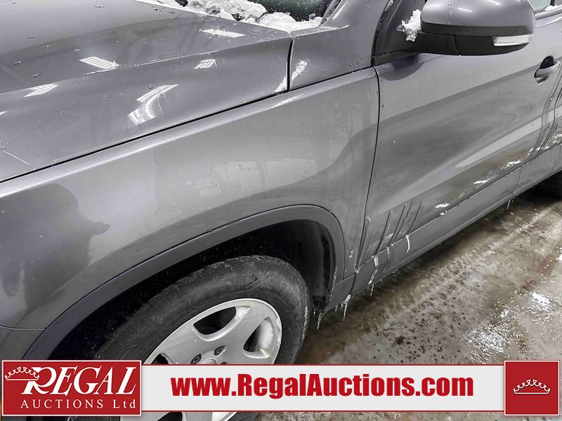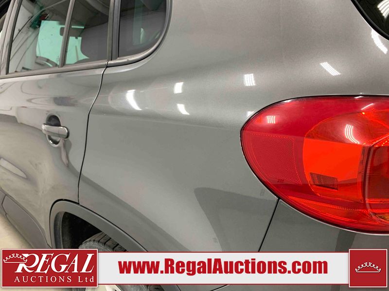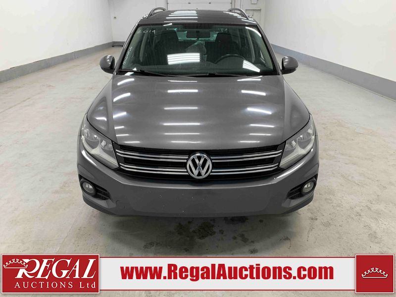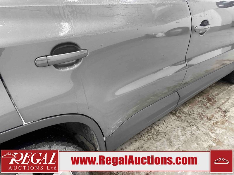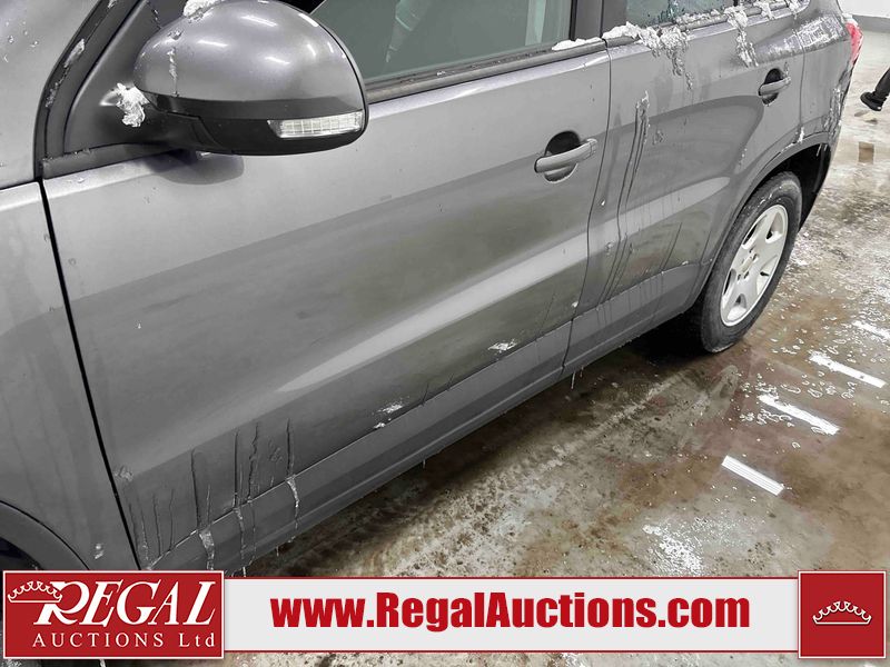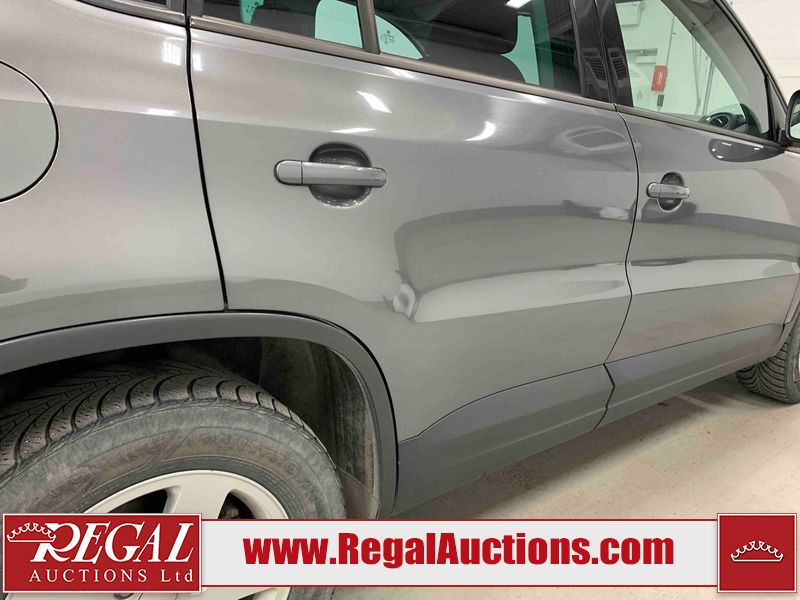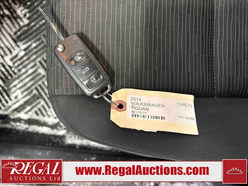 This 2014 VOLKSWAGEN TIGUAN 4D UTILITY is powered by a 2.0L 4-cylinder gasoline engine and an automatic transmission. It is equipped with all-wheel drive. The SUV has seats for 5 people. The mileage is average considering the SUV's age. The vehicle has high-value options including heated seats. The body looks to be in fair condition overall. There are minimal chips on the front bumper, hood, and roof. There are minor scratches on the front bumper and left rear door. There is slight dent damage on the left front door. There are very minor scratches in many areas around the body. There are very minor chips in many areas around the body. The fog lights are broken. The interior looks to be in fair condition overall. The dashboard is worn. The driver's seat is stained. The windshield is chipped. The passenger side tires are worn. The driver's side tires have lots of tread remaining. This SUV is being sold by a private individual. Regal Auctions Ltd. makes no guarantee or warranty, either express or implied, with respect to the data provided in this report. The information has been provided from the consignor and from sources generally believed to be reliable, however the accuracy of this information cannot be guaranteed by Regal Auctions.