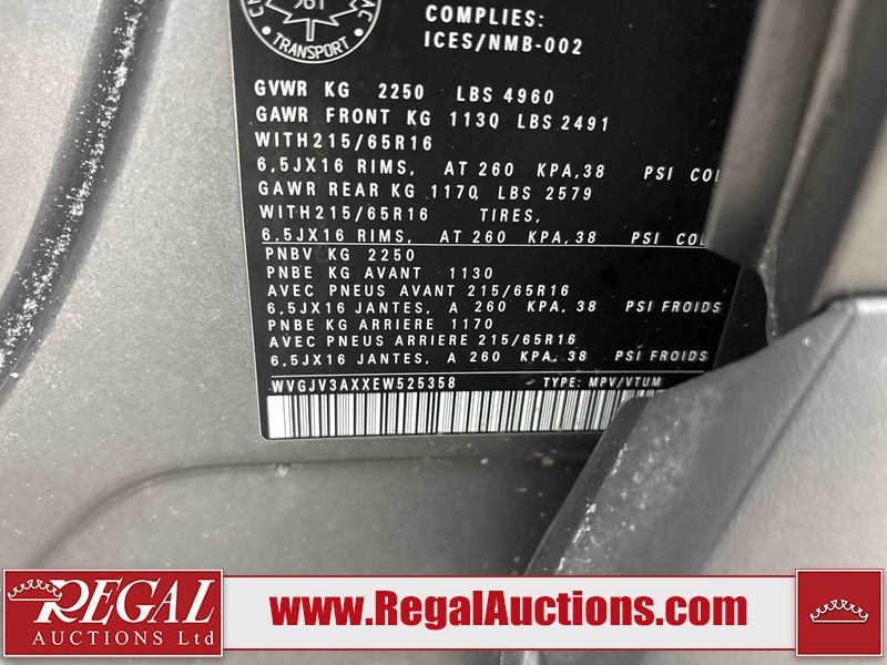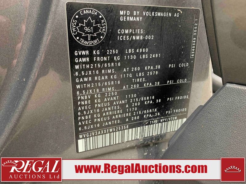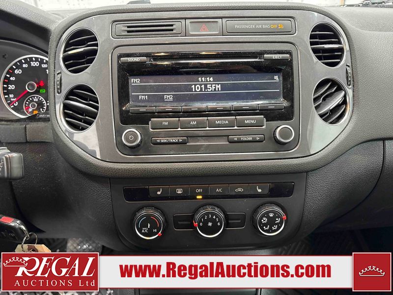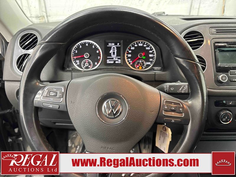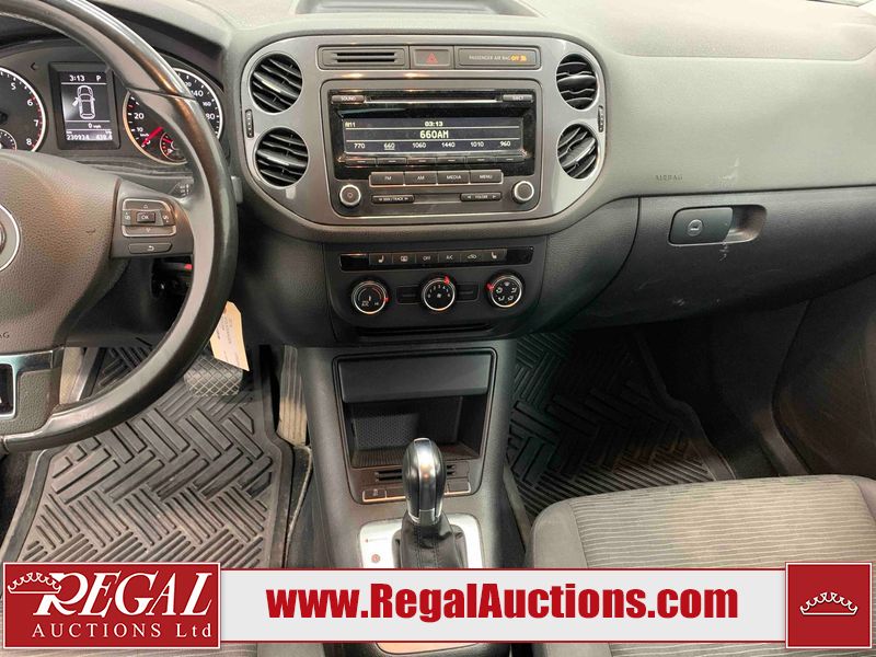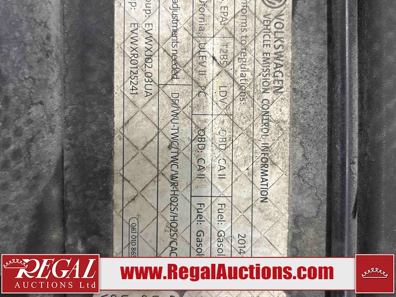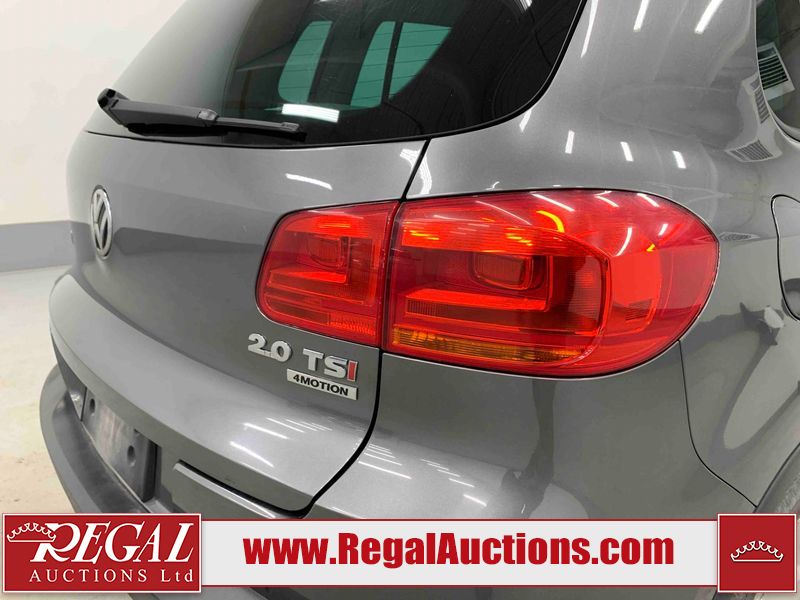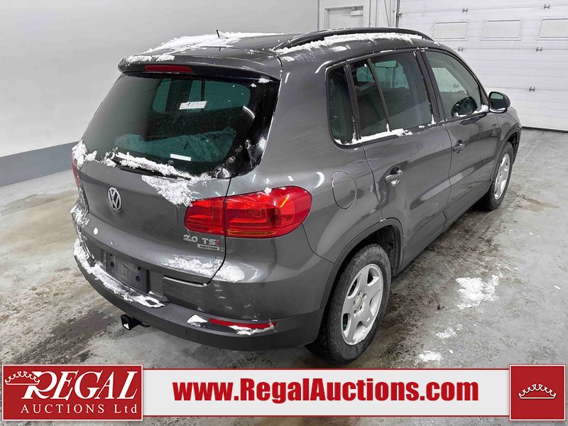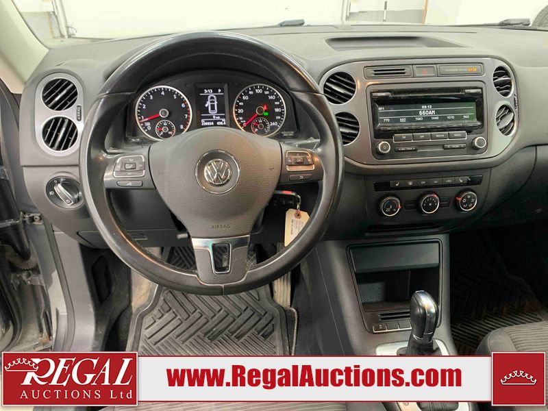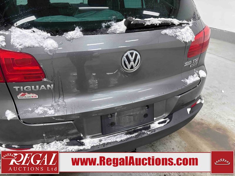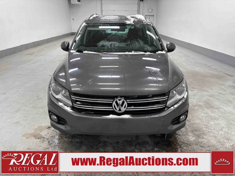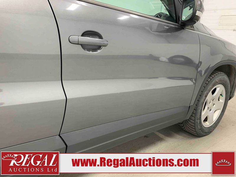 This 2014 VOLKSWAGEN TIGUAN 4D UTILITY is powered by a 2.0L 4-cylinder gasoline engine and an automatic transmission. It is equipped with all-wheel drive. The SUV has seats for 5 people. The mileage is average considering the SUV's age. The vehicle has high-value options including heated seats. The body looks to be in fair condition overall. There are minimal chips on the front bumper, hood, and roof. There are minor scratches on the front bumper and left rear door. There is slight dent damage on the left front door. There are very minor scratches in many areas around the body. There are very minor chips in many areas around the body. The fog lights are broken. The interior looks to be in fair condition overall. The dashboard is worn. The driver's seat is stained. The windshield is chipped. The passenger side tires are worn. The driver's side tires have lots of tread remaining. This SUV is being sold by a private individual. Regal Auctions Ltd. makes no guarantee or warranty, either express or implied, with respect to the data provided in this report. The information has been provided from the consignor and from sources generally believed to be reliable, however the accuracy of this information cannot be guaranteed by Regal Auctions.