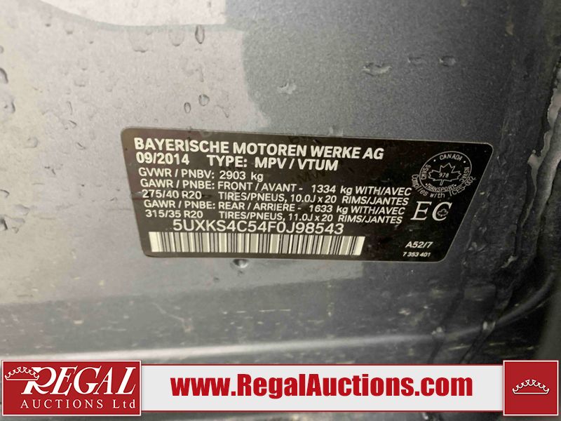 This 2015 BMW X5 4D SPORT UTILITY is powered by a turbocharged 3.0L 6-cylinder diesel engine and an automatic transmission. It is equipped with all-wheel drive. The SUV has seats for 5 people. The SUV has low mileage for its age. The vehicle has high-value options including a sunroof, leather upholstery, power seats, heated seats, navigation, and a backup camera. The body looks to be in good condition overall. There are scratches on the front bumper. There are very minor chips in many areas around the body. There are very minor scratches in many areas around the body. The interior looks to be in good condition overall. The windshield looks to be in good condition. All of the tires have lots of tread remaining. This SUV is being sold by an automotive broker. The vehicle will be sold with the following declarations: Out of Province - BC (See Footnote 1). Footnotes: 1) The vehicle's last registered jurisdiction is British Columbia. The purchaser must have the vehicle undergo and pass an Out of Province inspection before it can be registered in Alberta. Regal Auctions Ltd. makes no guarantee or warranty, either express or implied, with respect to the data provided in this report. The information has been provided from the consignor and from sources generally believed to be reliable, however the accuracy of this information cannot be guaranteed by Regal Auctions.