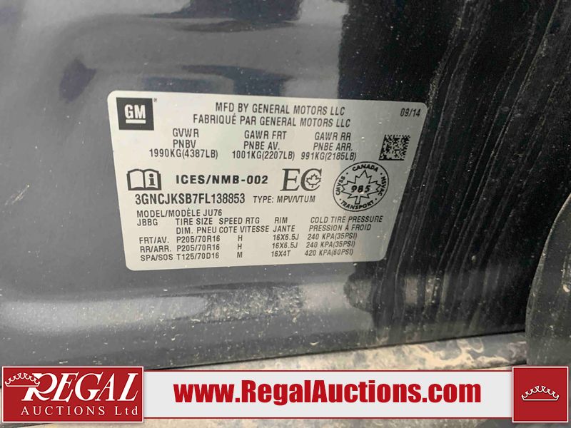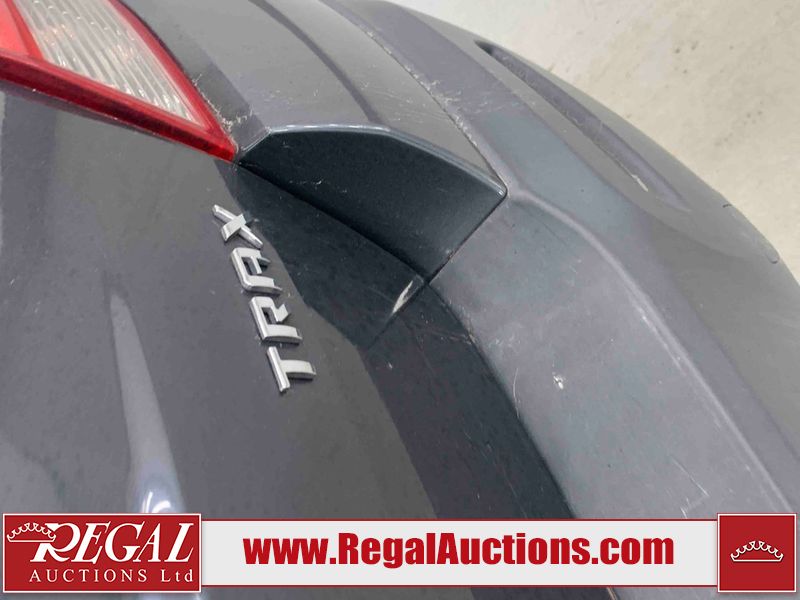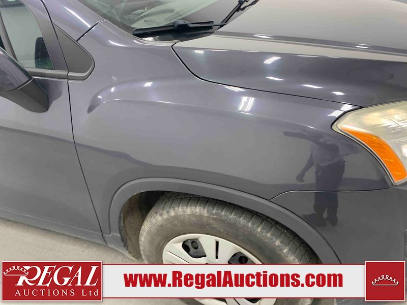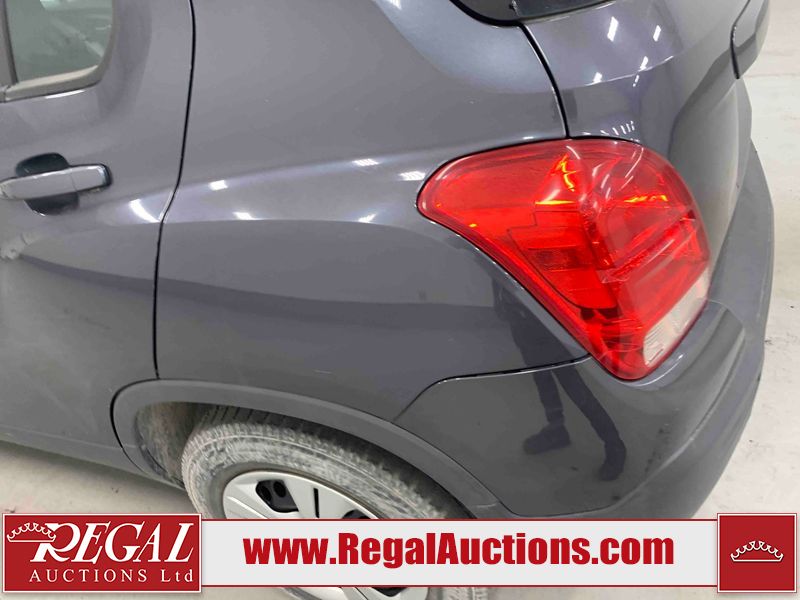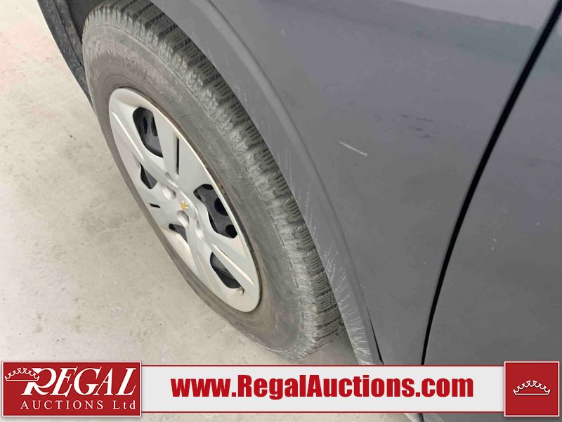 This 2015 CHEVROLET TRAX LS 4D SPORT UTILITY FWD 1.4L is powered by a turbocharged 1.4L gasoline engine and an automatic transmission. It is a two wheel drive model. The SUV has seats for 5 people. The SUV has low mileage for its age. The vehicle has high value options including power seats. The vehicle does not have power locks. The Check Engine light is on. The body looks to be in fair condition overall. There are scratches on the front bumper, left front fender, left rear door, left rear fender, right rear fender, right rear door, and right front door. There are chips on the hood, left front door, and left rear door. There are very minor chips in many areas around the body. There are very minor scratches in some areas around the body. There is very minor dent damage in a few areas around the body. The interior looks to be in good condition overall. The windshield looks to be in good condition. The rear tires are worn. The front tires have lots of tread remaining. This SUV is being sold by an automotive broker. The vehicle will be sold with the following declarations: Out of Province - BC (See Footnote 1). Footnotes: 1) The vehicle's last registered jurisdiction is British Columbia. The purchaser must have the vehicle undergo and pass an Out of Province inspection before it can be registered in Alberta. Regal Auctions Ltd. makes no guarantee or warranty, either express or implied, with respect to the data provided in this report. The information has been provided from the consignor and from sources generally believed to be reliable, however the accuracy of this information cannot be guaranteed by Regal Auctions.