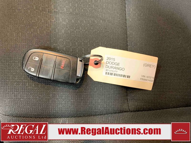 This 2015 DODGE DURANGO 4D UTILITY is powered by a 3.6 liter 6 cylinder gasoline engine and an automatic transmission. It is equipped with all wheel drive. The SUV has seats for 7 people. The SUV has low mileage for its age. The vehicle has high value options including power seats. The body looks to be in good condition overall. There is minimal paint peeling on the front bumper. There are minor chips on the front bumper and hood. There are scratches on the front bumper, left front door, left rear door, left rear fender, rear bumper, right rear fender, right rear door, and right front door. There are chips in a few areas around the body. The interior looks to be in good condition overall. The windshield looks to be in good condition. All of the tires have lots of tread remaining. This SUV is being sold by a franchise dealership. The vehicle will be sold with the following declarations: Dealership Trade-In (See Footnote 1) and Out of Province - BC (See Footnote 2). Footnotes: 1) This vehicle is being sold on behalf of a franchise dealership. Franchise Dealerships are automotive sales companies who are directly connected to an automotive manufacturer like Ford, Tesla, Honda, BMW, or similar. 2) The vehicle's last registered jurisdiction is British Columbia. The purchaser must have the vehicle undergo and pass an Out of Province inspection before it can be registered in Alberta. Regal Auctions Ltd. makes no guarantee or warranty, either express or implied, with respect to the data provided in this report. The information has been provided from the consignor and from sources generally believed to be reliable, however the accuracy of this information cannot be guaranteed by Regal Auctions.