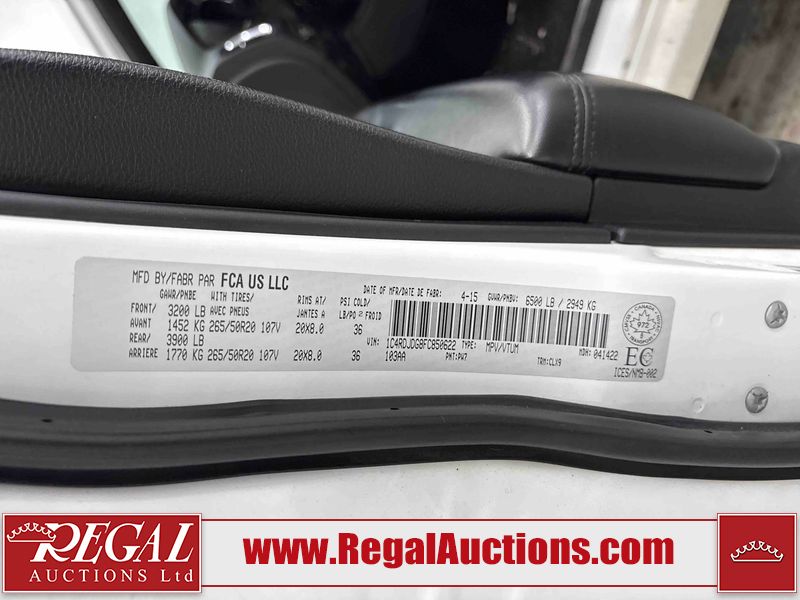 This 2015 DODGE DURANGO LIMITED 4D UTILITY AWD is powered by a v6 cylinder gasoline engine and an automatic transmission. It is equipped with All wheel drive. The SUV has seats for 7 people. The SUV has high mileage for its age. LIMITED is a very popular trim level. The vehicle has high value options including leather upholstery, power seats, and heated seats. The body looks to be in good condition overall. There are scratches on the left front door. There are chips in many areas around the body. There are scratches in many areas around the body. There is dent damage on the left front door. The interior looks to be in good condition overall. The windshield is cracked. All of the tires have lots of tread remaining. This SUV is being sold by an automotive broker. Regal Auctions Ltd. makes no guarantee or warranty, either express or implied, with respect to the data provided in this report. The information has been provided from the consignor and from sources generally believed to be reliable, however the accuracy of this information cannot be guaranteed by Regal Auctions.