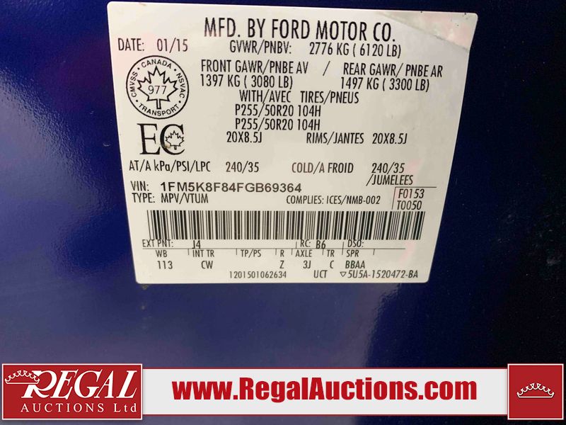 2015 FORD EXPLORER LIMITED 4D UTILITY 4WD 3.5L