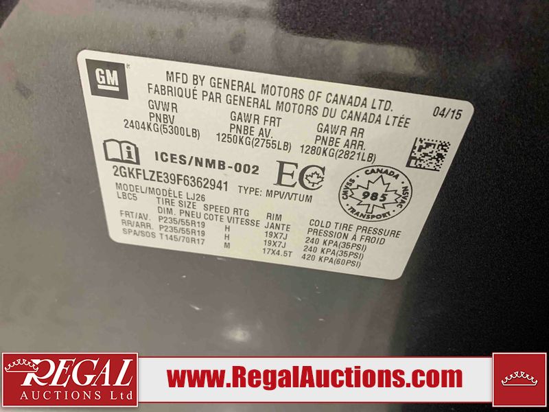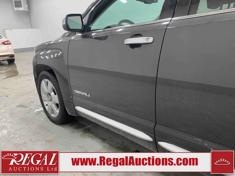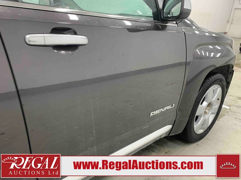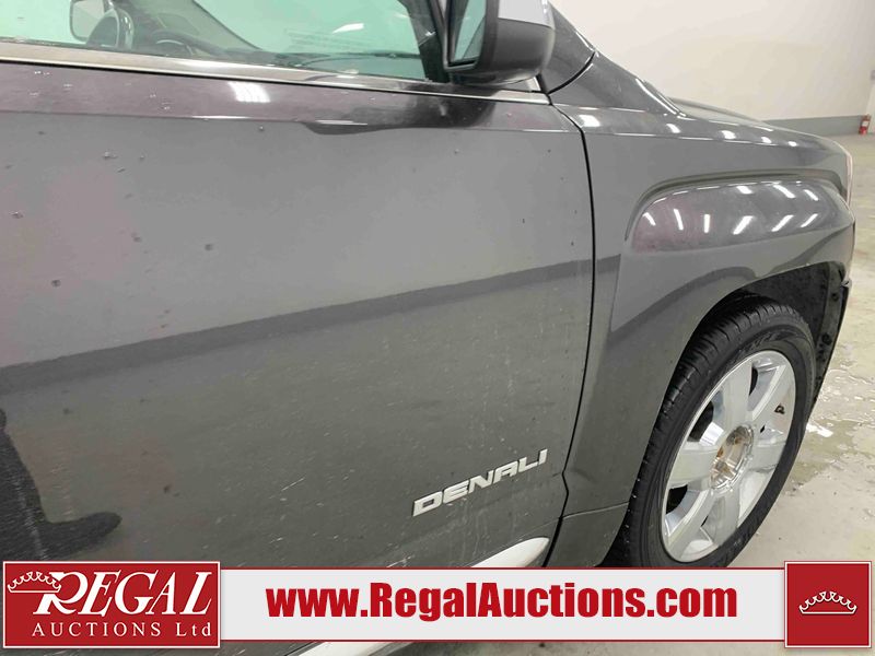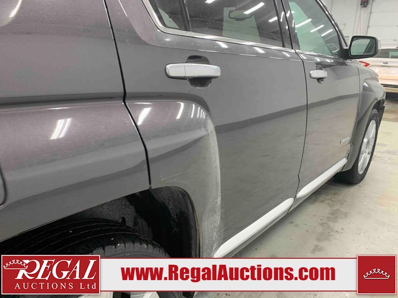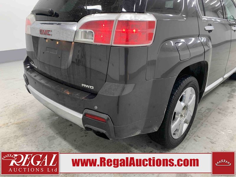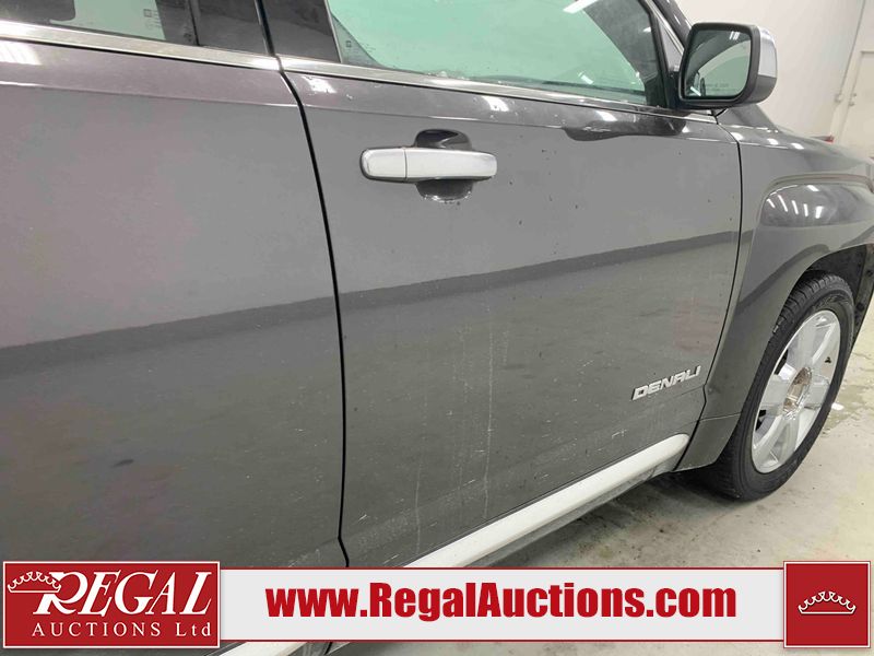 This 2015 GMC TERRAIN DENALI 4D UTILITY AWD is powered by a 3.6L 6 cylinder gasoline engine and an automatic transmission. It is equipped with four wheel drive. The SUV has seats for 5 people. The SUV has low mileage for its age. The vehicle has high value options including leather upholstery, power seats, heated seats, navigation, and a backup camera. The body looks to be in fair condition overall. There are minimal chips on the front bumper and rear bumper. There are scratches on the front bumper, hood, rear bumper, and right rear door. There is dent damage on the left rear fender. There are very minor chips in many areas around the body. There are very minor scratches in many areas around the body. The interior looks to be in good condition overall. The windshield is cracked. All of the tires are nearly bald and should be replaced. This SUV is being sold by an automotive broker. The vehicle will be sold with the following declarations: Claims Total $15,000 - $19,999 (See Footnote 1). Footnotes: 1) The vehicle's total recorded insurance claims history is between $15,000 - $19,999. This is the amount of money that was paid out by an insurance company for repairs to cover claims against the vehicle's insurance policy. This information is provided by CarFax. Regal Auctions Ltd. makes no guarantee or warranty, either express or implied, with respect to the data provided in this report. The information has been provided from the consignor and from sources generally believed to be reliable, however the accuracy of this information cannot be guaranteed by Regal Auctions.