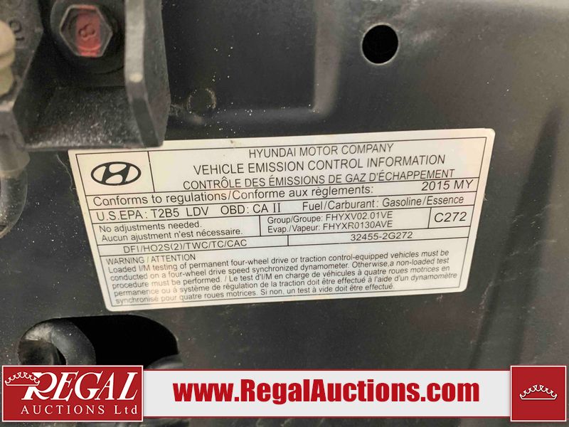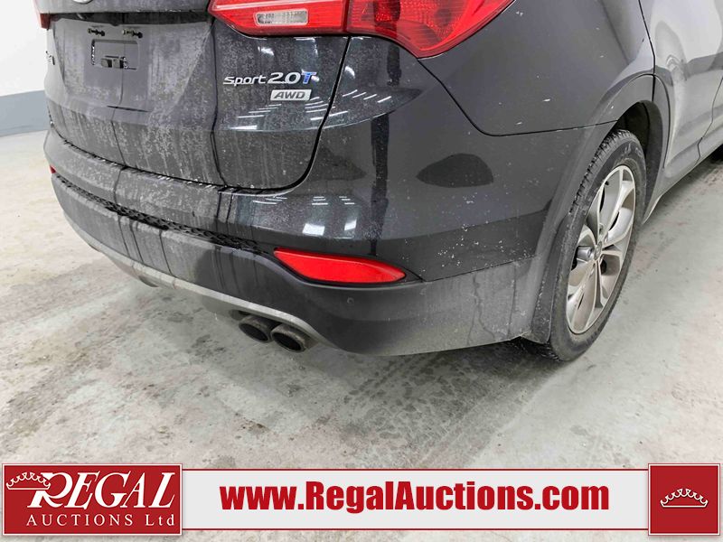 This 2015 HYUNDAI SANTA FE SPORT 4D UTILITY is powered by a turbocharged 2.0L 4-cylinder gasoline engine and an automatic transmission. It is equipped with all-wheel drive. The SUV has seats for 5 people. The SUV has low mileage for its age. The vehicle has high-value options including a sunroof, leather upholstery, power seats, heated seats, a backup camera, and a power liftgate. The body looks to be in fair condition overall. There are incidental chips on the front bumper, hood, rear bumper, and rear door. There are minor scratches on the front bumper, hood, left front fender, left front door, left rear door, left rear fender, rear bumper, rear door, right rear fender, right rear door, right front door, and right front fender. There is slight dent damage on the hood and left front door. There is rust on the hood. There are very minor chips in many areas around the body. There are very minor scratches on the roof. The interior looks to be in good condition overall. The driver seat is torn. The windshield is damaged. All of the tires have lots of tread remaining. This SUV is being sold by an automotive broker. The vehicle will be sold with the following declarations: Claims Total $5000 - $9999 (See Footnote 1). Footnotes: 1) The vehicle's total recorded insurance claims history is between $5,000 - $9,999. This is the amount of money that was paid out by an insurance company for repairs to cover claims against the vehicle's insurance policy. This information is provided by CarFax. Regal Auctions Ltd. makes no guarantee or warranty, either express or implied, with respect to the data provided in this report. The information has been provided from the consignor and from sources generally believed to be reliable, however the accuracy of this information cannot be guaranteed by Regal Auctions.