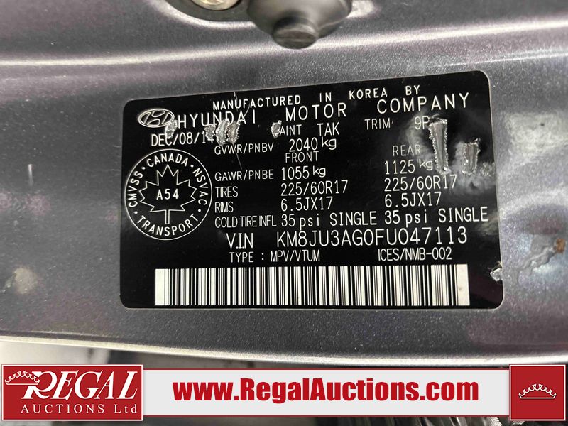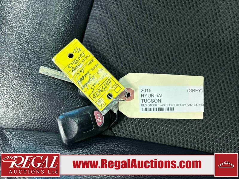 This 2015 HYUNDAI TUCSON GLS 4D SPORT UTILITY is powered by a 2.4 liter 4-cylinder gasoline engine and an automatic transmission. It is a two-wheel drive model. The SUV has seats for 5 people. The mileage is average considering the SUV's age. The vehicle has high-value options including a sunroof and leather upholstery. The body looks to be in good condition overall. There are chips in many areas around the body. There are scratches in many areas around the body. The interior looks to be in good condition overall. The windshield is cracked. The front tires are both worn. The rear tires both have lots of tread remaining. This SUV is being sold by an automotive broker. The vehicle will be sold with the following declarations: Out of Province - BC (See Footnote 1) and Out of Province - AB OVERRIDE (See Footnote 2). Footnotes: 1) The vehicle's last registered jurisdiction is British Columbia. The purchaser must have the vehicle undergo and pass an Out of Province inspection before it can be registered in Alberta. 2) Out of province inspection for registering the vehicle in Alberta has been completed. Regal Auctions Ltd. makes no guarantee or warranty, either express or implied, with respect to the data provided in this report. The information has been provided from the consignor and from sources generally believed to be reliable, however the accuracy of this information cannot be guaranteed by Regal Auctions.