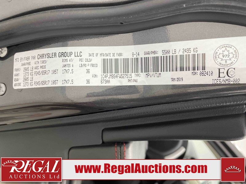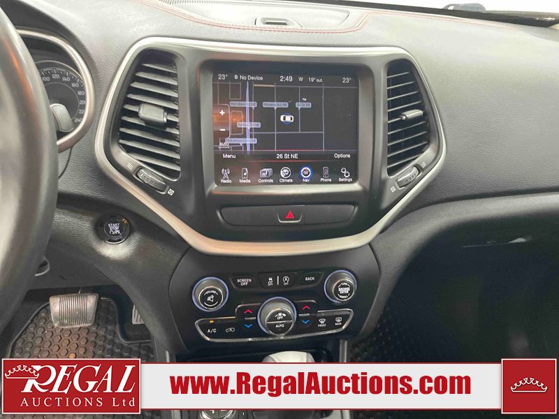 This 2015 JEEP CHEROKEE TRAILHAWK 4D SPORT UTILITY is powered by a 3.2L V6 gasoline engine and an automatic transmission. It is equipped with four-wheel drive. The SUV has seats for 5 people. The mileage is average considering the SUV's age. TRAILHAWK is a very popular trim level. The vehicle has high-value options including leather upholstery, power seats, heated seats, navigation, a backup camera, and a power lift gate. The body looks to be in good condition overall. There are slight scratches on the rear bumper and rear door. There are very minor chips in many areas around the body. There are very minor scratches in many areas around the body. There is very minor dent damage in a few areas around the body. The interior looks to be in fair condition overall. The driver's seat, passenger seat, rear seats, and doors are worn. The dashboard is worn. The windshield is cracked. All of the tires have lots of tread remaining. This SUV is being sold by an automotive broker. The vehicle will be sold with the following declarations: Claims Total $15,000 - $19,999 (See Footnote 1). Footnotes: 1) The vehicle's total recorded insurance claims history is between $15,000 - $19,999. This is the amount of money that was paid out by an insurance company for repairs to cover claims against the vehicle's insurance policy. This information is provided by CarFax. Regal Auctions Ltd. makes no guarantee or warranty, either express or implied, with respect to the data provided in this report. The information has been provided from the consignor and from sources generally believed to be reliable, however the accuracy of this information cannot be guaranteed by Regal Auctions.
