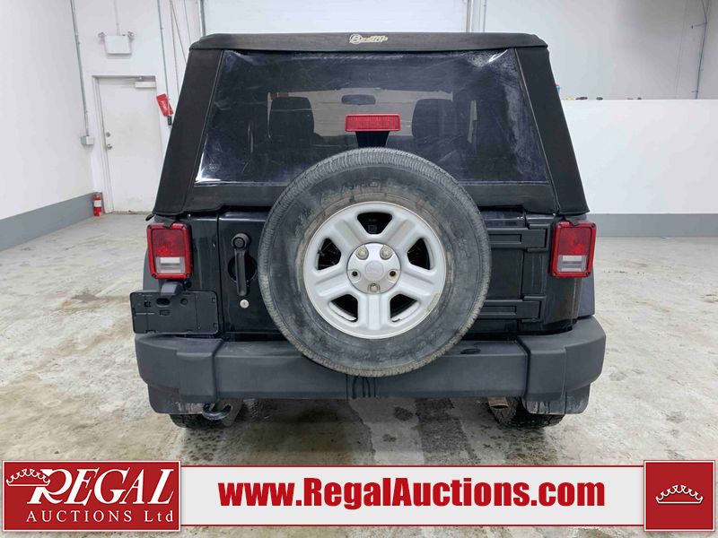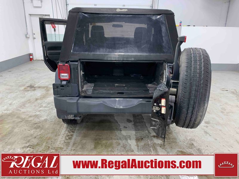 This 2015 JEEP WRANGLER SPORT 2D UTILITY 4WD is powered by a 3.6L 6 cylinder gasoline engine and a 6 speed manual transmission. It is equipped with four wheel drive. The SUV has seats for 2 people. The SUV has low mileage for its age. The vehicle does not have power windows, power locks, or air conditioning. The body looks to be in good condition overall. There are conspicuous scratches on the front bumper. There is some dent damage on the front bumper. There are minor chips on the grille and hood. There is rust on the hood. There are scratches on the rear bumper. There are very minor scratches in many areas around the body. There are very minor chips in many areas around the body. The interior looks to be in good condition overall. The carpet is dirty. The rear seat is missing. The windshield is cracked. All of the tires have lots of tread remaining. This SUV is being sold by an automotive broker. The vehicle will be sold with the following declarations: Claims Total $1000 - $2999 (See Footnote 1). Footnotes: 1) The vehicle's total recorded insurance claims history is between $1,000 - $2,999. This is the amount of money that was paid out by an insurance company for repairs to cover claims against the vehicle's insurance policy. This information is provided by CarFax. Regal Auctions Ltd. makes no guarantee or warranty, either express or implied, with respect to the data provided in this report. The information has been provided from the consignor and from sources generally believed to be reliable, however the accuracy of this information cannot be guaranteed by Regal Auctions.