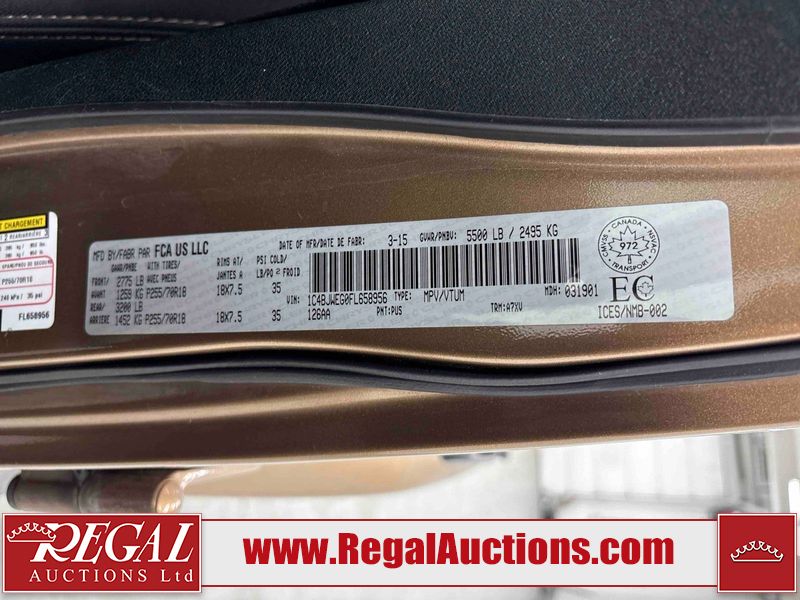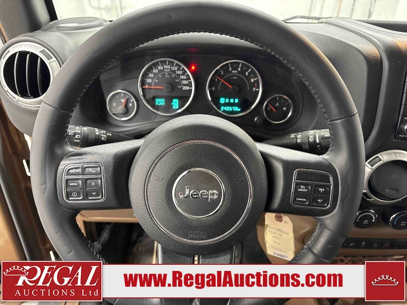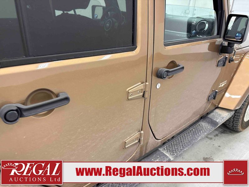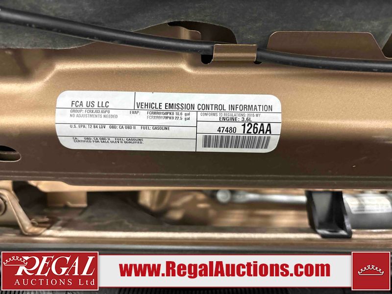 This 2015 JEEP WRANGLER 4D UTILITY 4WD is powered by a V6 cylinder gasoline engine and an automatic transmission. It is equipped with four wheel drive. The SUV has seats for 5 people. The vehicle has high value options including heated seats and a convertible top. The body looks to be in fair condition overall. There is considerable hail on the hood. There is slight rust on the roof. There is minimal hail on the roof. There are chips in many areas around the body. There are scratches in many areas around the body. The interior looks to be in good condition overall. The windshield is cracked. All of the tires have lots of tread remaining. This SUV is being sold by a private individual. The vehicle will be sold with the following declarations: Hail Damage (See Footnote 1). Footnotes: 1) This vehicle shows signs of damage from a hail storm. Hail damage is not always clearly visible in photographs. Regal Auctions Ltd. makes no guarantee or warranty, either express or implied, with respect to the data provided in this report. The information has been provided from the consignor and from sources generally believed to be reliable, however the accuracy of this information cannot be guaranteed by Regal Auctions.