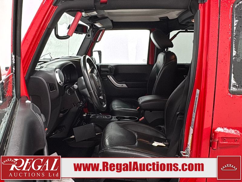 This vehicle has a 3.6 liter 6 cylinder gasoline engine and an automatic transmission. It is 4x4. It has low mileage. SAHARA is a very popular trim level. The vehicle has high value options including leather upholstery, heated seats, navigation, and a convertible top. The body is in excellent condition. The interior is in good condition. The windshield is in good condition. All of the tires are nearly bald and should be replaced.